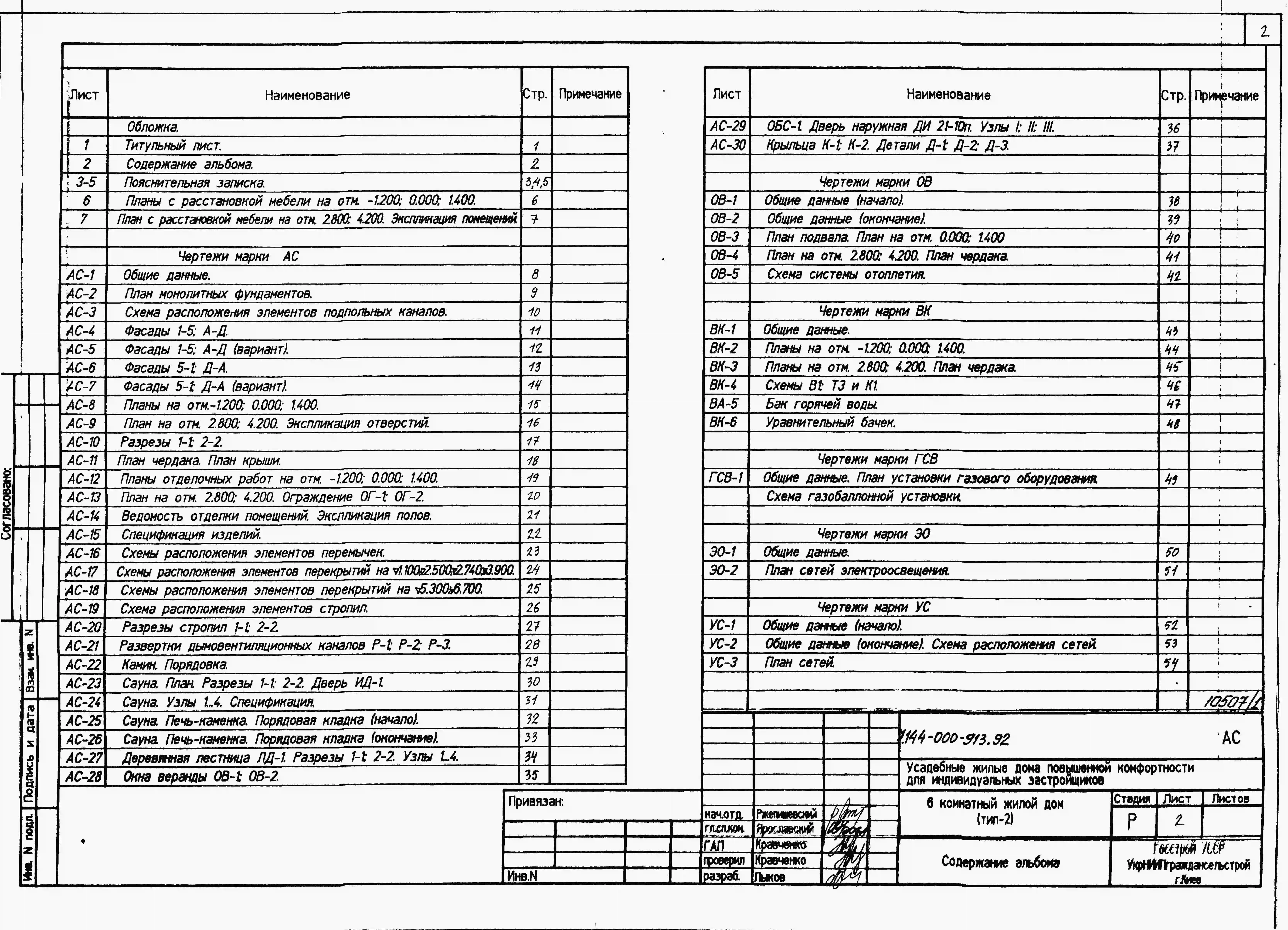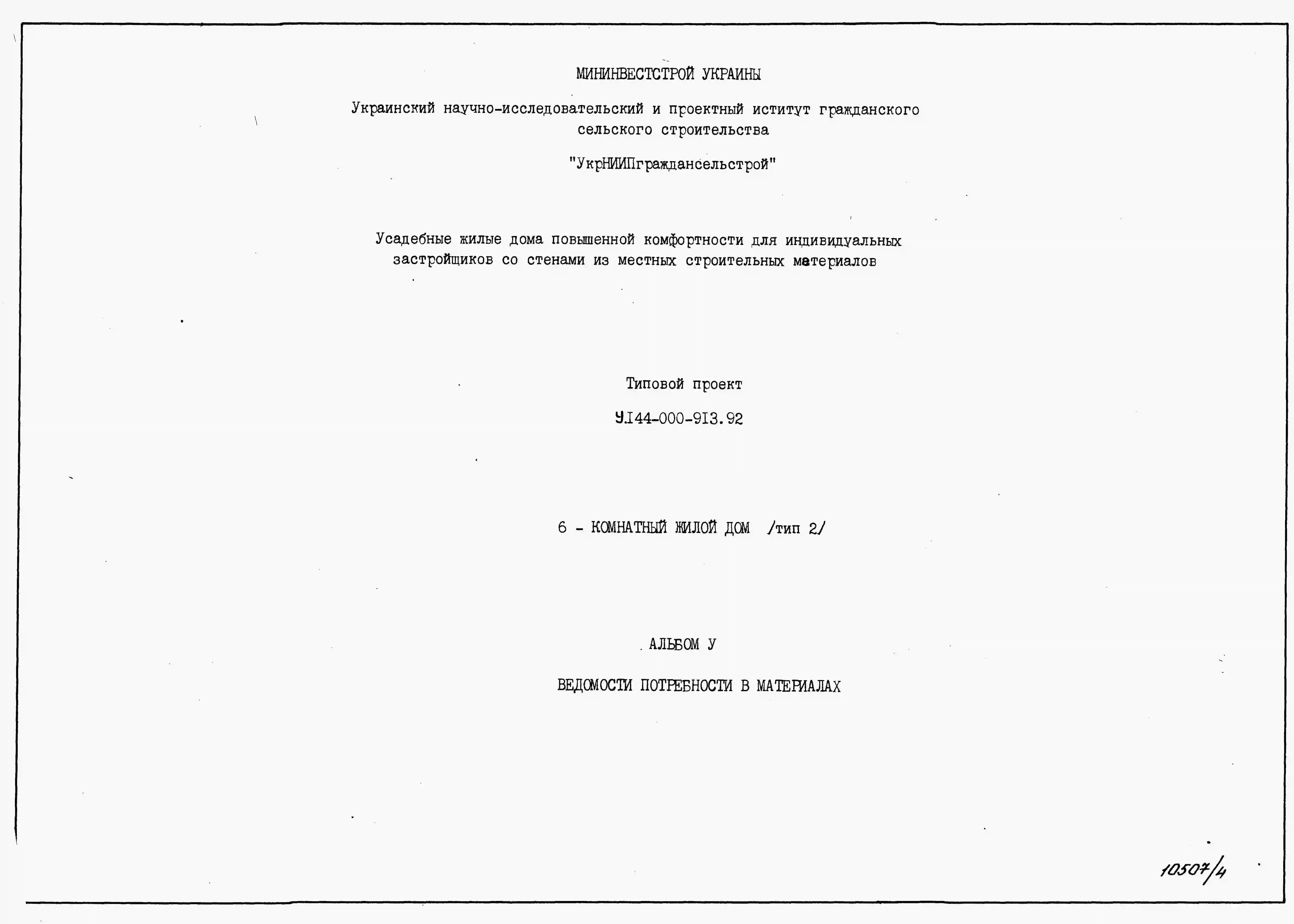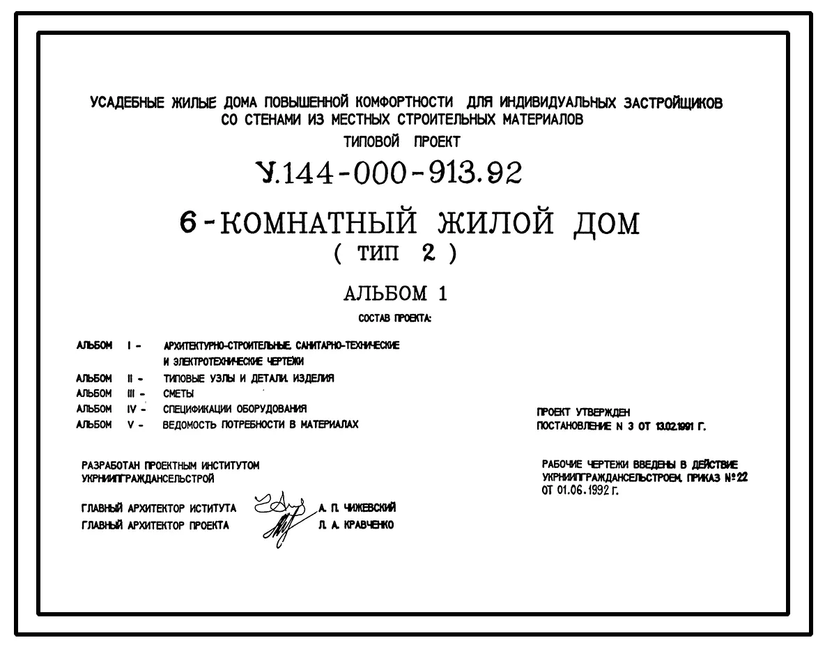 Типовой проект У.144-000-913.92 Усадебные жилые дома повышенной комфортности для индивидуальных застройщиков со стенами из местных строительных материалов, 6-комнатный жилой дом (тип 2). Чертежи (формат TIF)