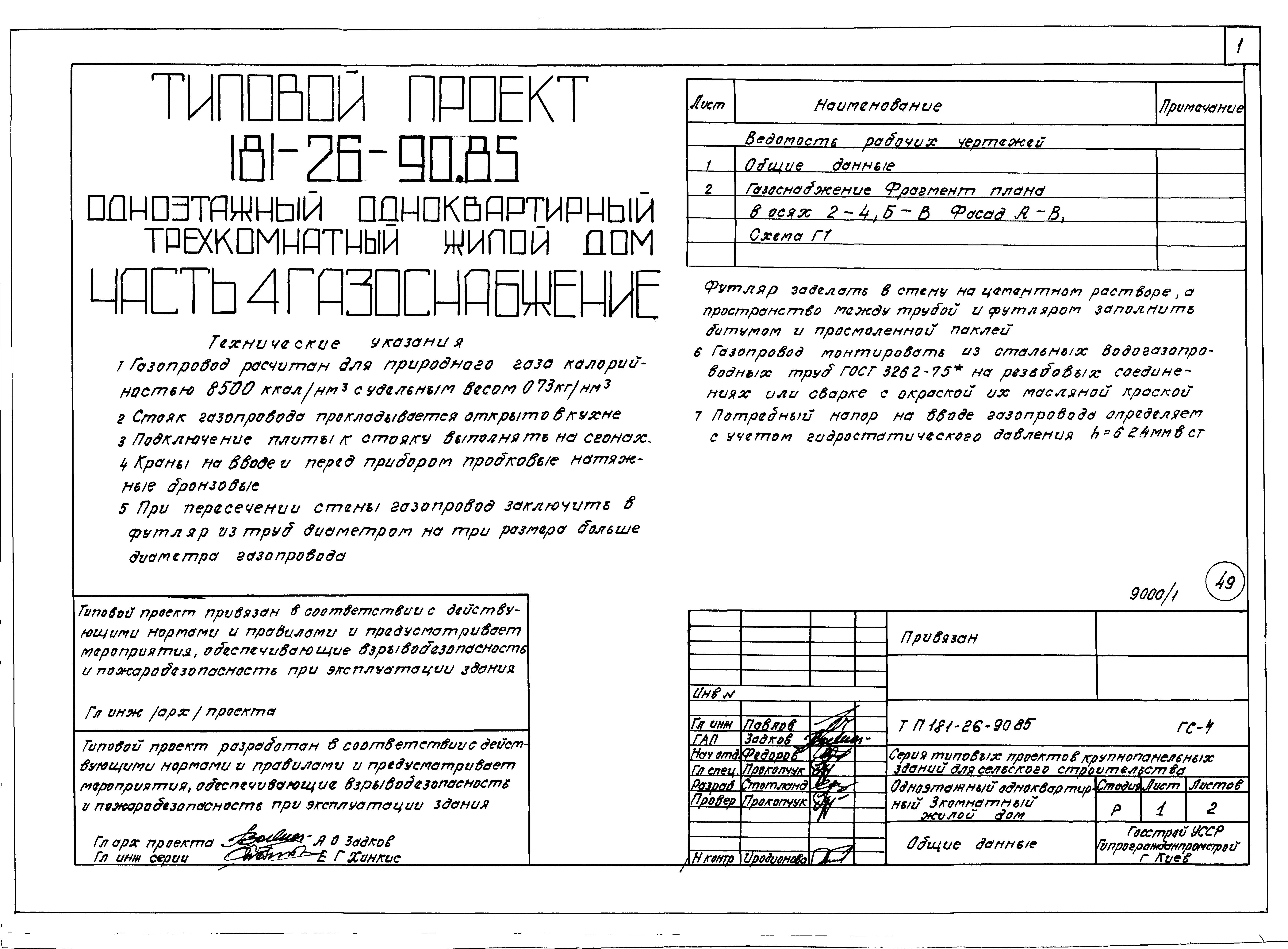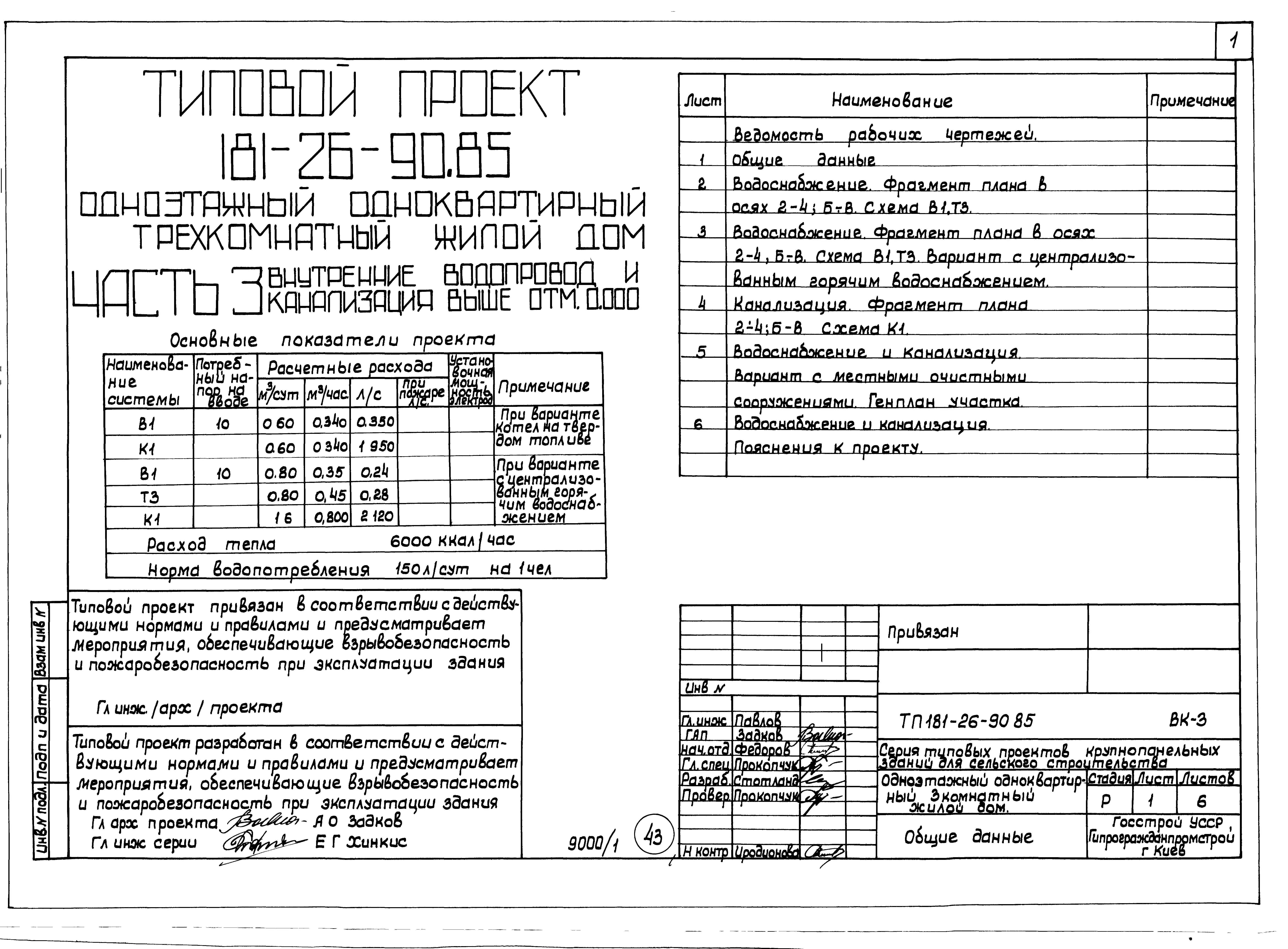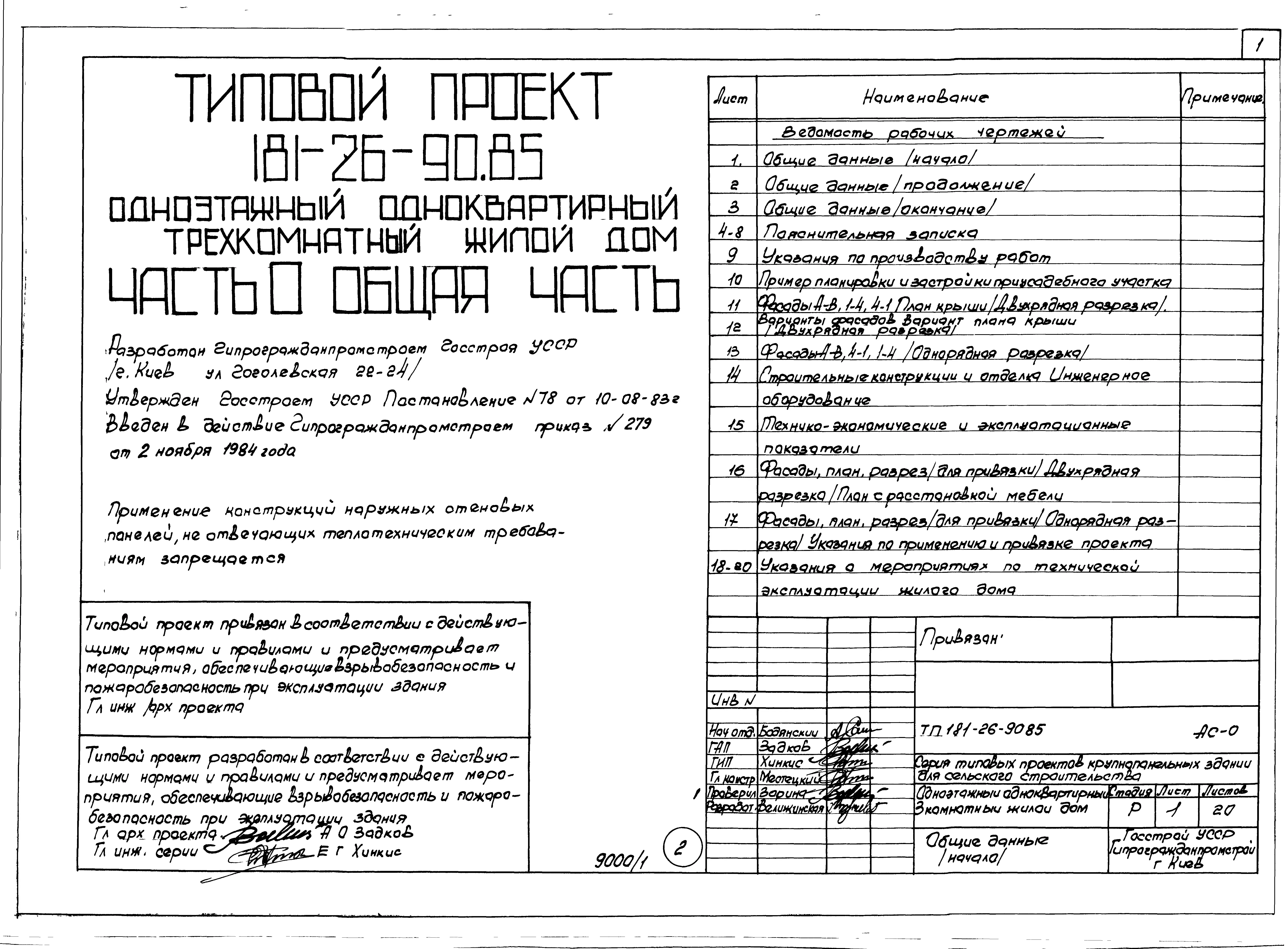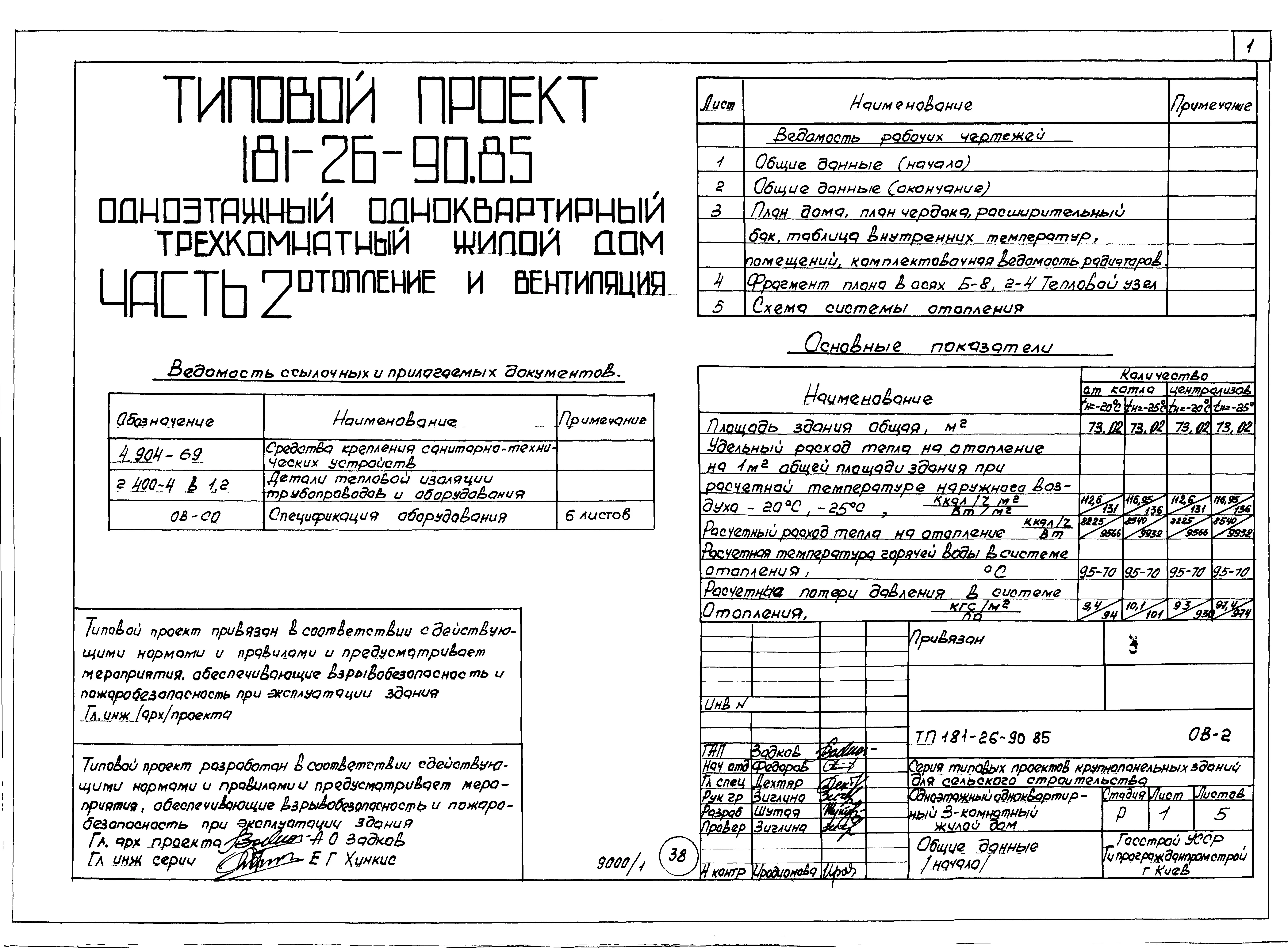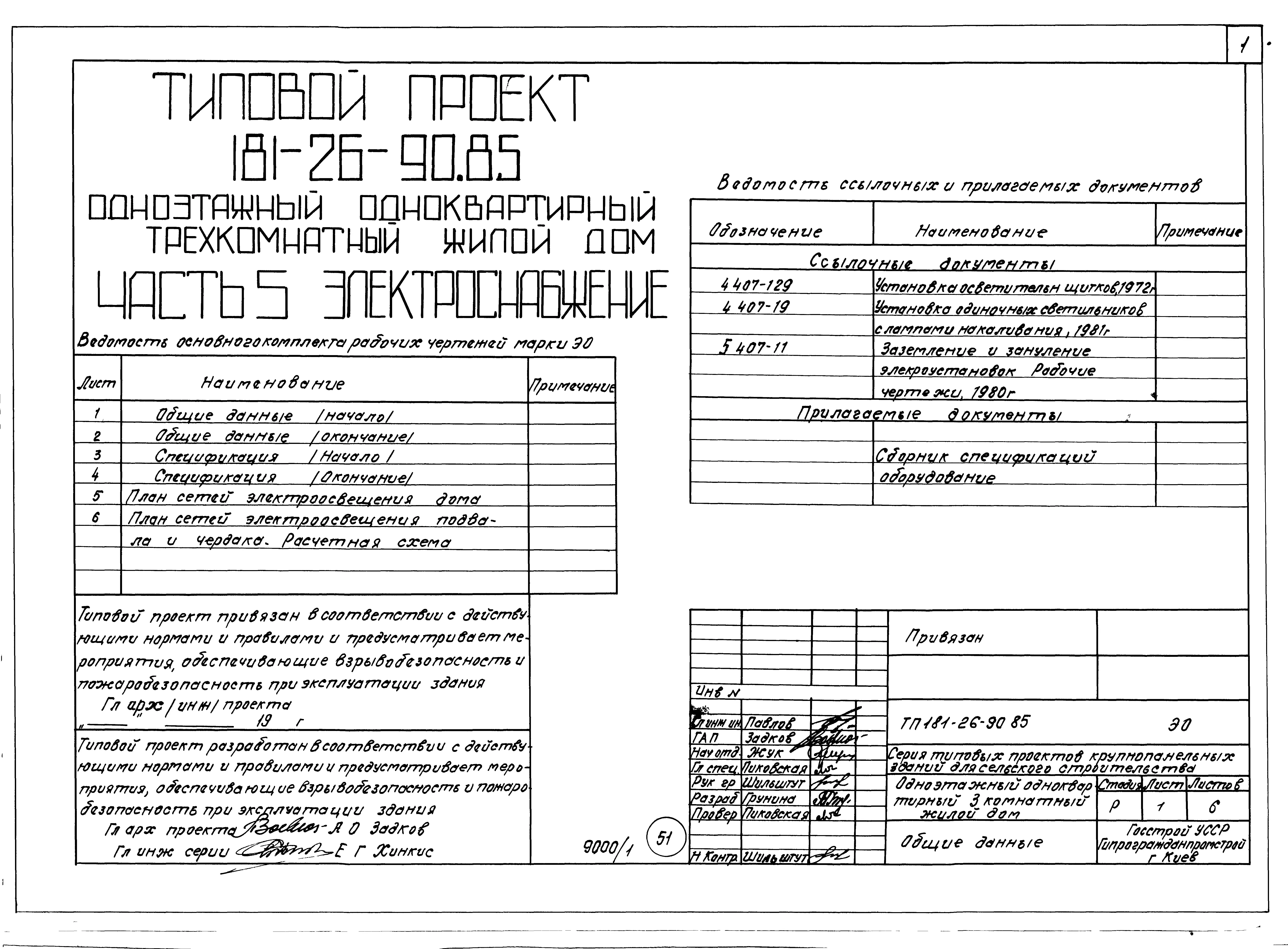 Типовой проект 181-26-90.85 Одноэтажный одноквартирный трехкомнатный жилой дом. Паспорт проекта (формат PDF) Чертежи (формат TIF)