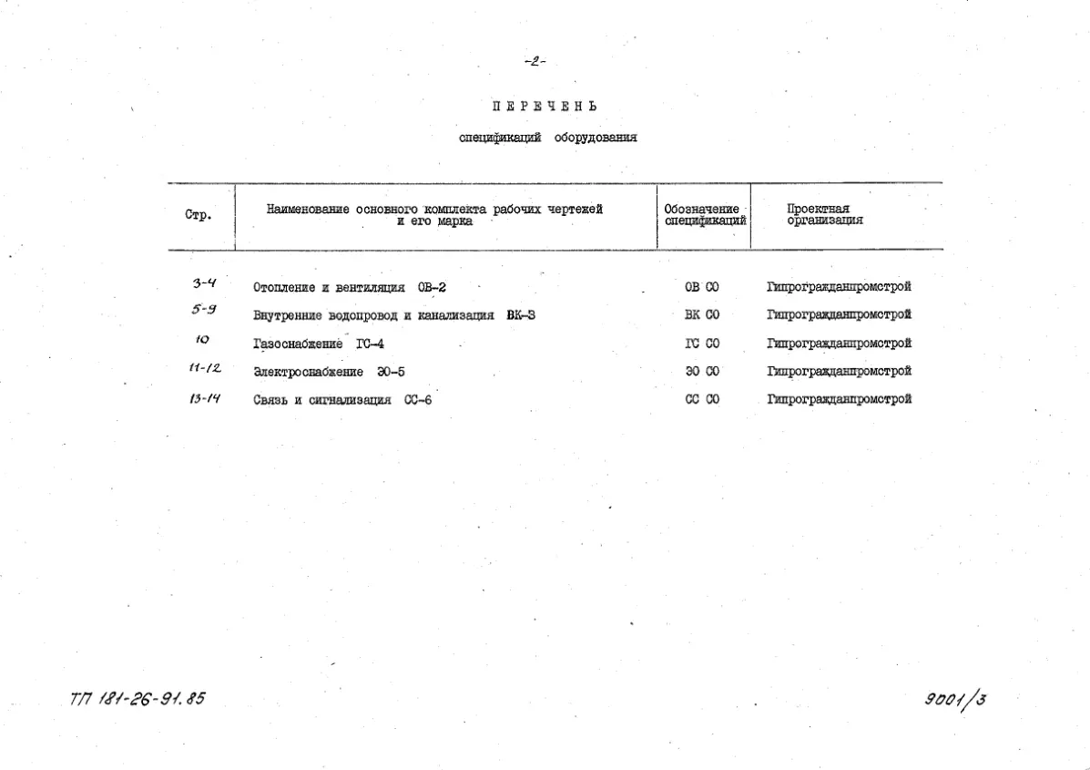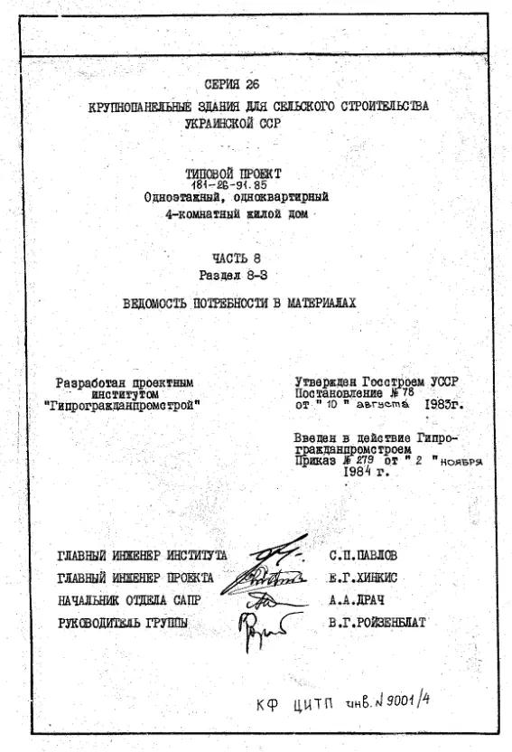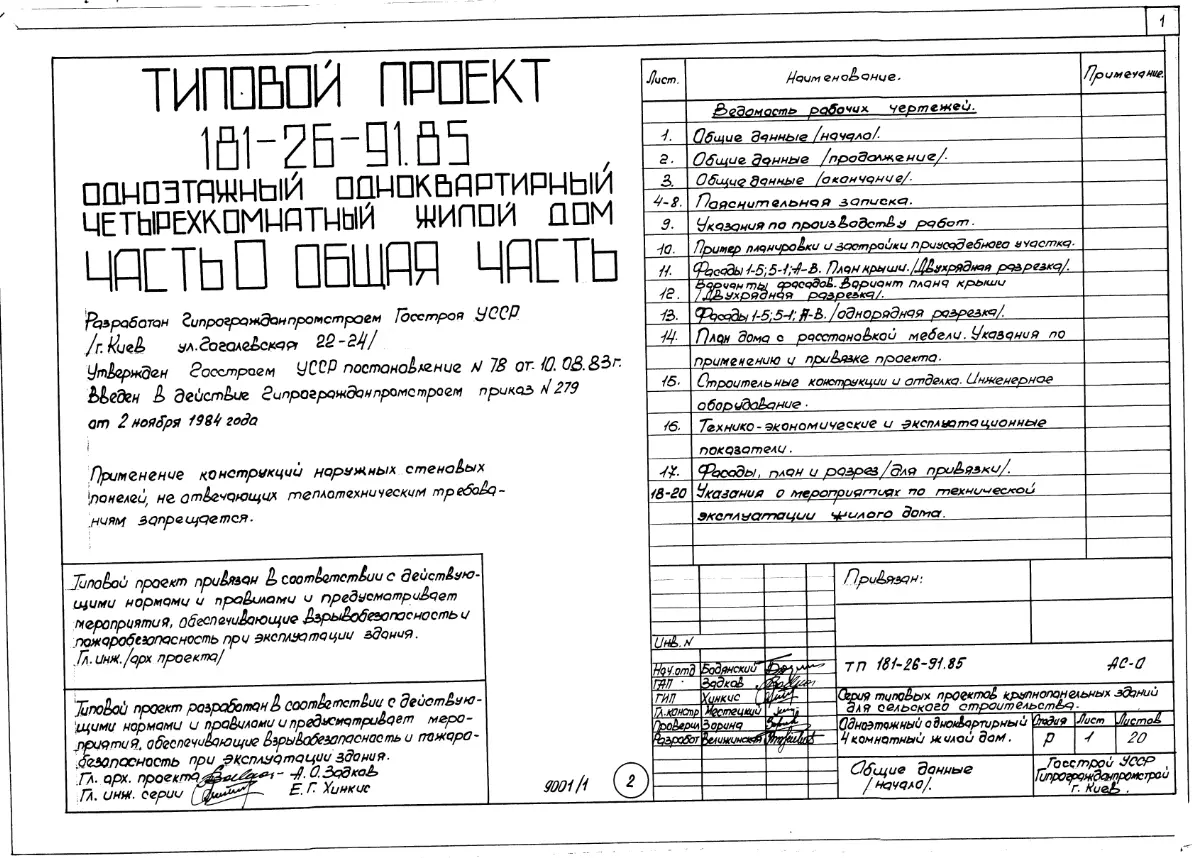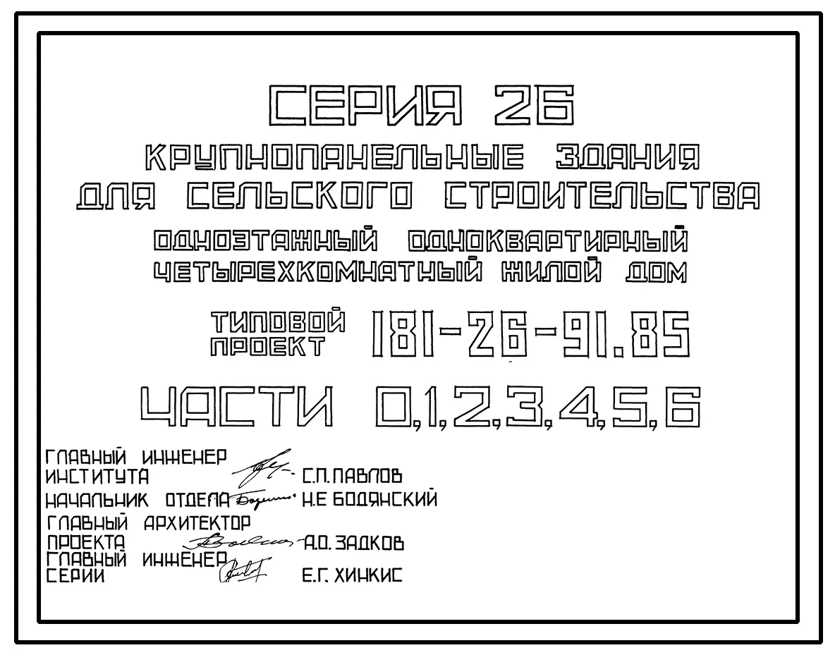 Типовой проект 181-26-91.85 Одноэтажный одноквартирный четырехкомнатный жилой дом. Паспорт проекта (формат PDF) Чертежи (формат TIF)