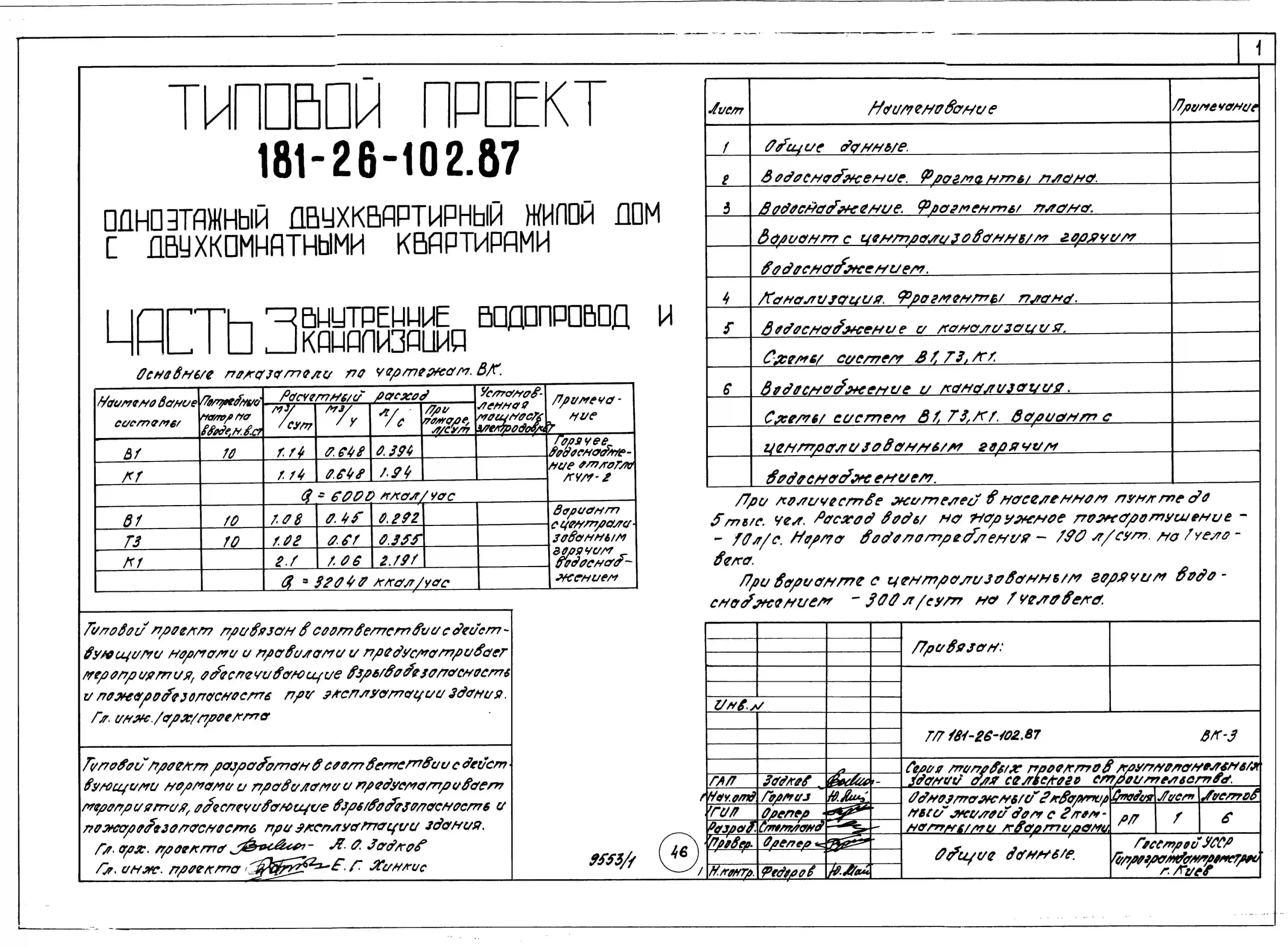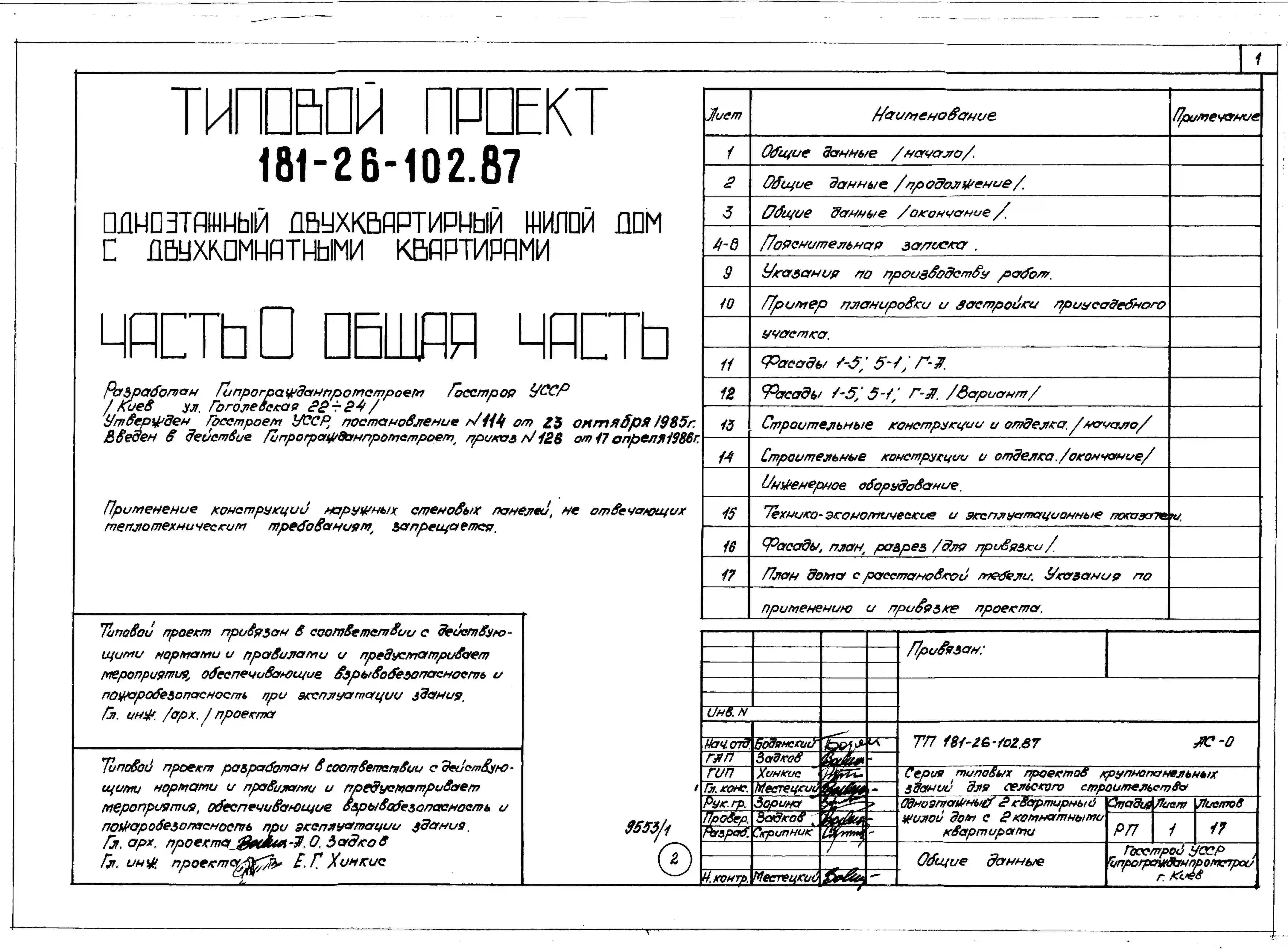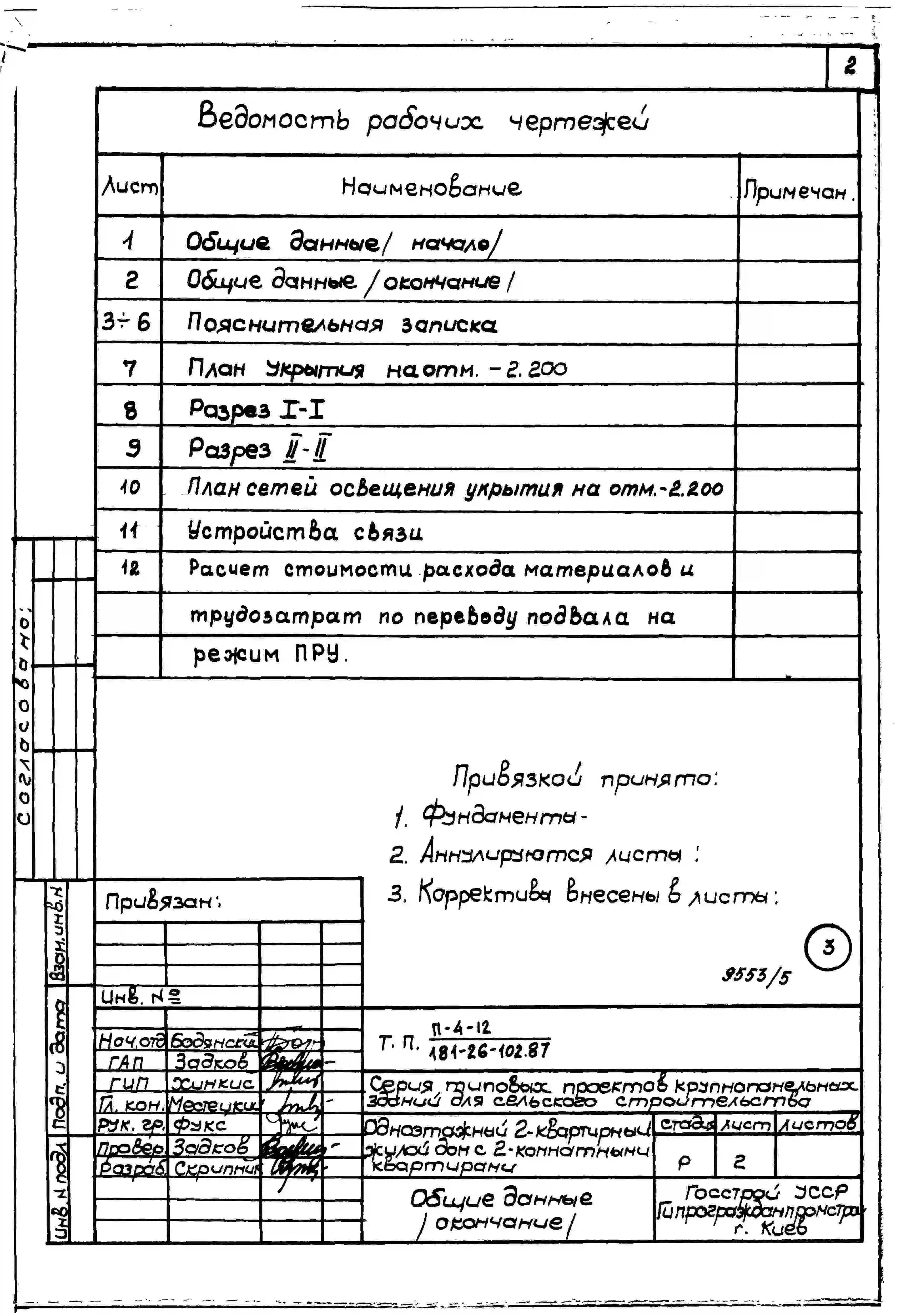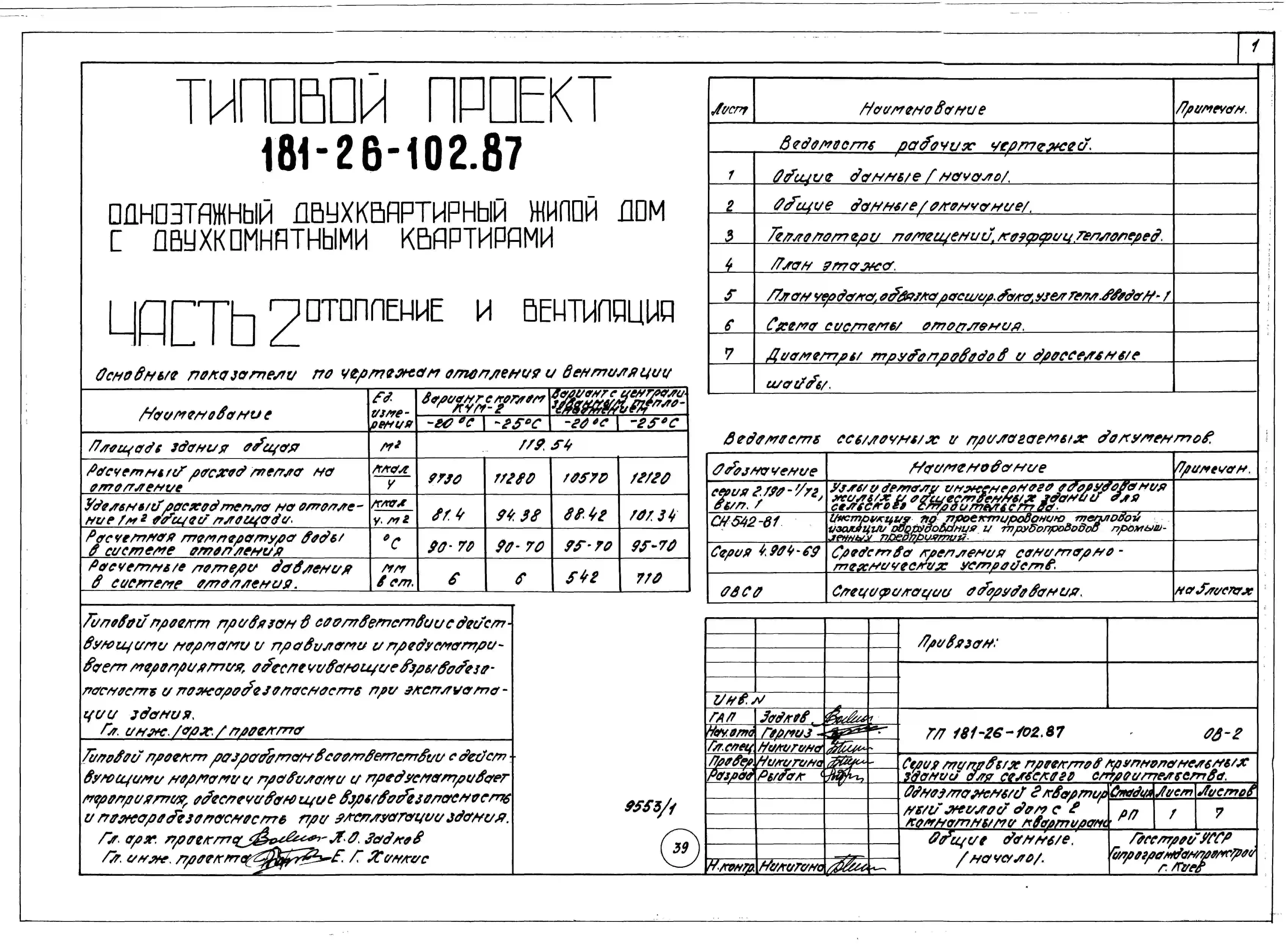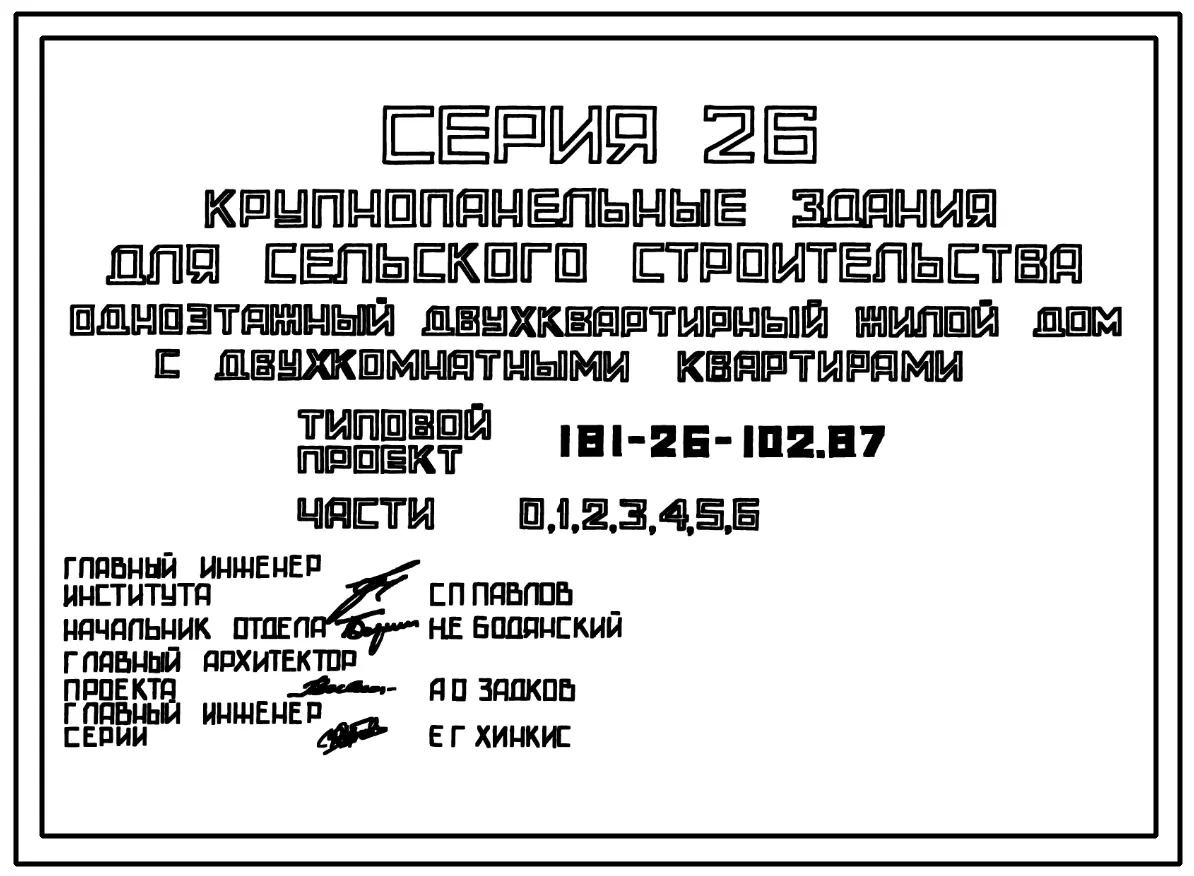 Типовой проект 181-26-102.87 Одноэтажный двухквартирный жилой дом с двухкомнатными квартирами. Паспорт проекта (формат PDF) Чертежи (формат TIF)