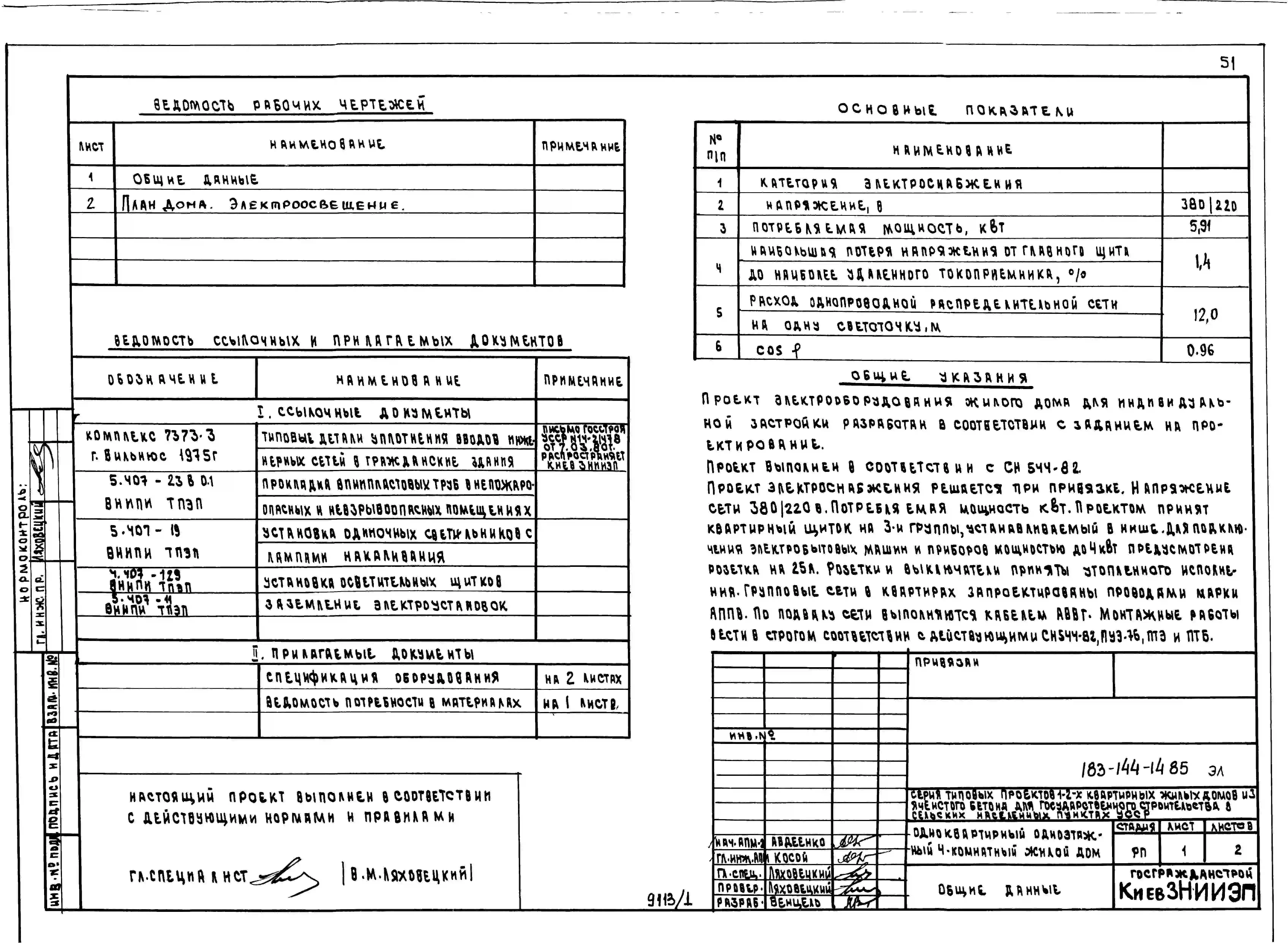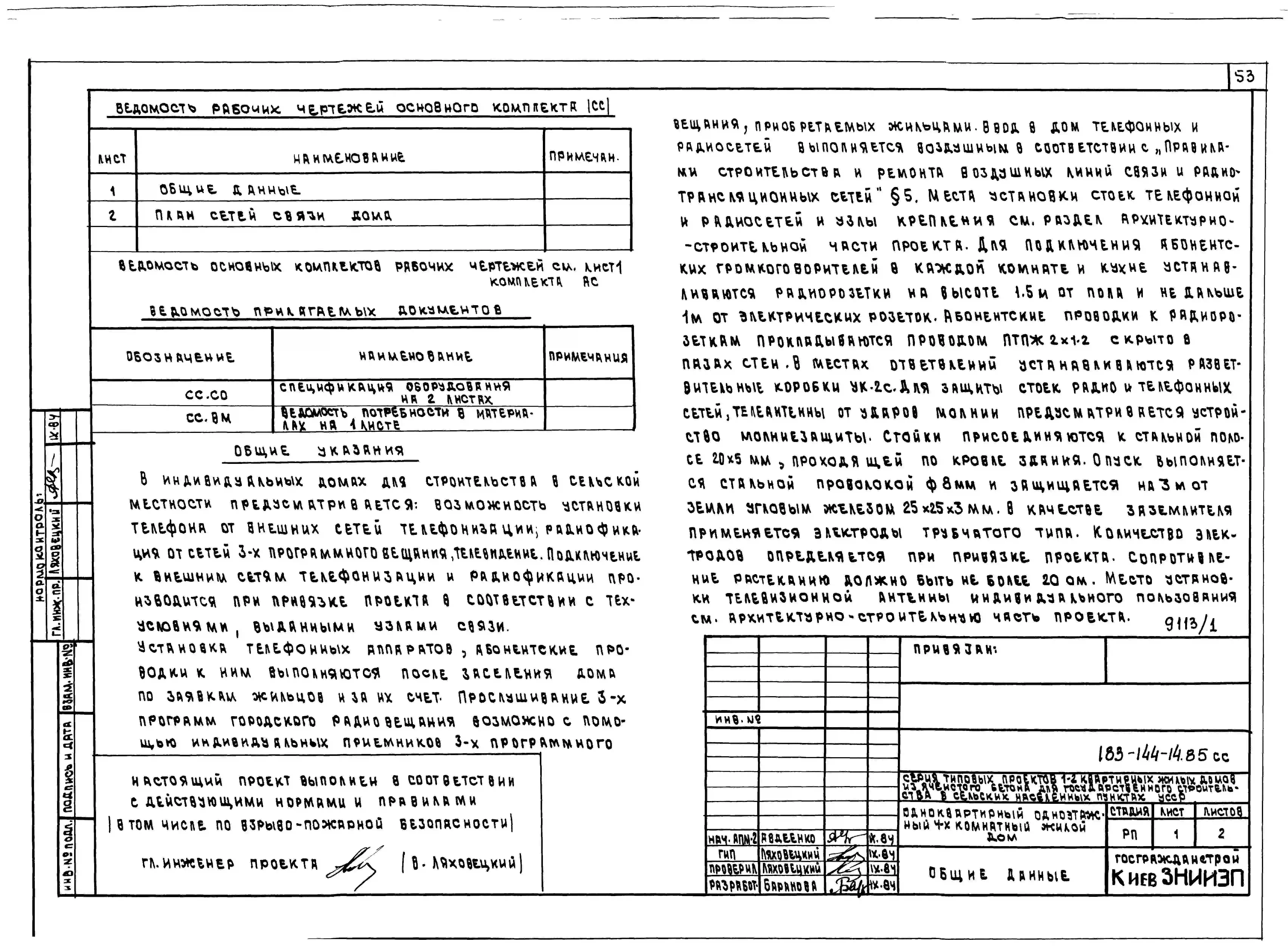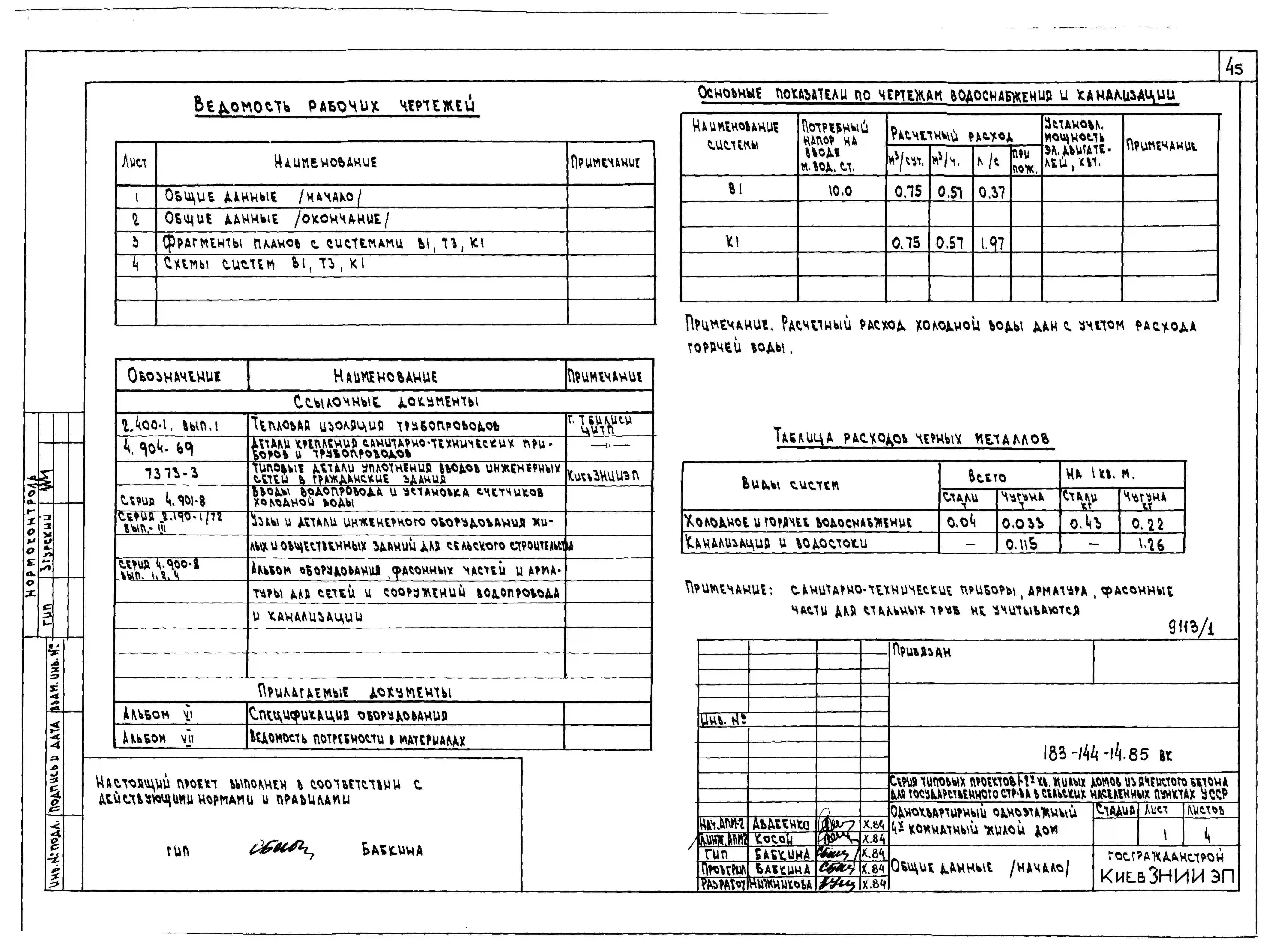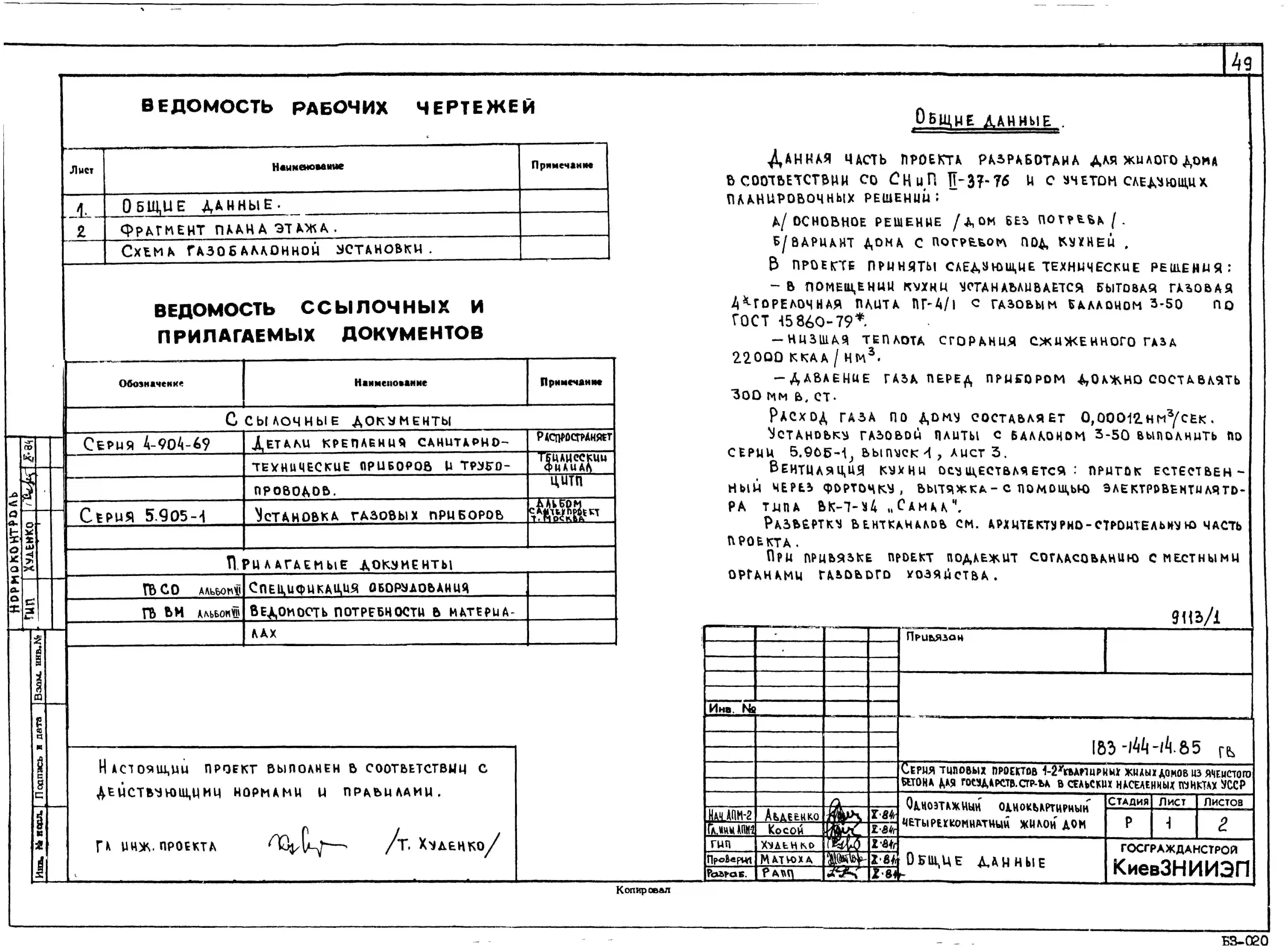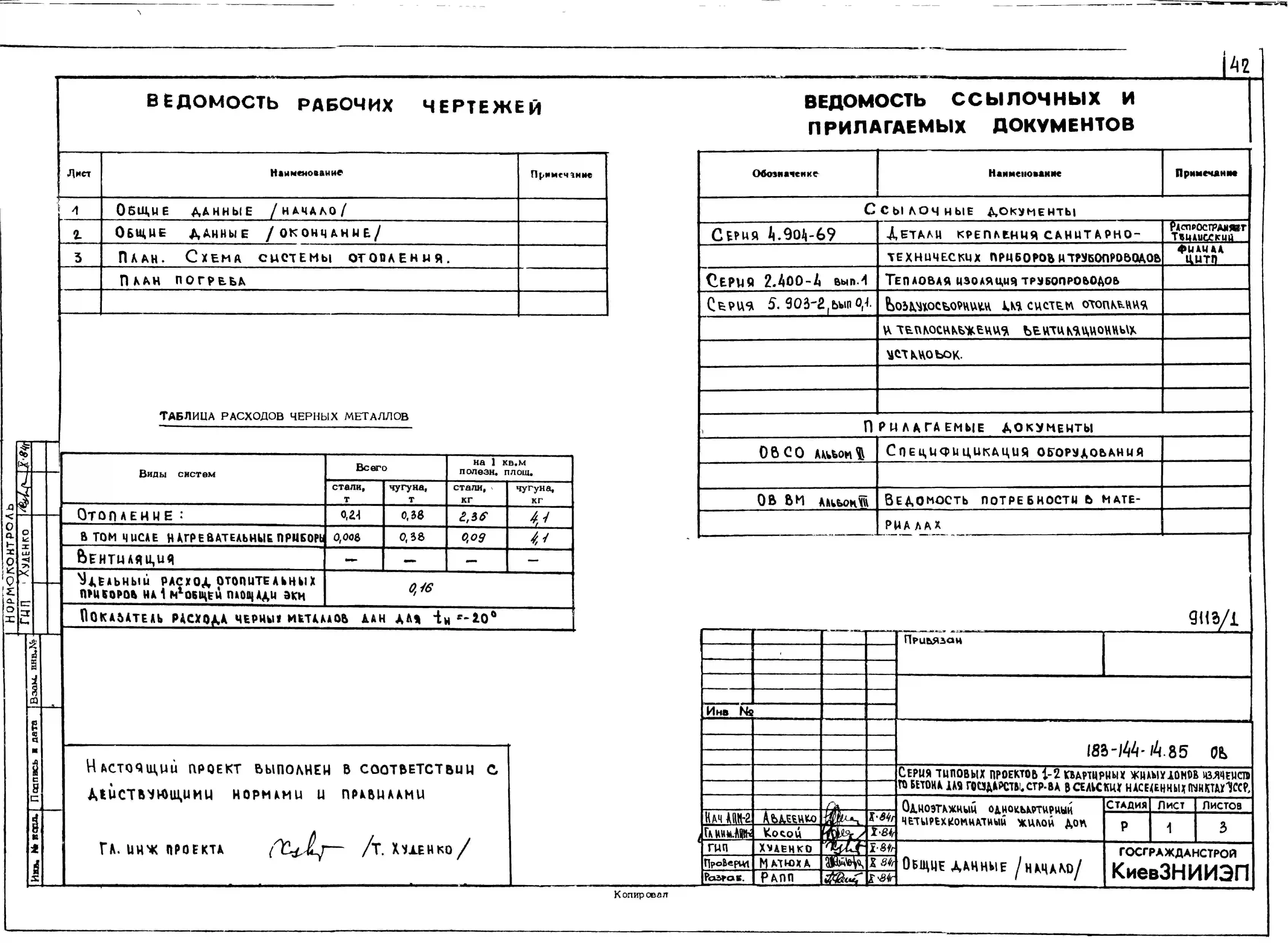 Типовой проект 183-144-14.85 Одноквартирный одноэтажный четырехкомнатный жилой дом. Паспорт проекта (формат PDF) Чертежи (формат TIF)