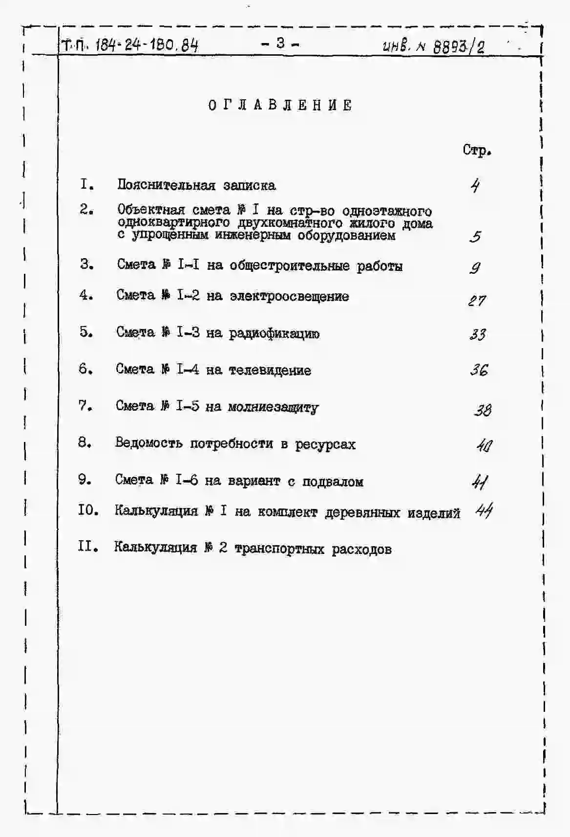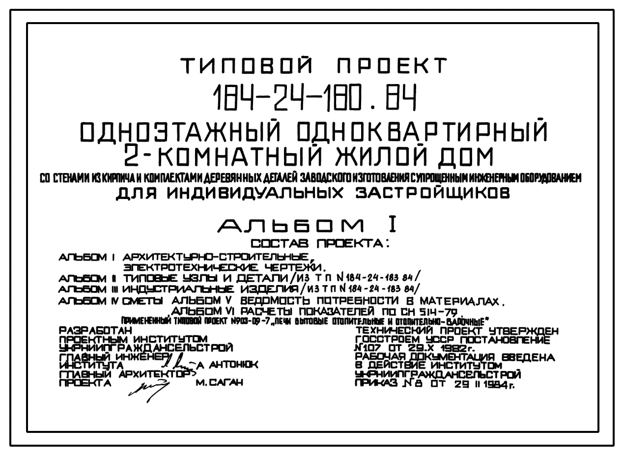 Типовой проект 184-24-180.84 Одноэтажный одноквартирный 2-комнатный жилой дом. Паспорт проекта (формат PDF) Чертежи (формат TIF)