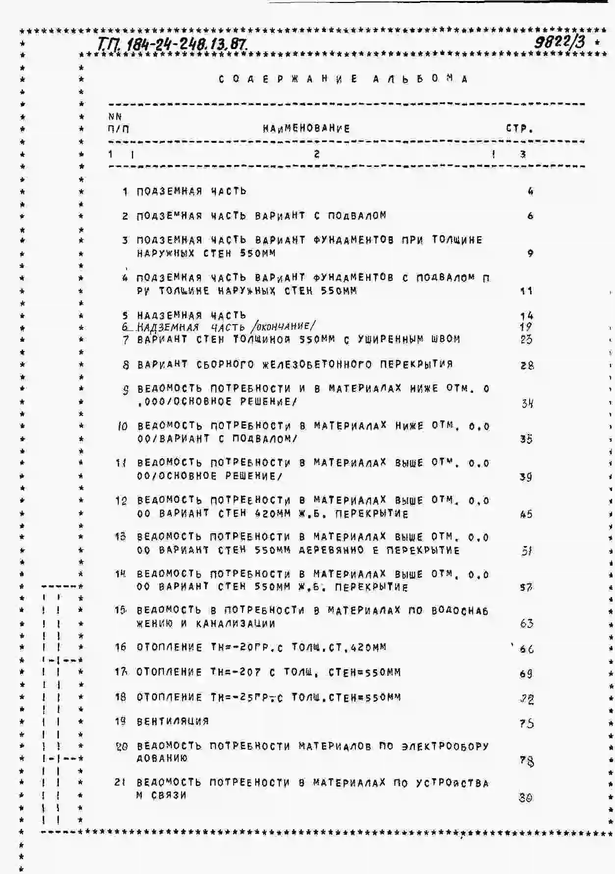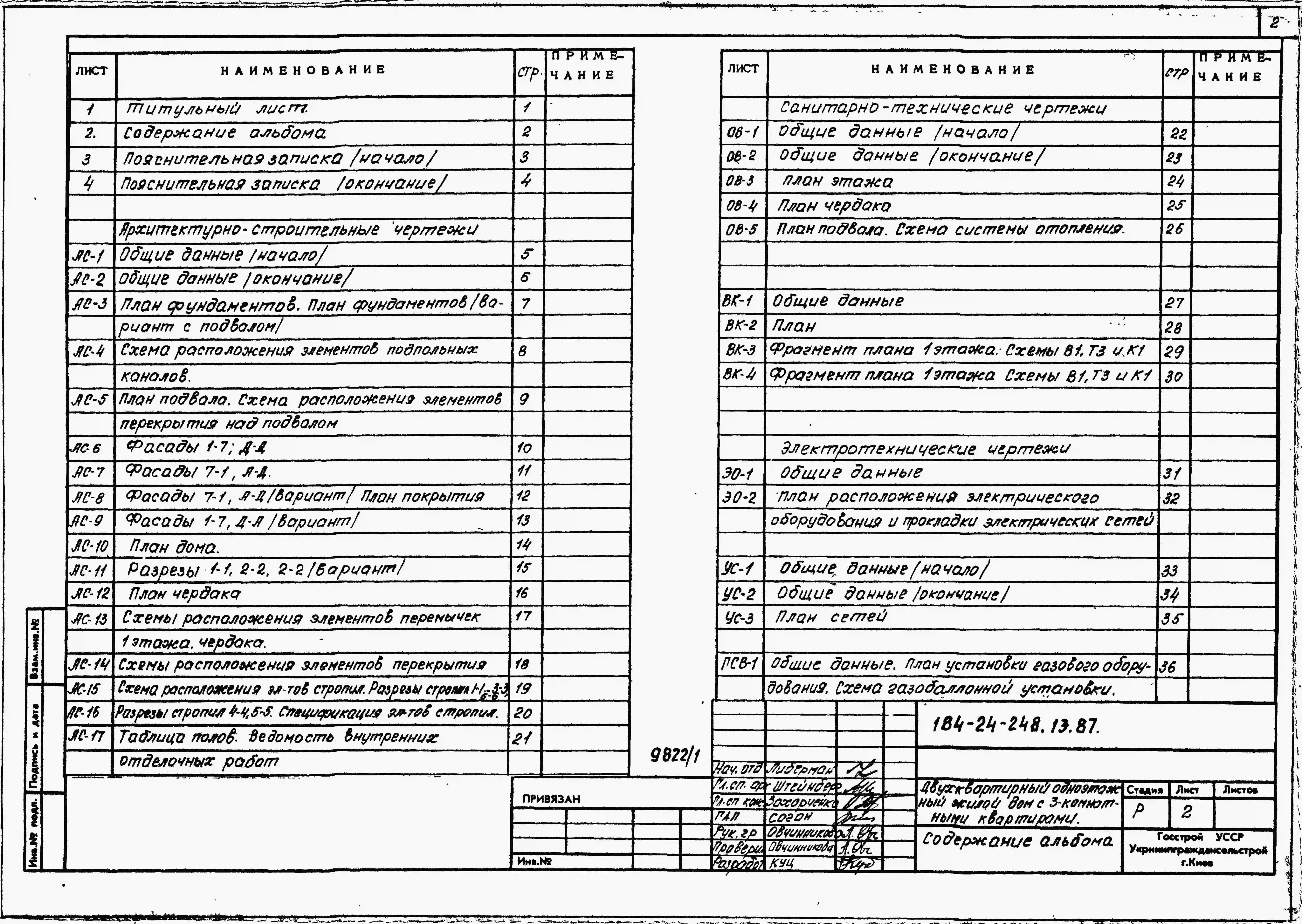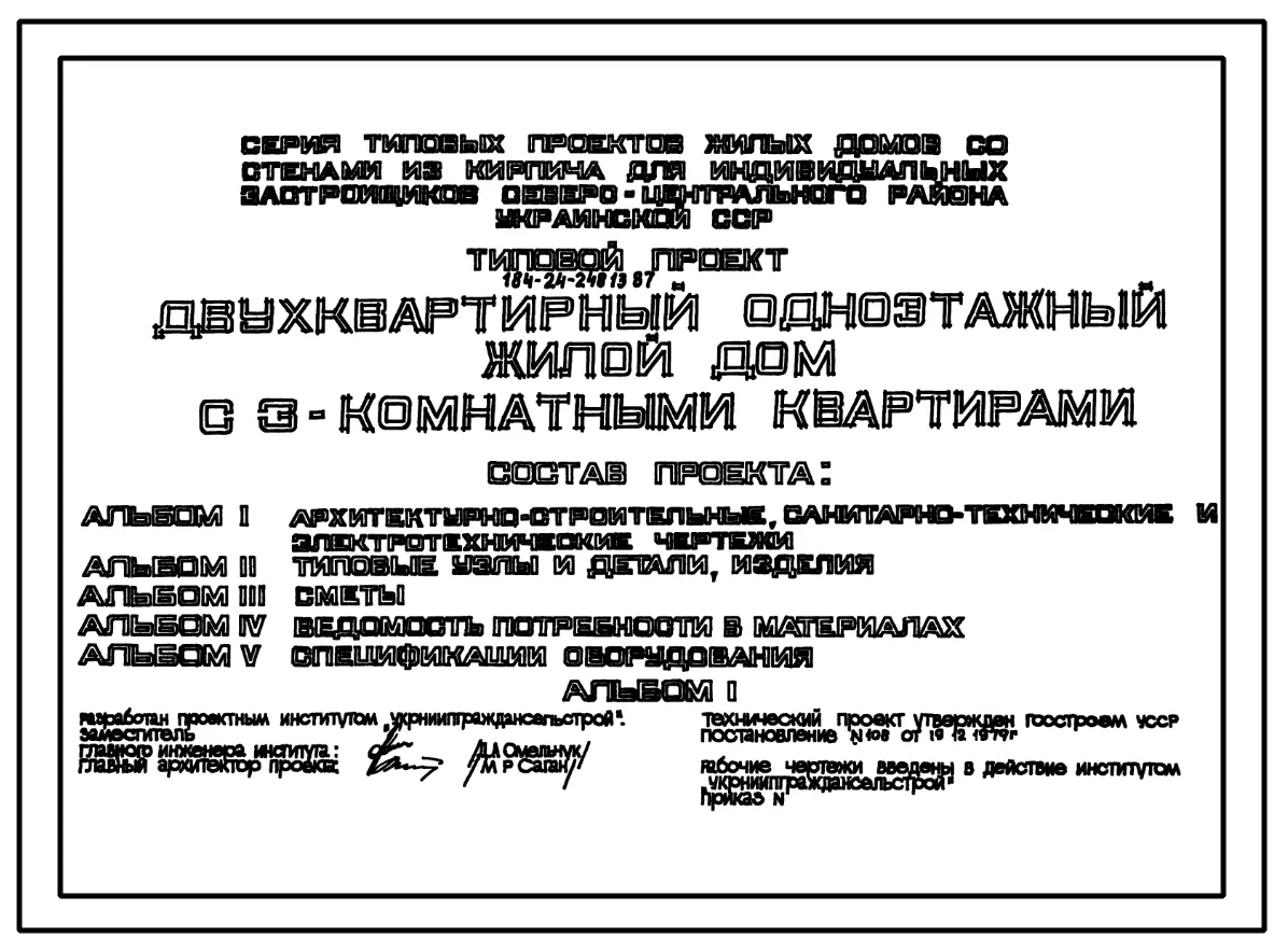 Типовой проект 184-24-248.13.87 Двухквартирный одноэтажный жилой дом с 3-комнатными квартирами (для индивидуальных застройщиков северо-центральных районов УССР). Паспорт проекта (формат PDF) Чертежи (формат TIF)