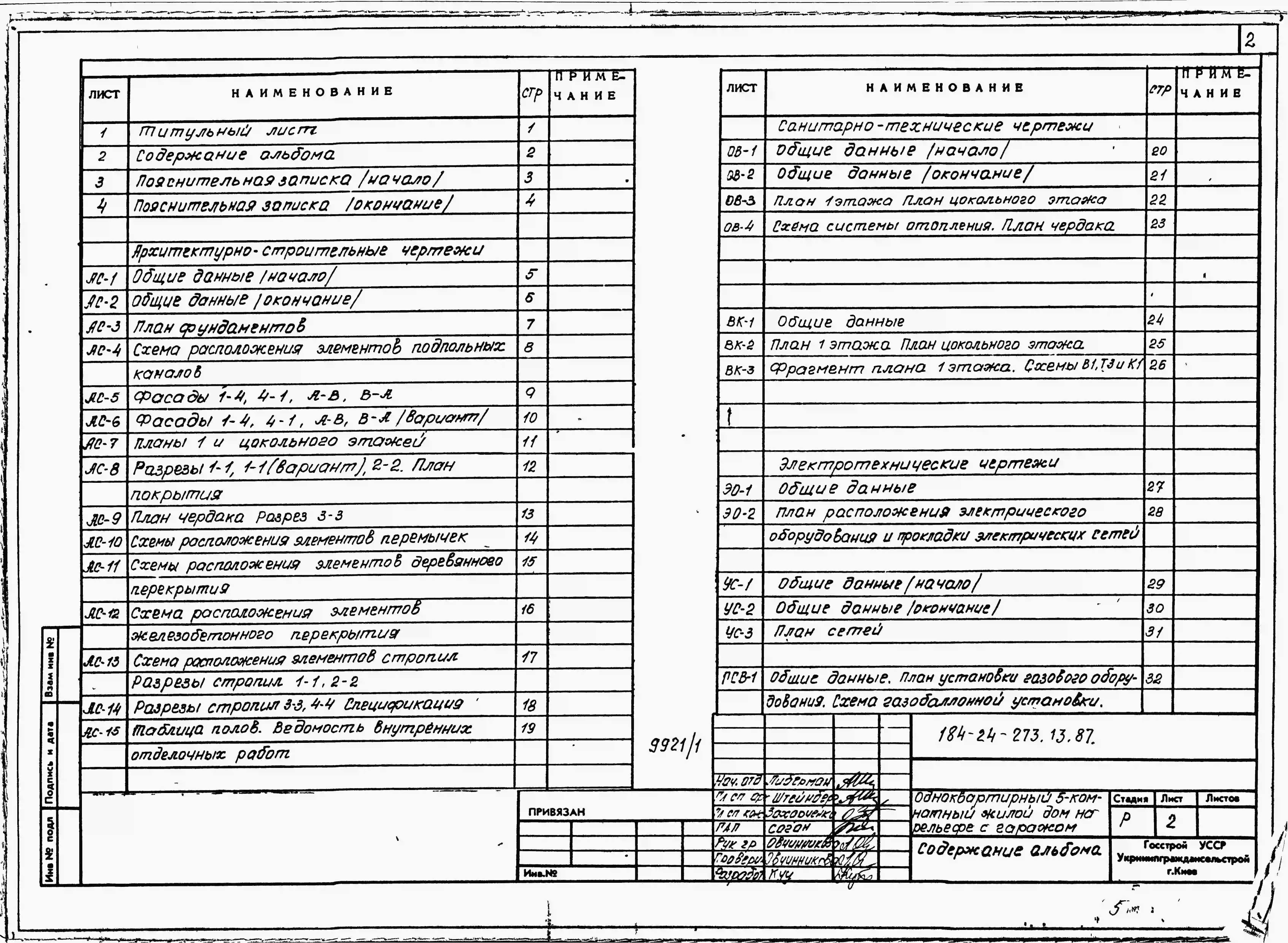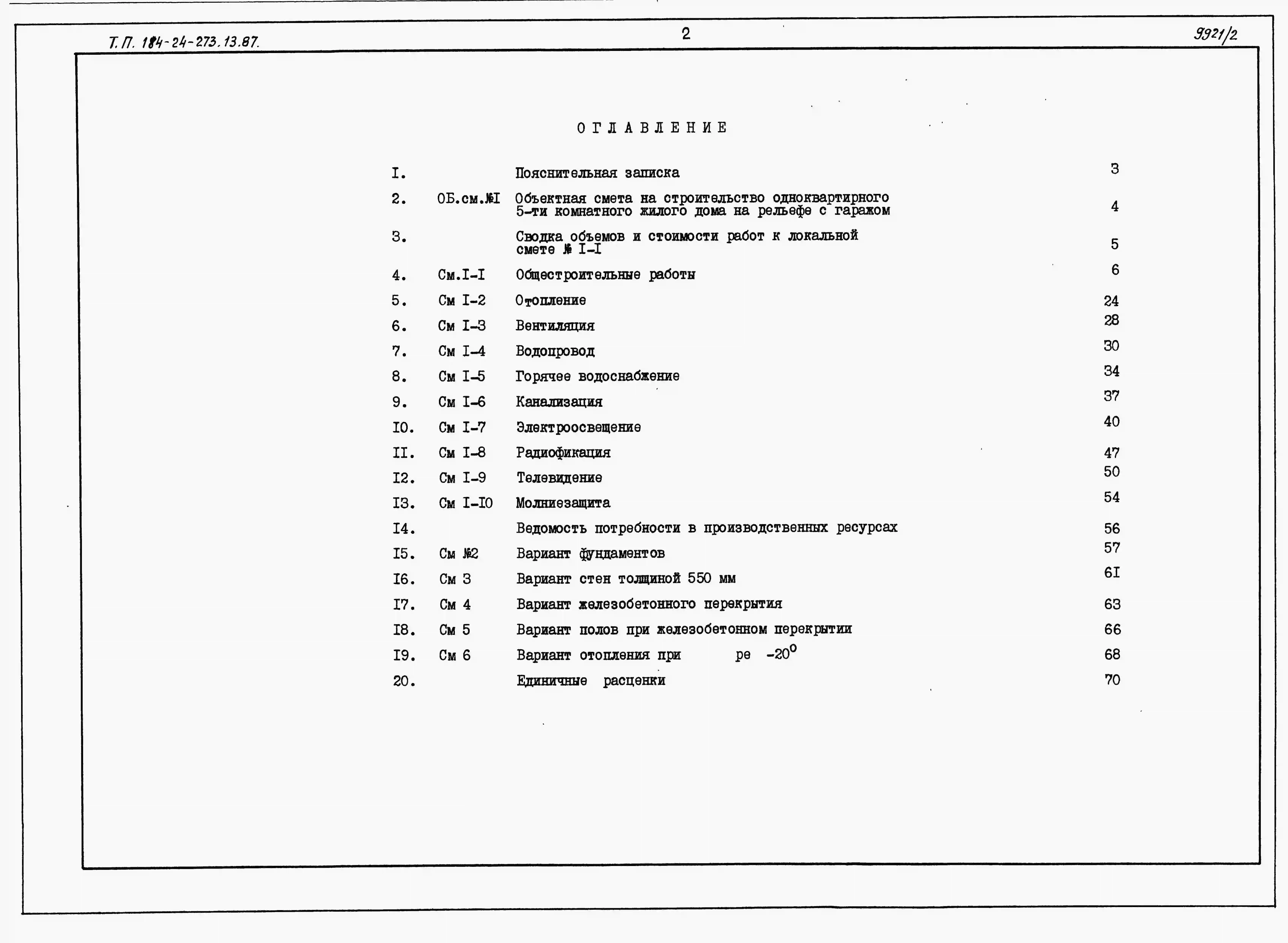 Типовой проект 184-24-273.13.87 Одноквартирный 5-комнатный жилой дом на рельефе с гаражом (для индивидуальных застройщиков западных районов УССР). Паспорт проекта (формат PDF) Чертежи (формат TIF)