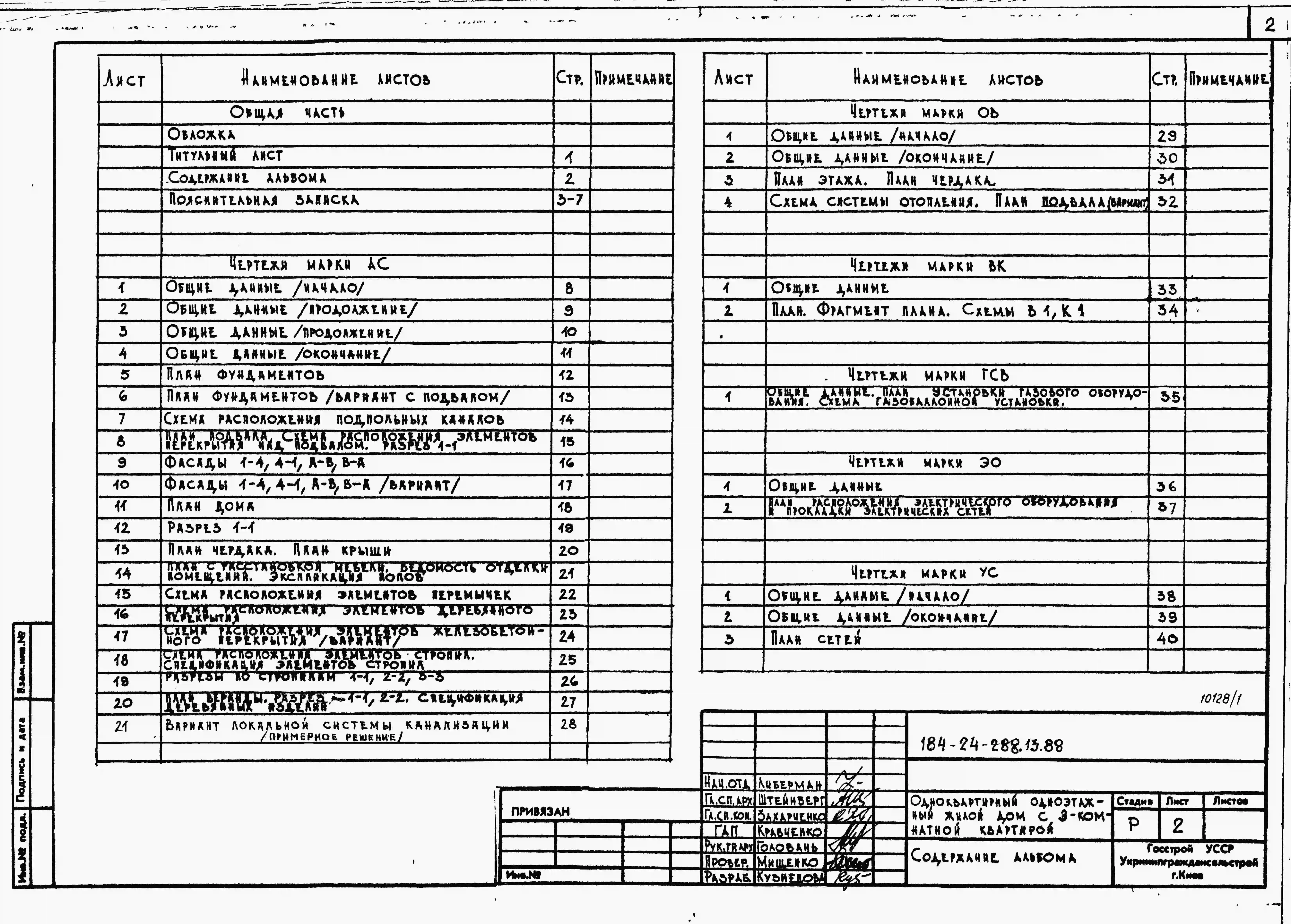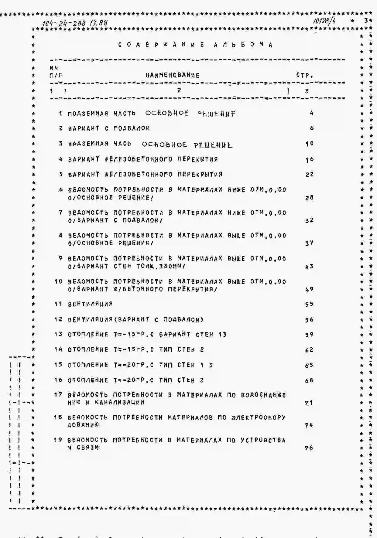 Типовой проект 184-24-288.13.88 Одноквартирный одноэтажный жилой дом с 3-комнатной квартирой (для индивидуальных застройщиков южных районов УССР). Паспорт проекта (формат PDF) Чертежи (формат TIF)