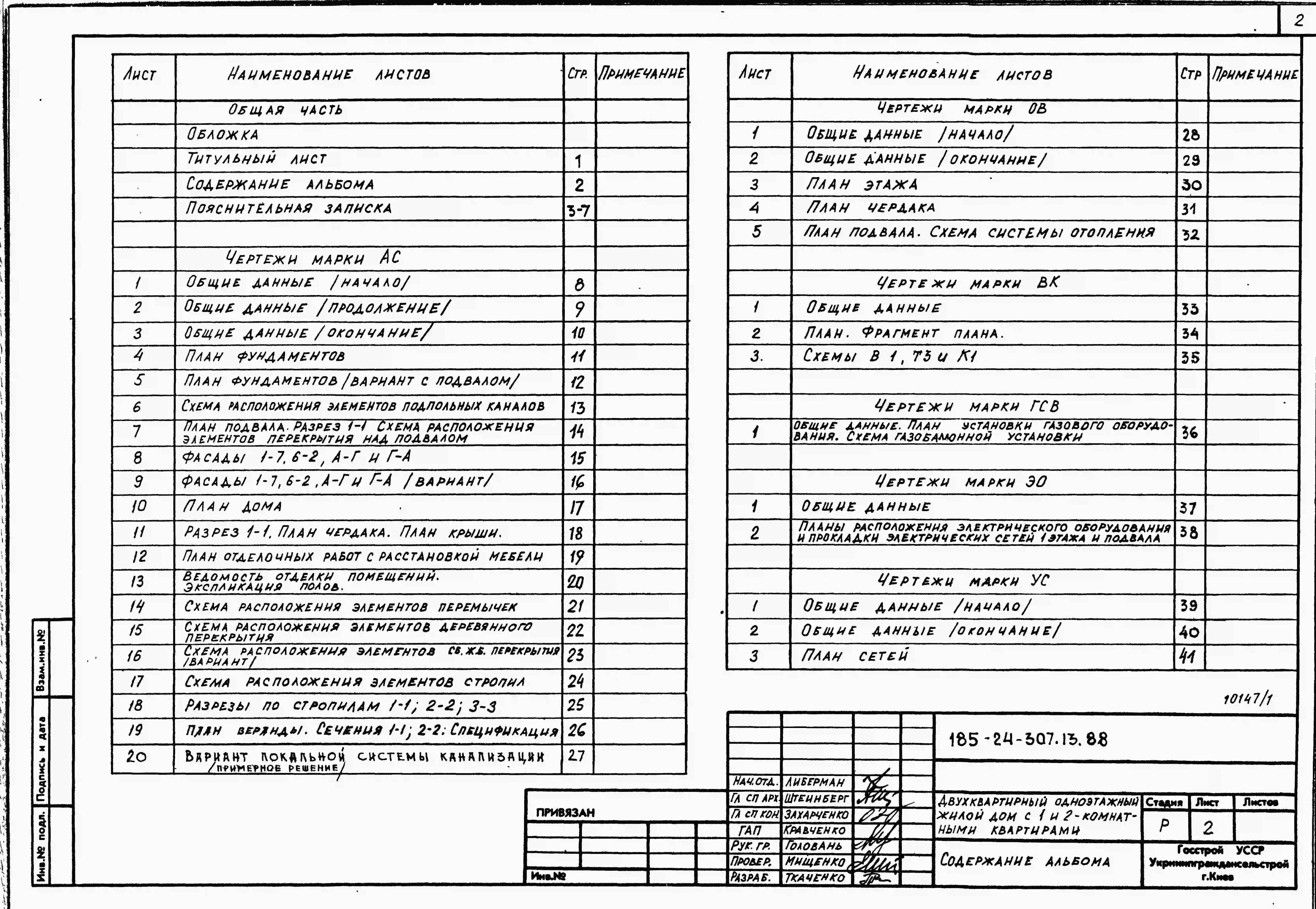 Типовой проект 185-24-307.13.88 Двухквартирный одноэтажный жилой дом с 1 и 2-комнатными квартирами . Стены из блоков пильного известняка.. Паспорт проекта (формат PDF) Чертежи (формат TIF)