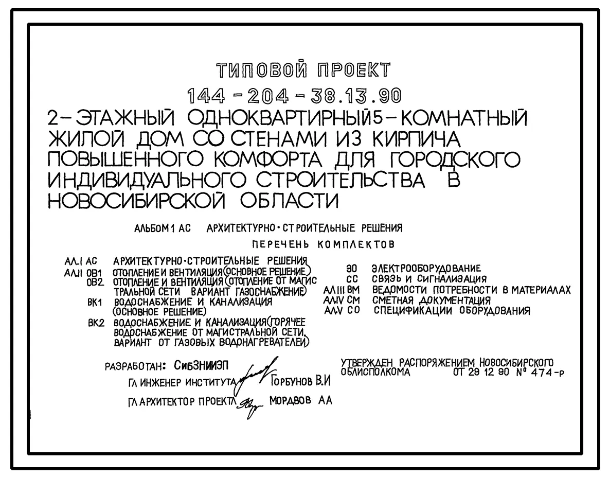Типовой проект 144-204-38.13.90 2-этажный одноквартирный 5-комнатный жилой дом со стенами из кирпича для городского индивидуального строительства в Новосибирской области. Чертежи (формат TIF) Паспорт проекта (формат PDF)