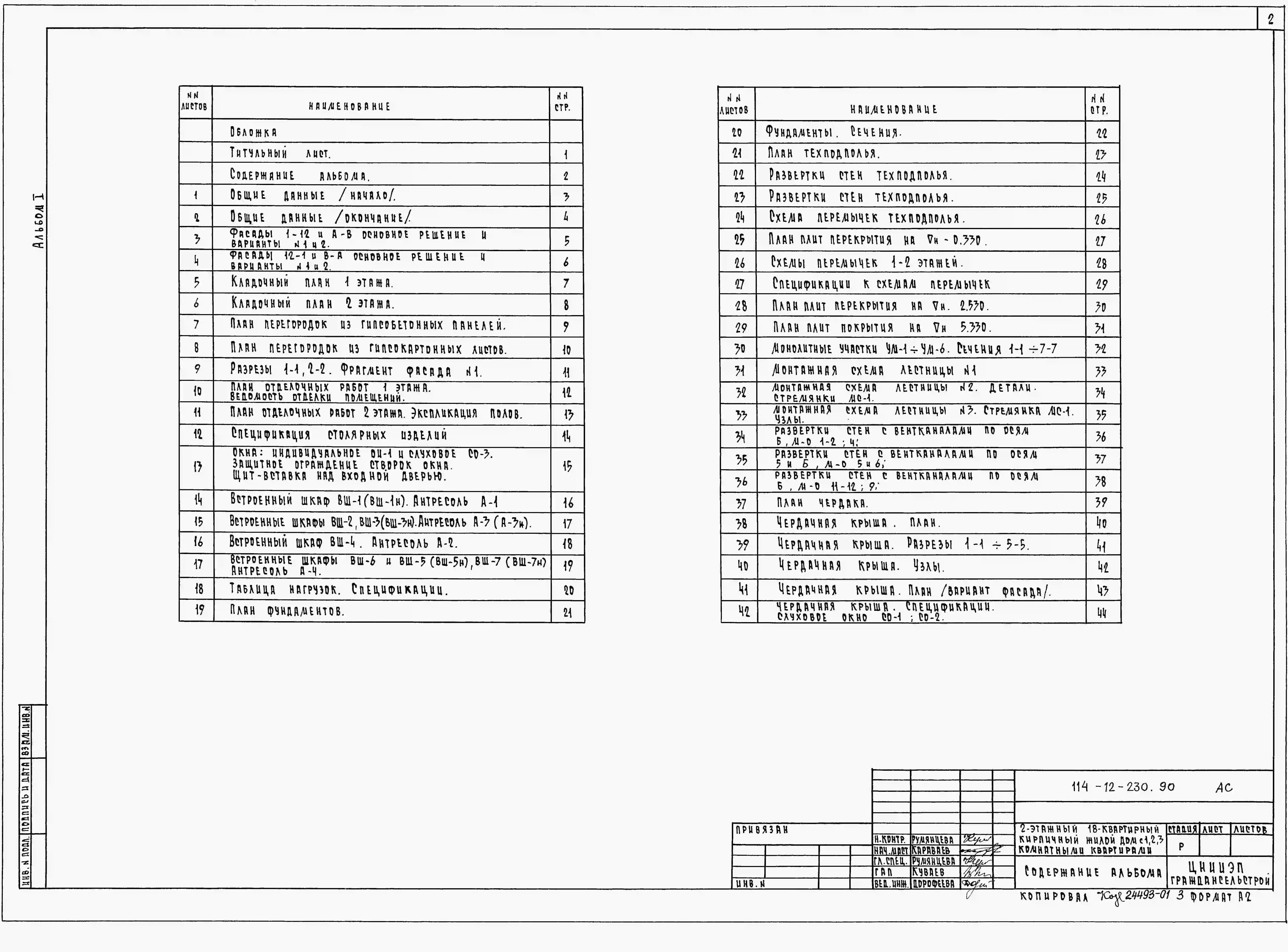 Типовой проект 114-12-230.90 Двухэтажный 18-квартирный кирпичный жилой дом с 1,2,3-комнатными квартирами. Чертежи (формат TIF)