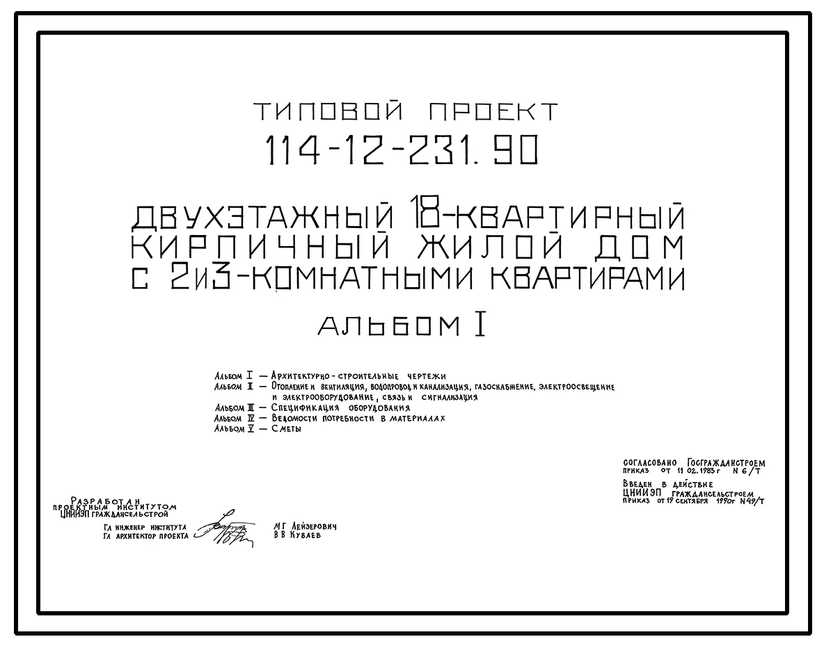 Типовой проект 114-12-231.90 Двухэтажный 18-квартирный кирпичный жилой дом с 2 и 3-комнатными квартирами. Чертежи (формат TIF)
