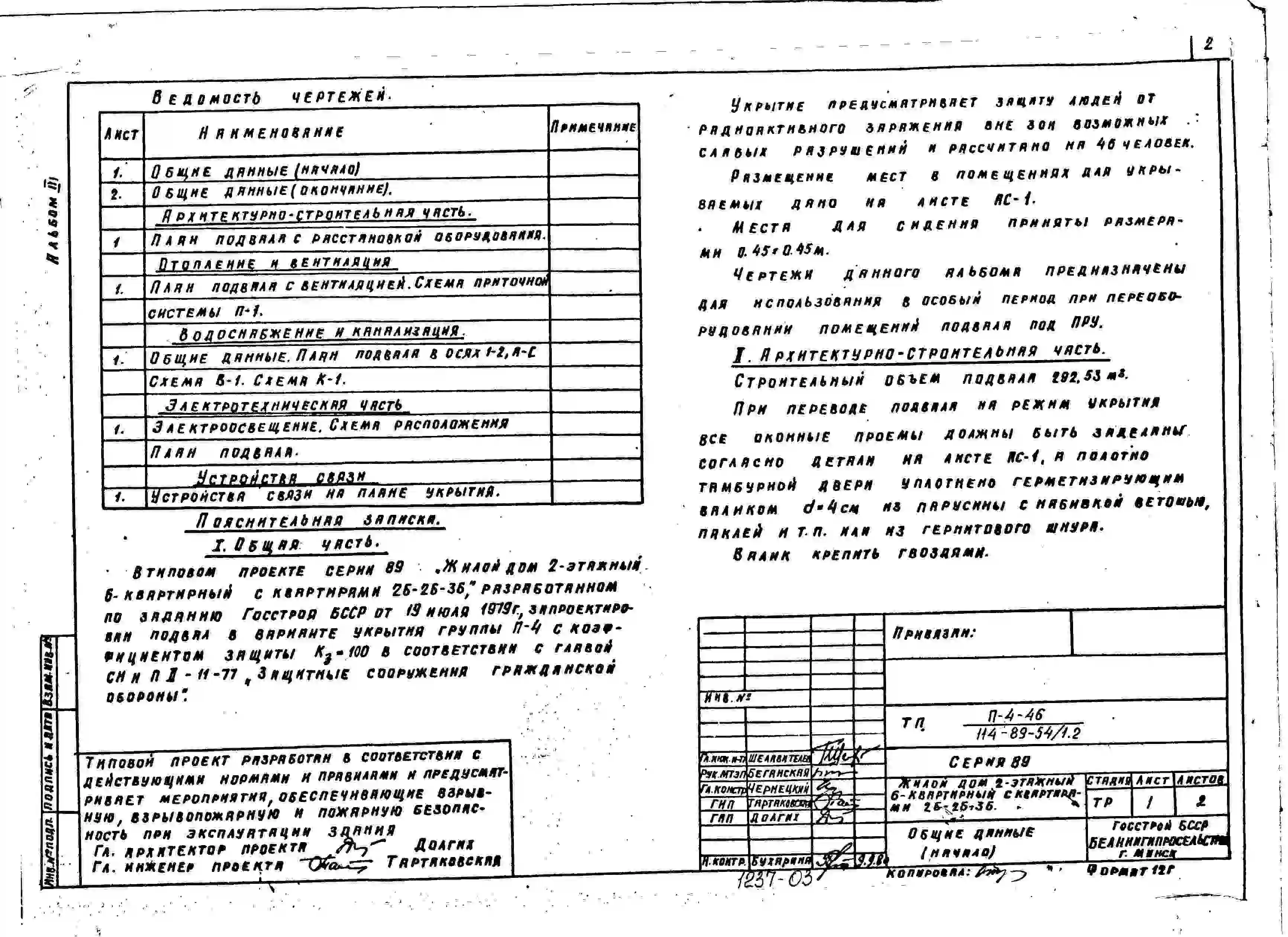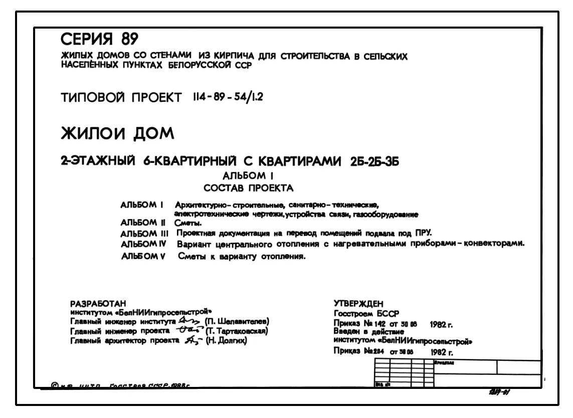 Типовой проект 114-89-54/1.2 Жилой дом 2-этажный 6-квартирный с квартирами 2Б-2Б-3Б. Паспорт проекта (формат PDF) Чертежи (формат TIF)