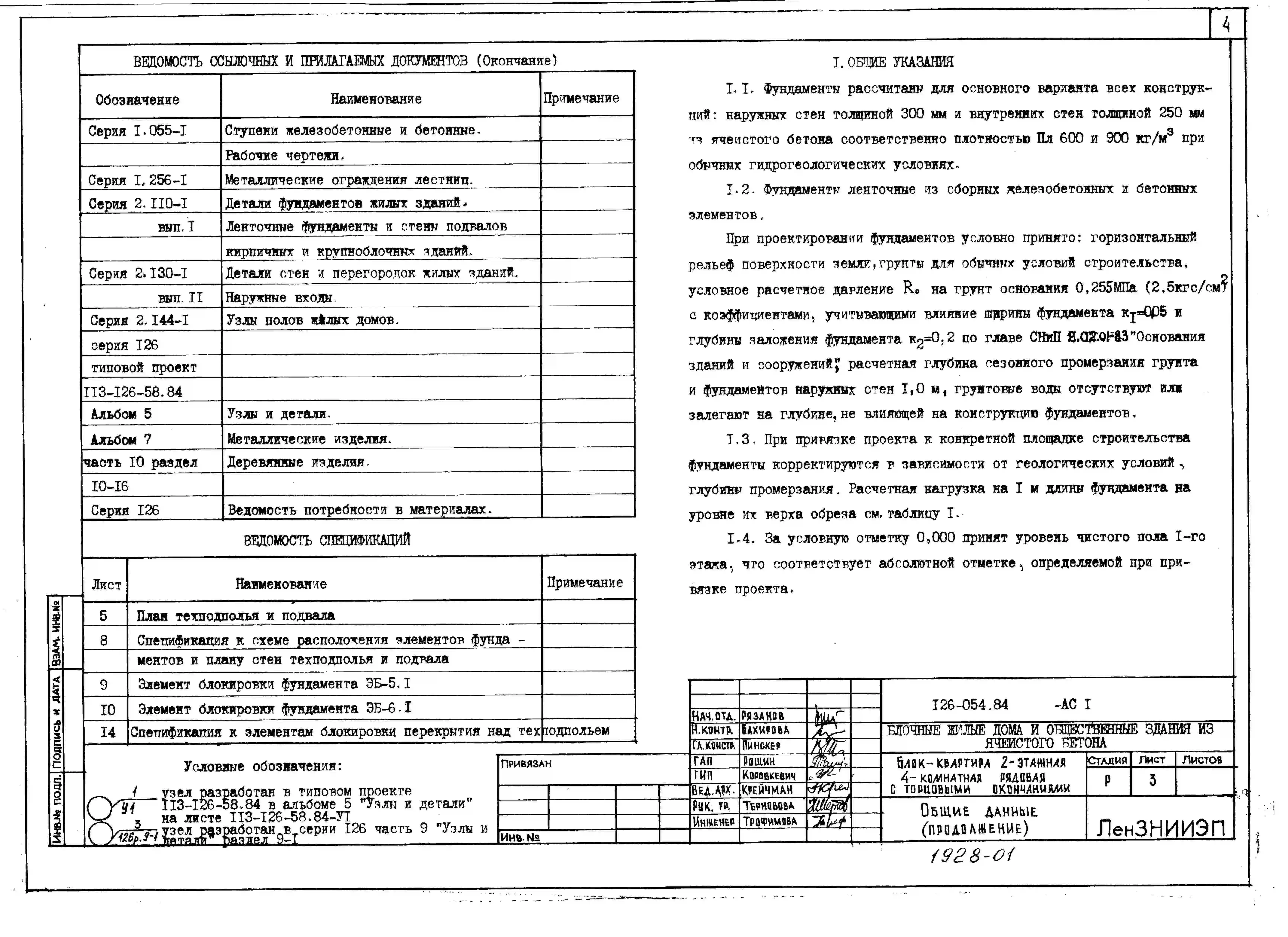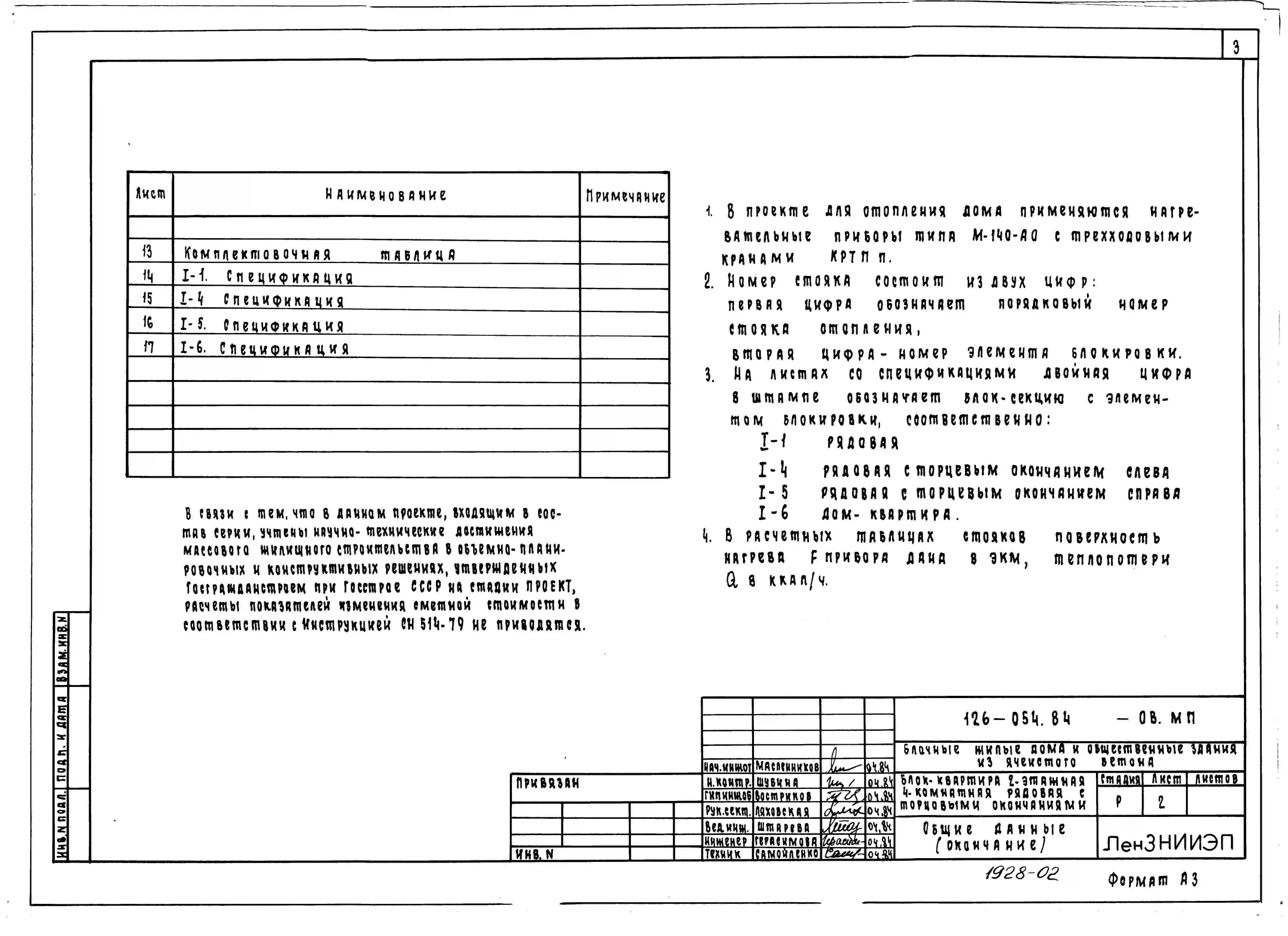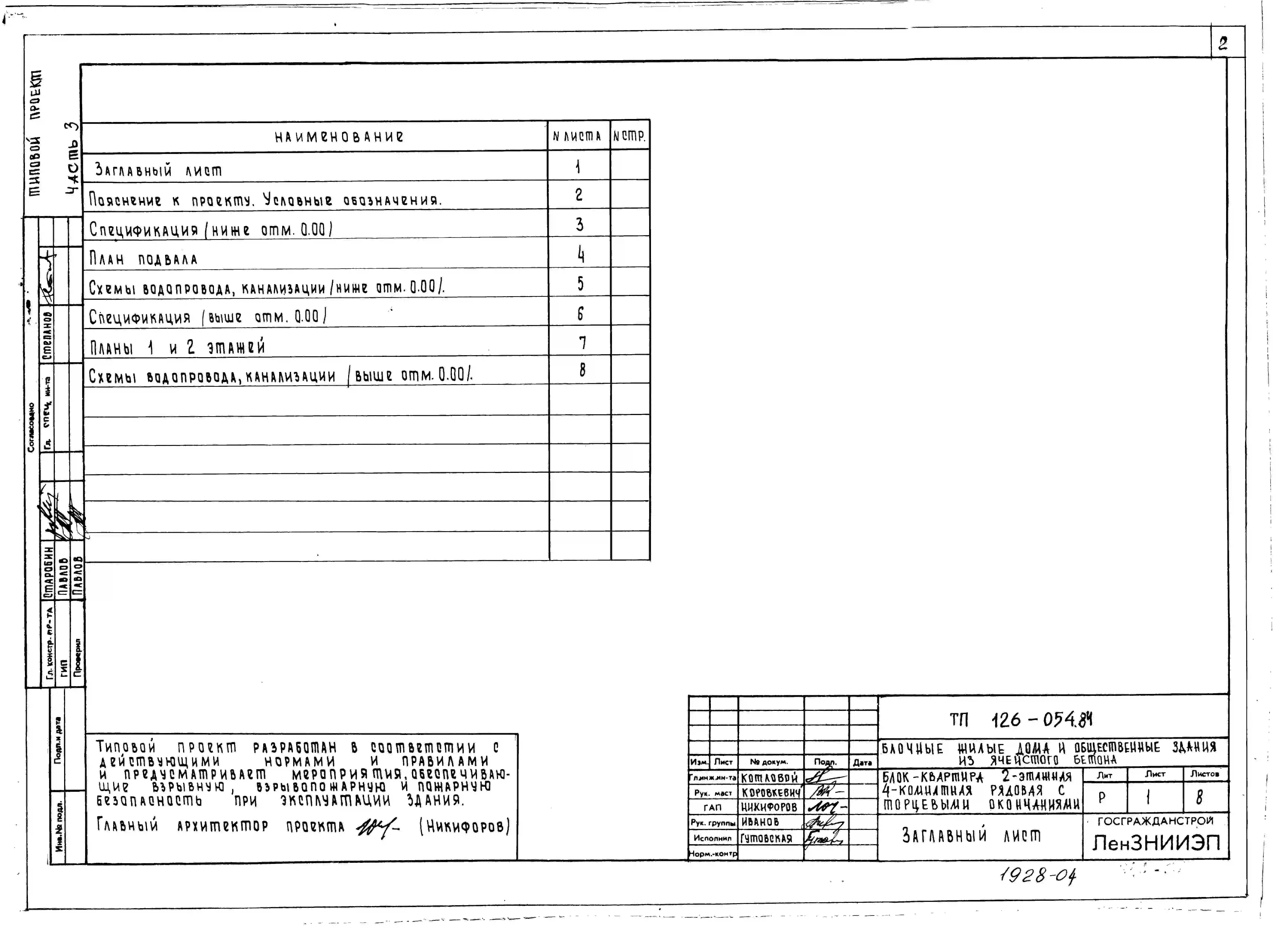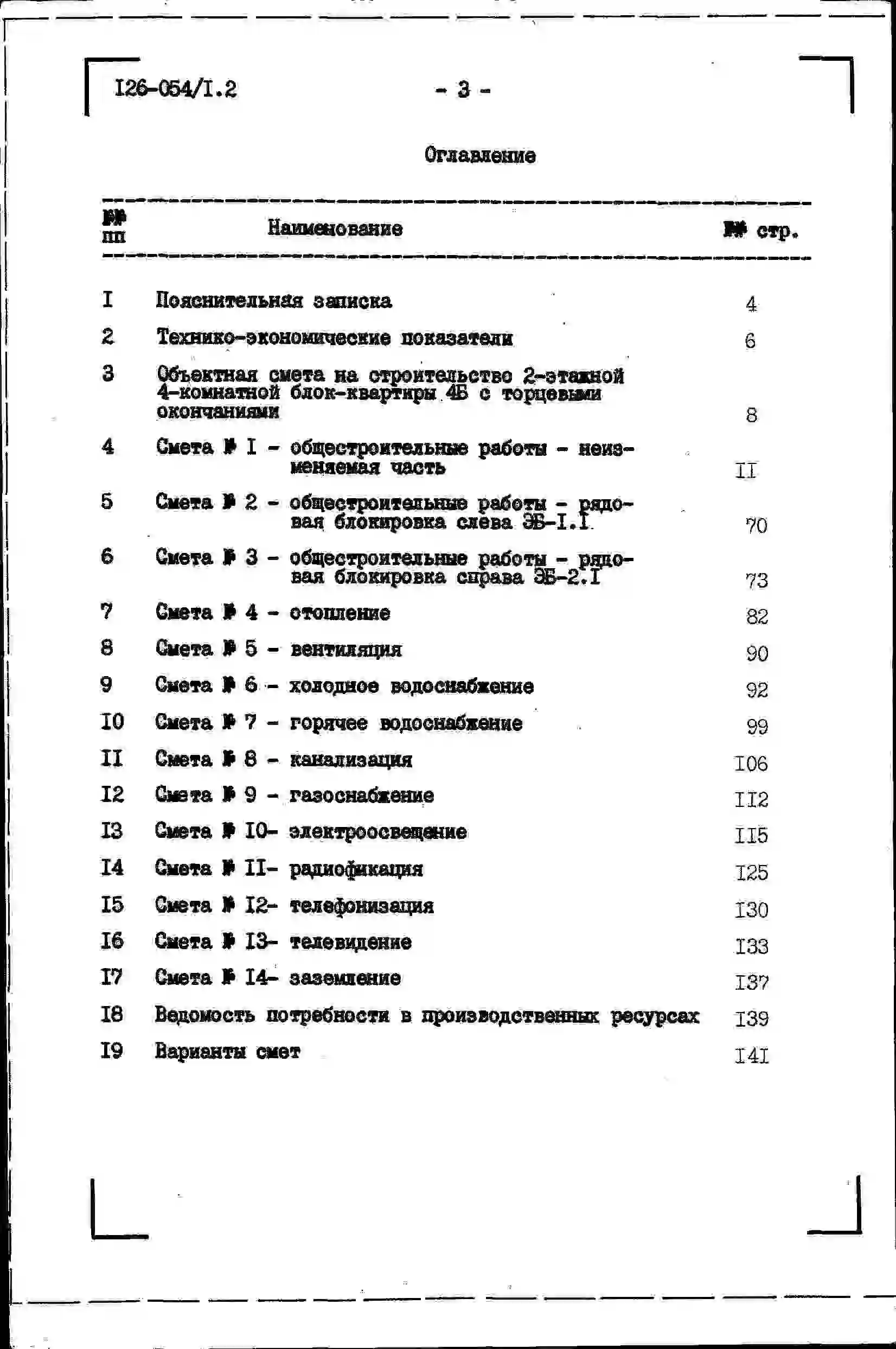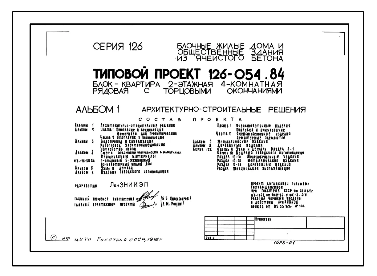 Типовой проект 126-054.84 Двухэтажная блок-квартира рядовая с торцевыми окончаниями четырехкомнатная типа 4Б. Для строительства в сельской местности. Паспорт проекта (формат PDF) Чертежи (формат TIF)
