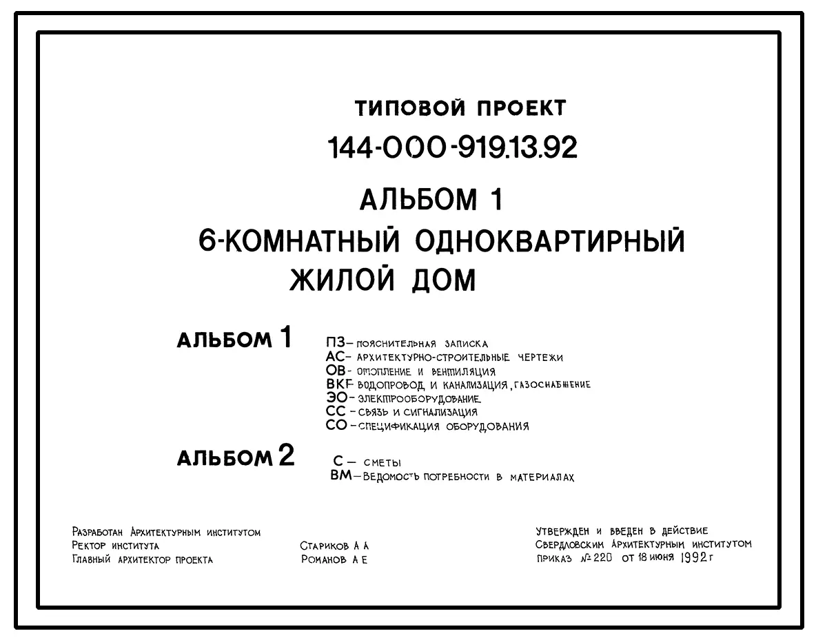 Типовой проект 144-000-919.13.92 6-комнатный одноквартирный жилой дом