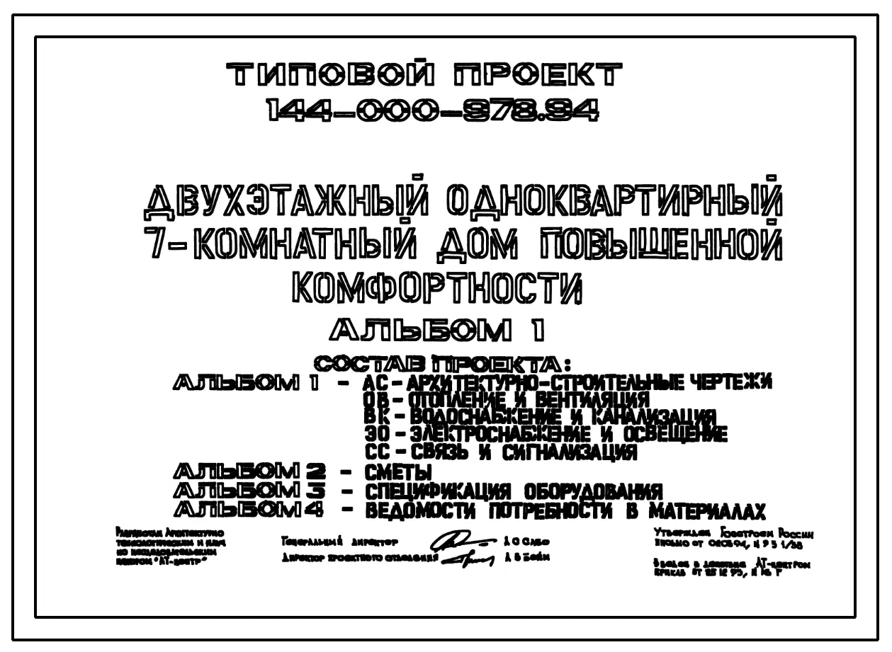 Типовой проект 144-000-978.94 Двухэтажный одноквартирный 7-комнатный дом повышенной комфортности. Чертежи (формат TIF)