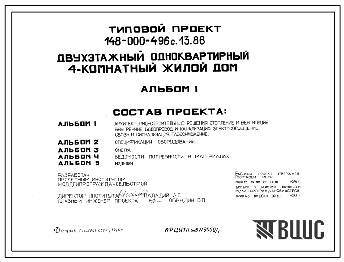 Типовой проект 148-000-496с.13.86 Двухэтажный одноквартирный жилой дом усадебного типа с квартирой в двух уровнях для индивидуальных застройщиков в Молдавской ССР. Паспорт проекта (формат PDF)