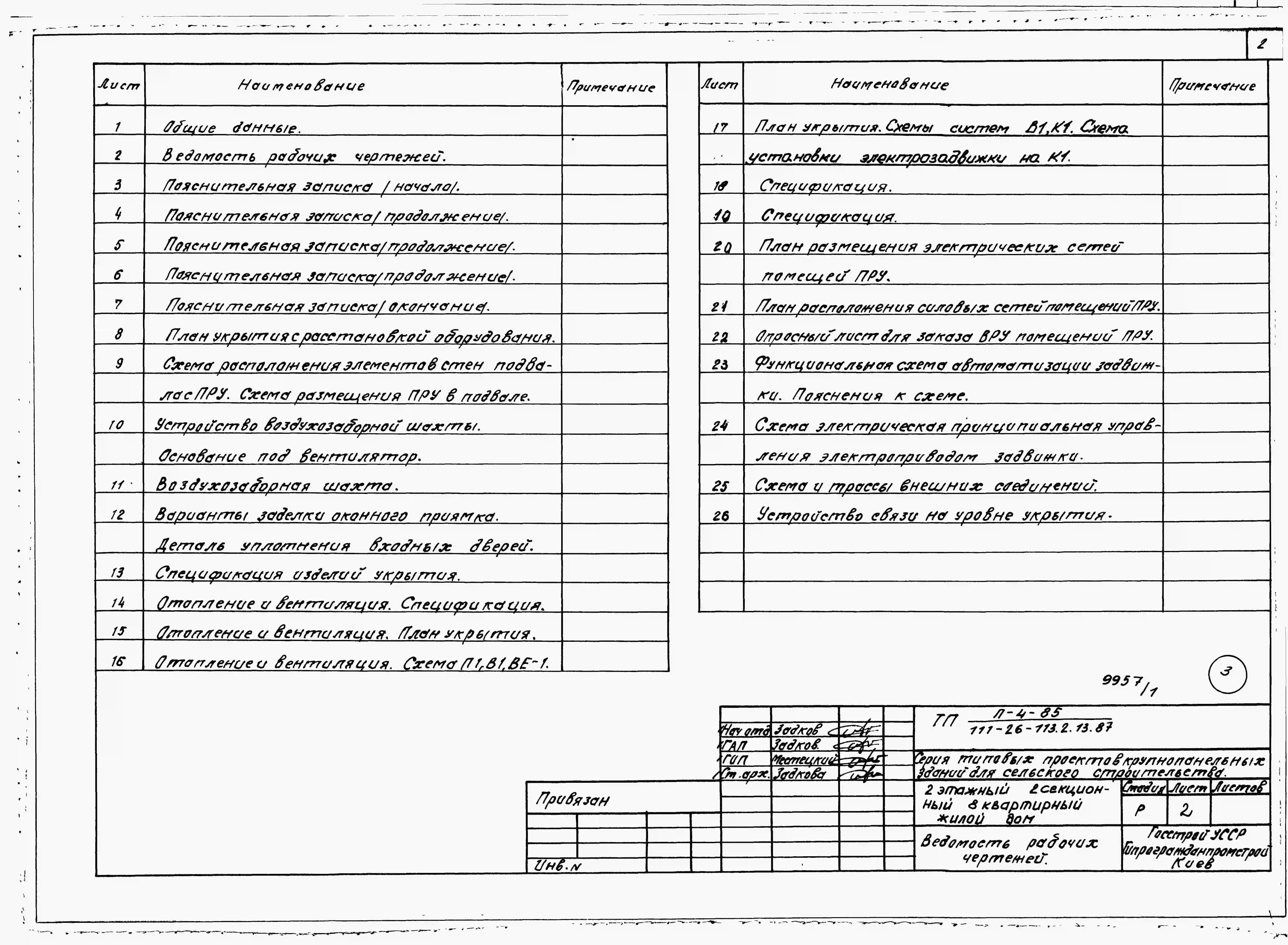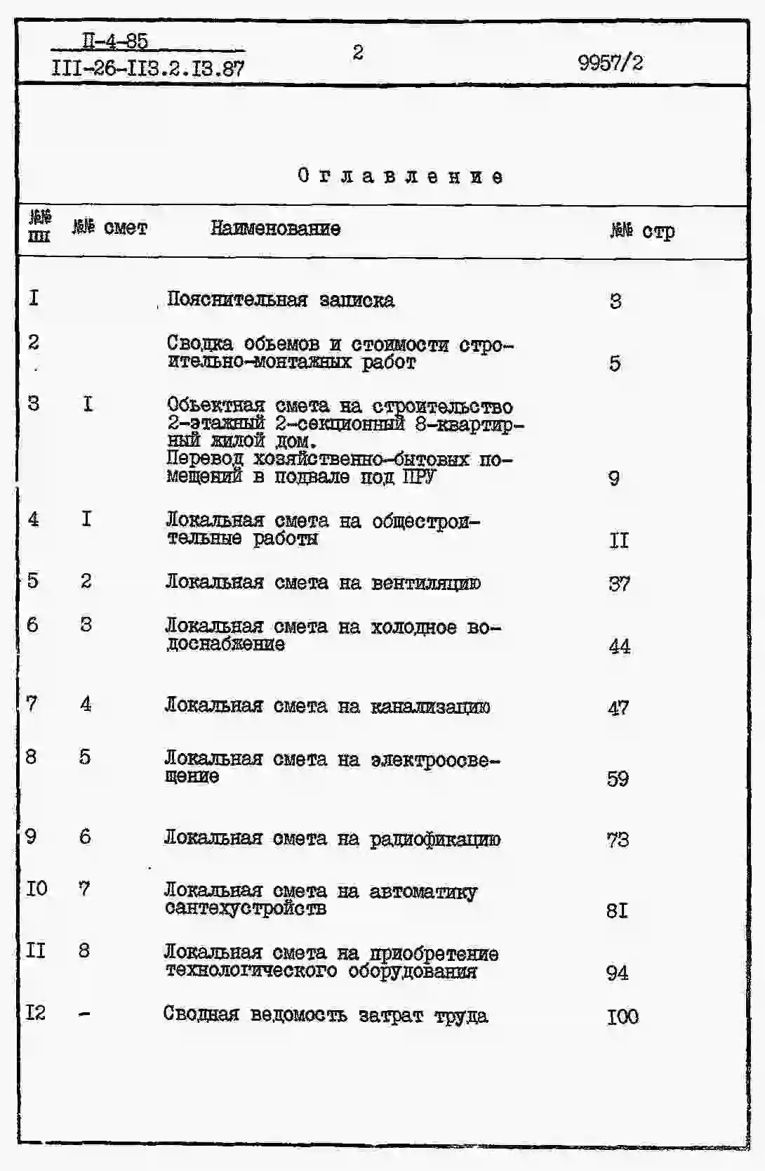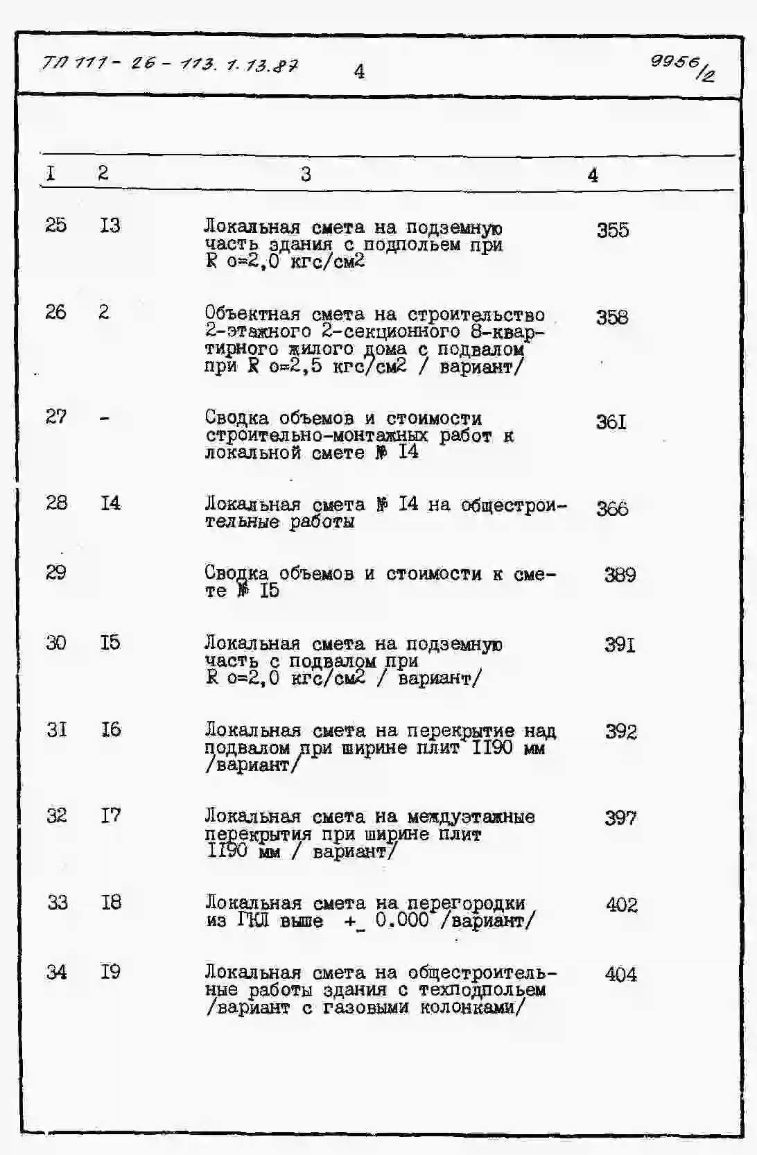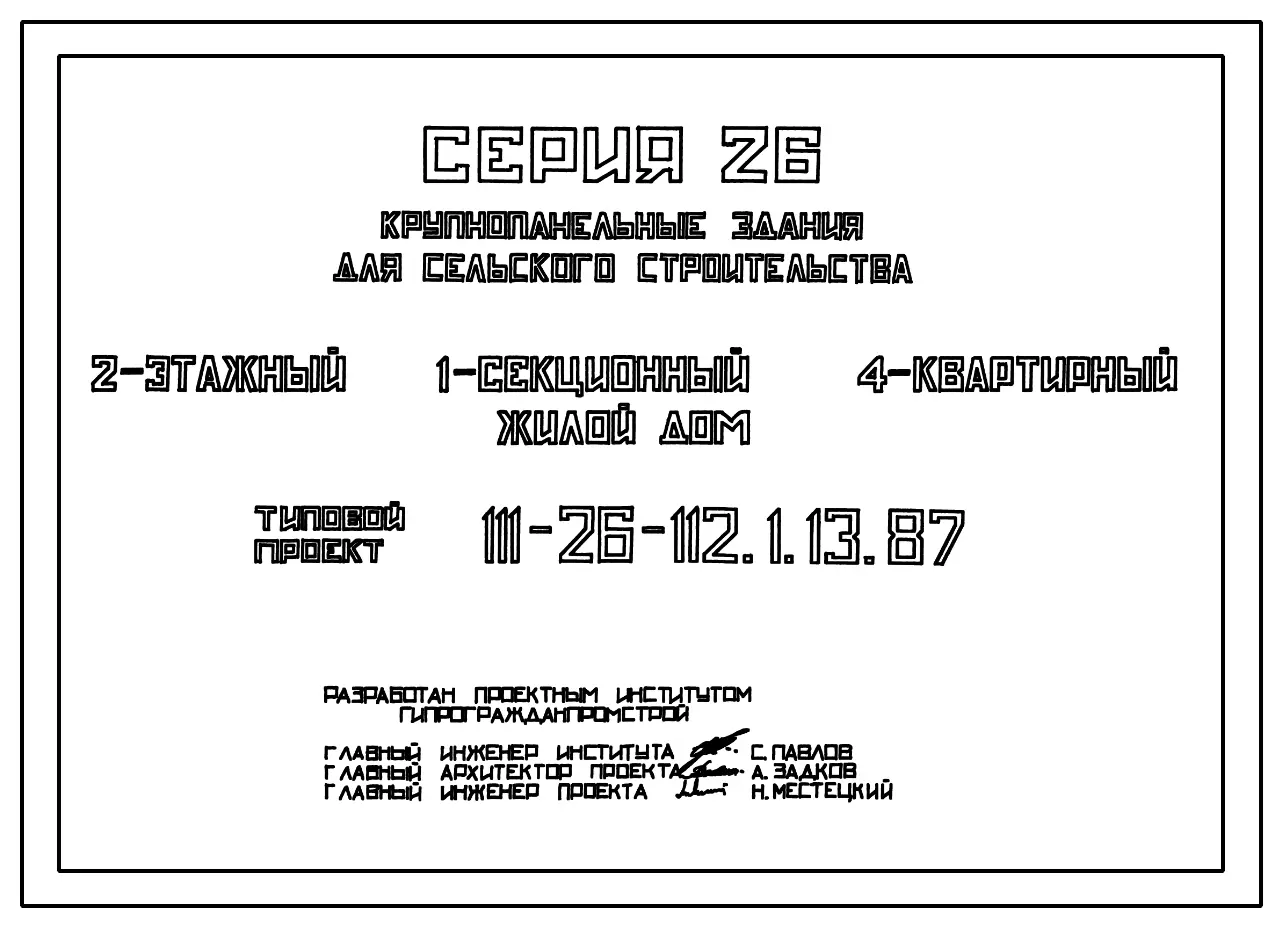 Типовой проект 111-26-113.1.13.87 2-этажный 2-секционный 8-квартирный жилой дом /для строительства в УССР/. Паспорт проекта (формат PDF) Чертежи (формат TIF)