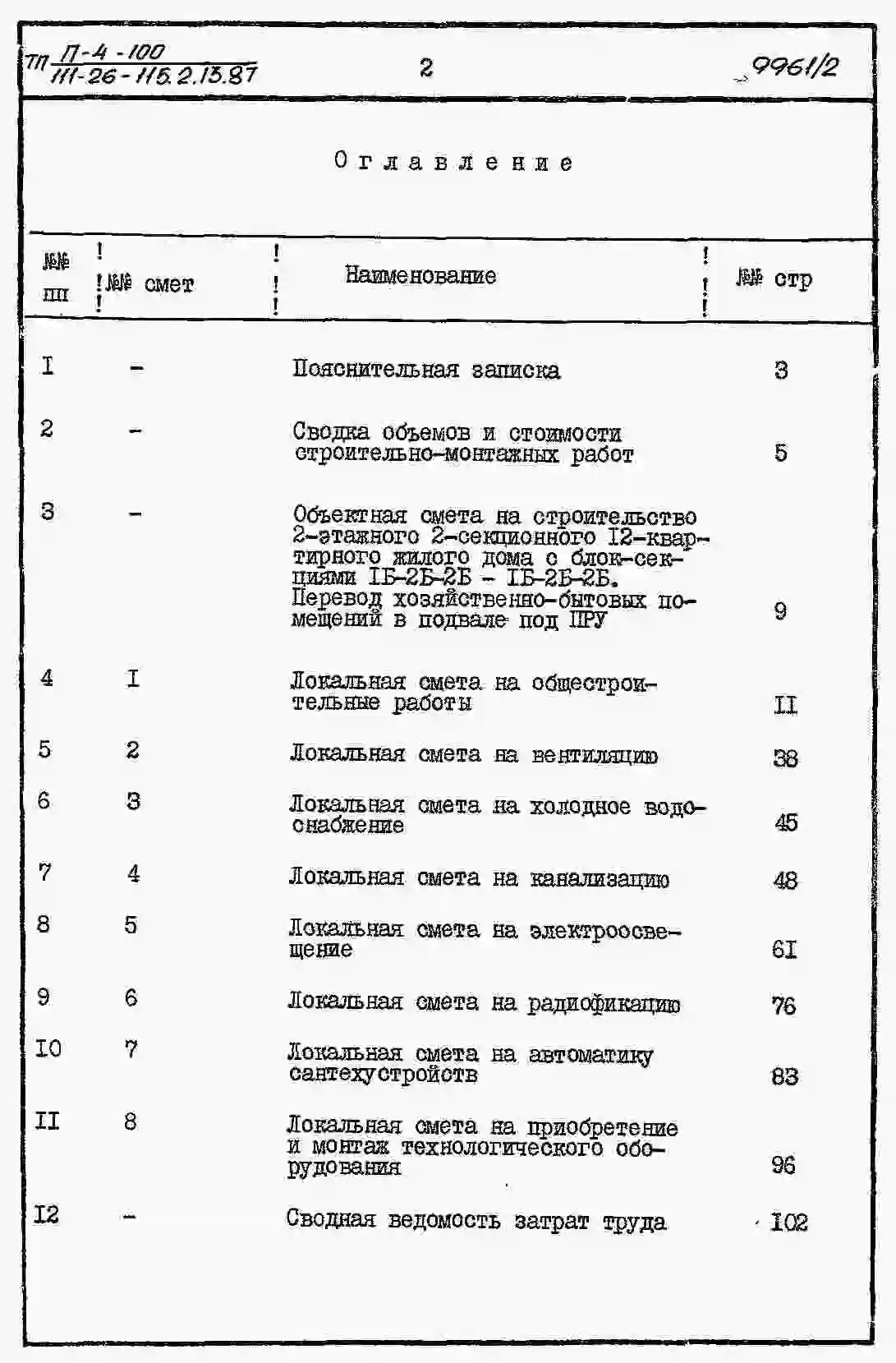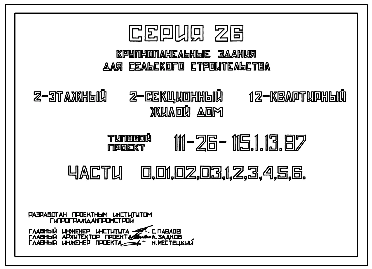 Типовой проект 111-26-115.1.13.87 2-этажный 2-секционный 12-квартирный жилой дом (1-2-2; 1-2-2) /для строительства в УССР/. Паспорт проекта (формат PDF) Чертежи (формат TIF)