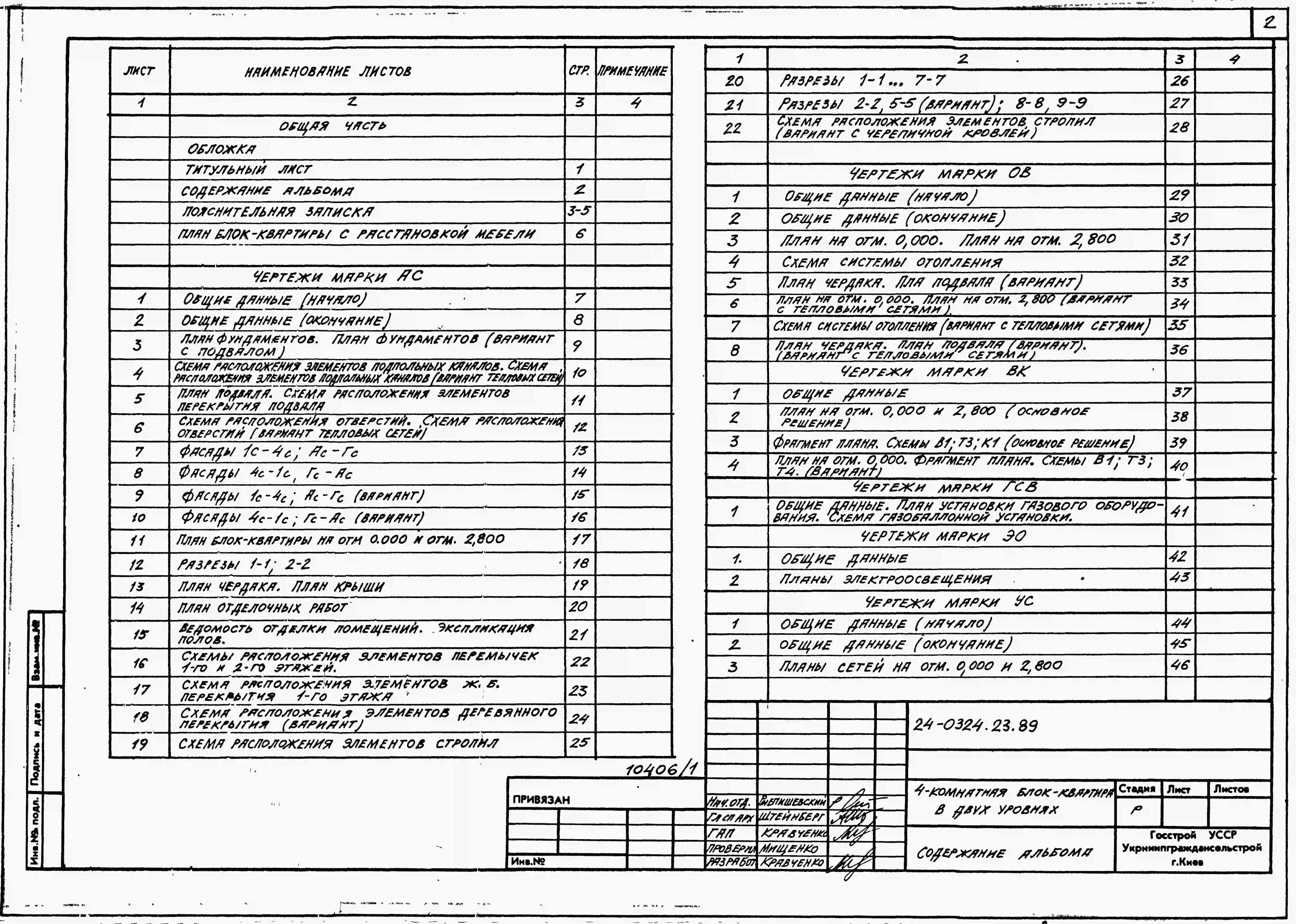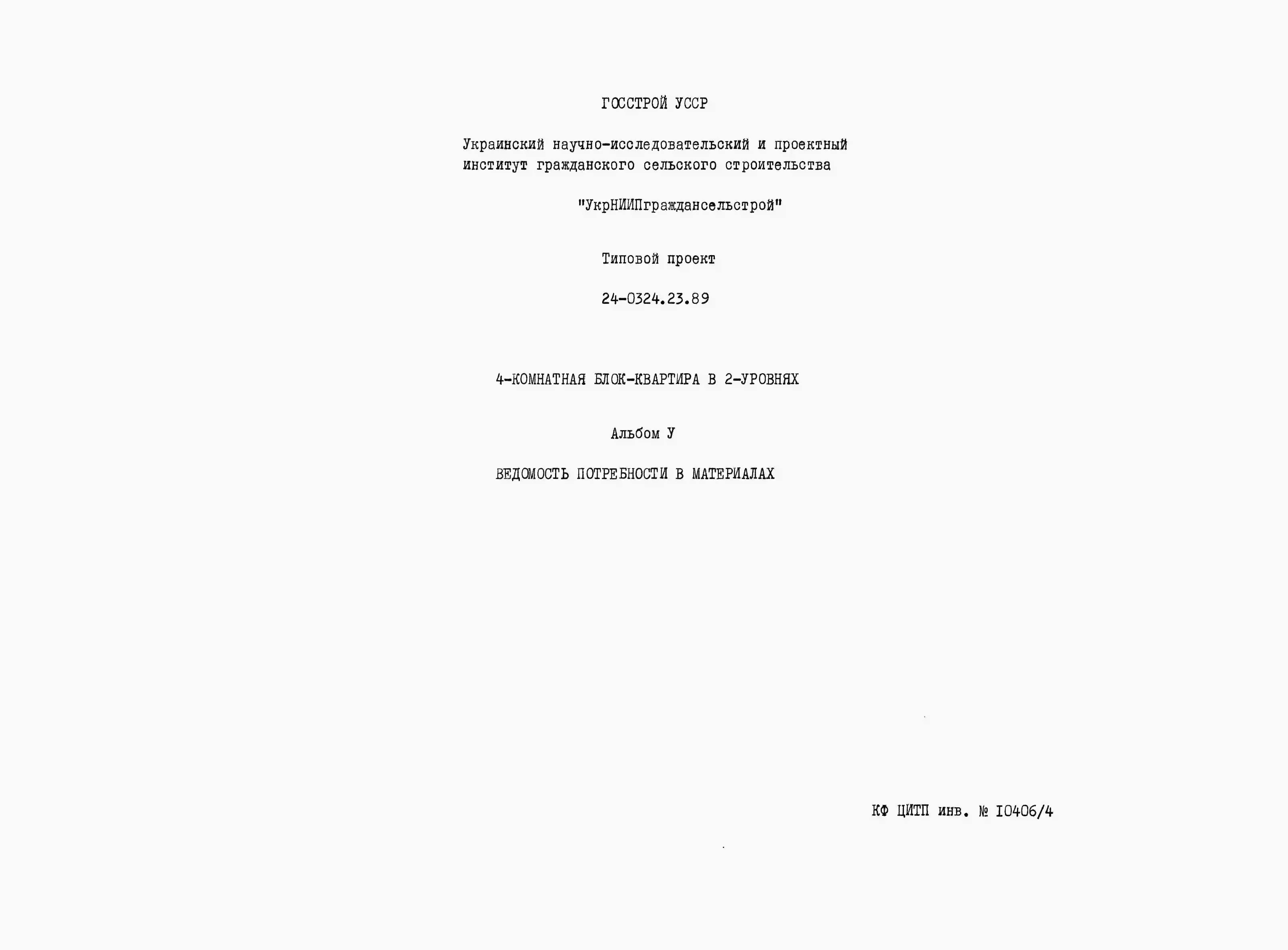 Типовой проект 24-0324.23.89 4-комнатная блок-квартира в двух уровнях (для строительства в Украинской ССР). Паспорт проекта (формат PDF) Чертежи (формат TIF)