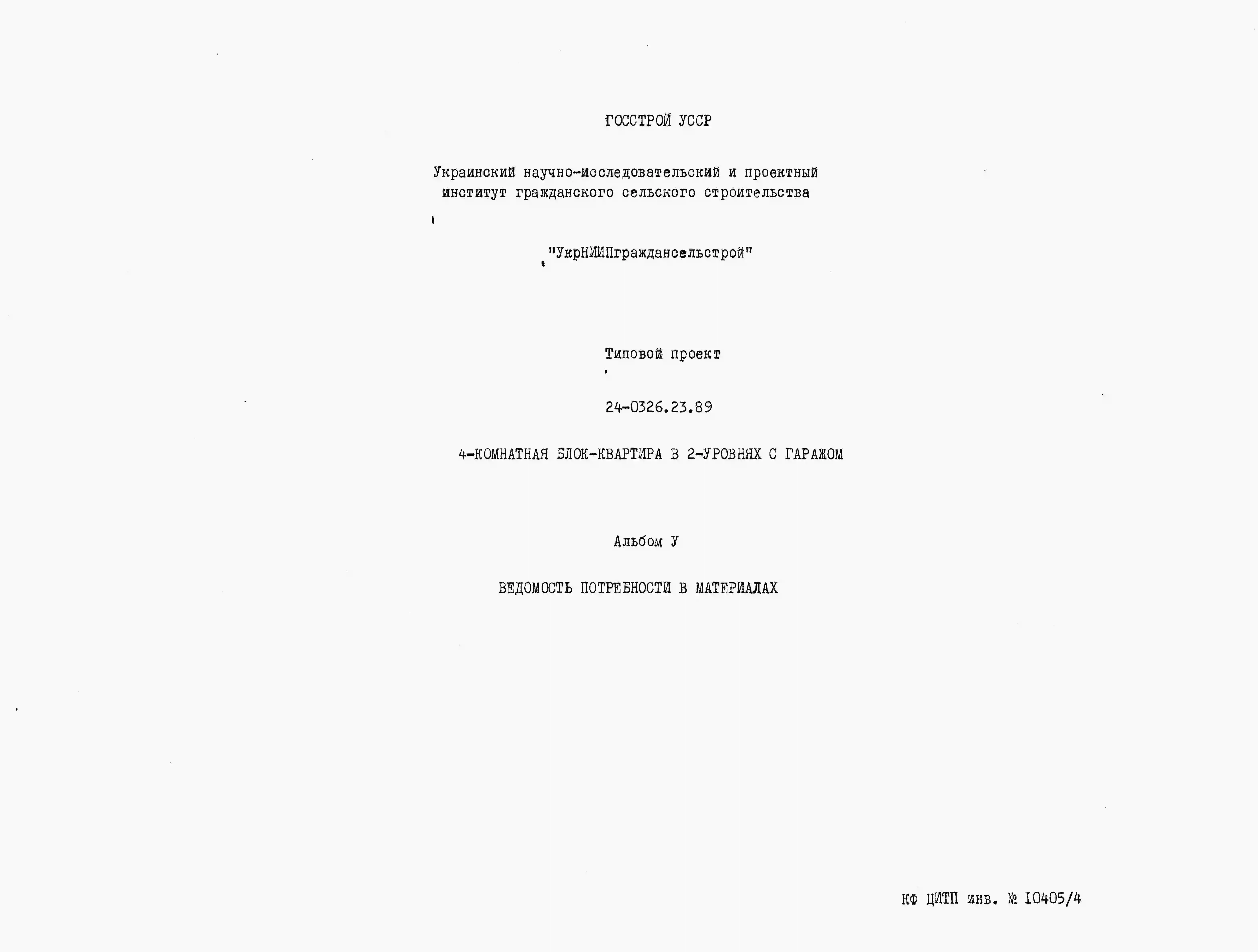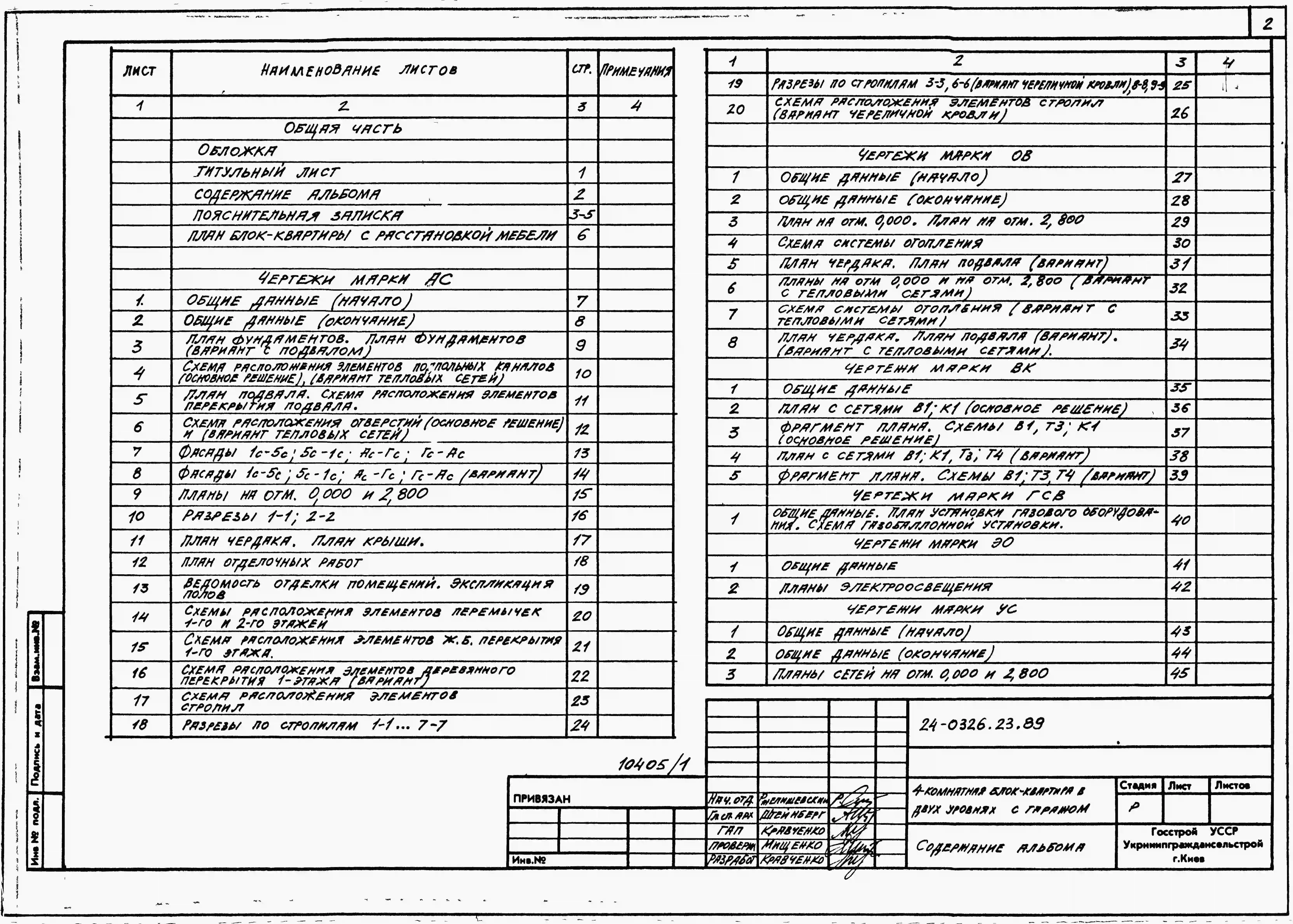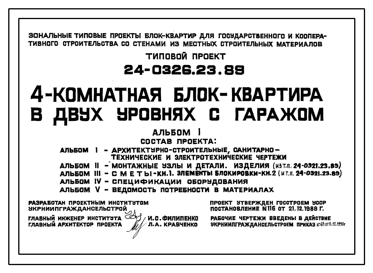 Типовой проект 24-0326.23.89 4-комнатная блок-квартира в двух уровнях с гаражом (для строительства в Украинской ССР). Паспорт проекта (формат PDF) Чертежи (формат TIF)