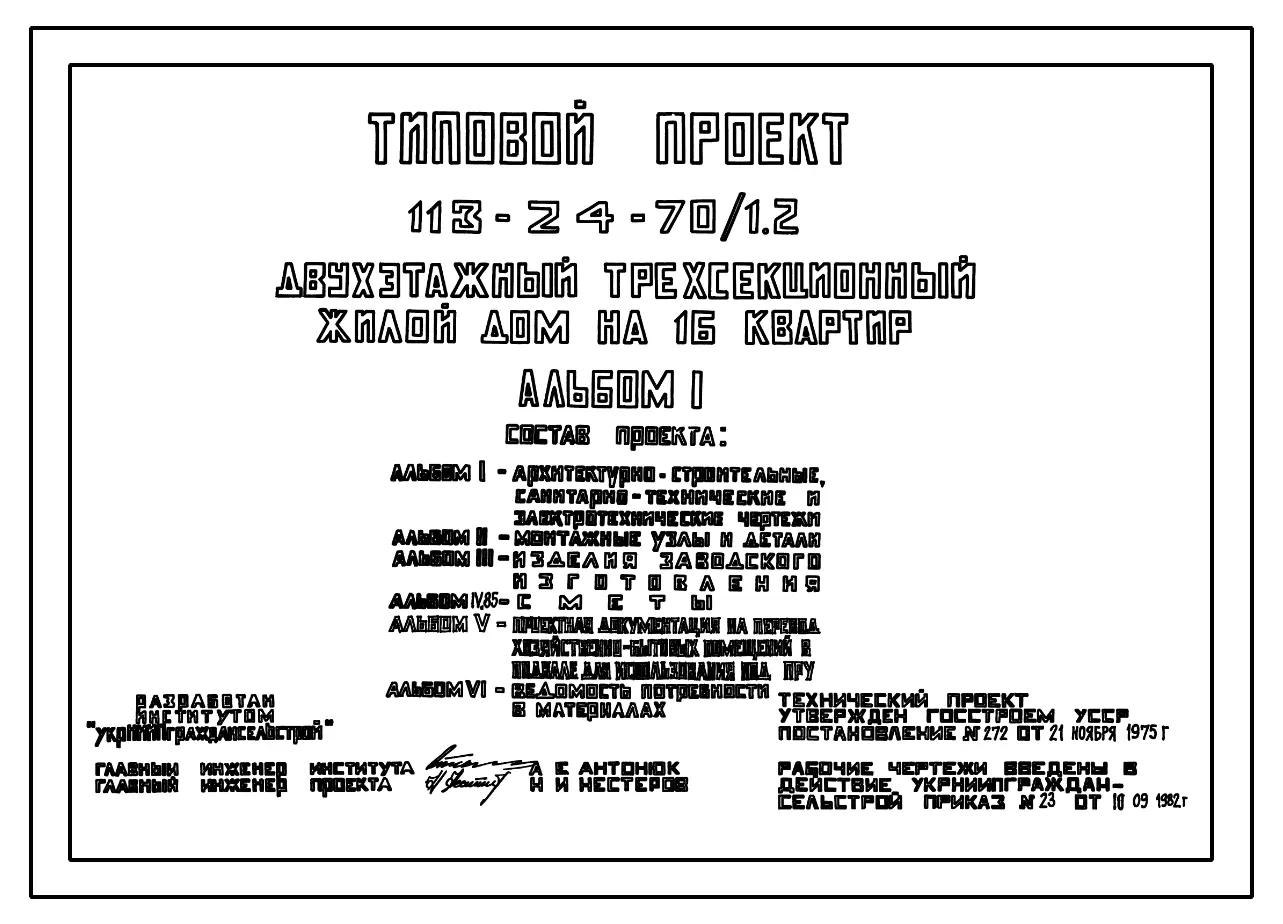 Типовой проект 113-24-70/1.2 Двухэтажный трехсекционный жилой дом на 16 квартир. Паспорт проекта (формат PDF) Чертежи (формат TIF)