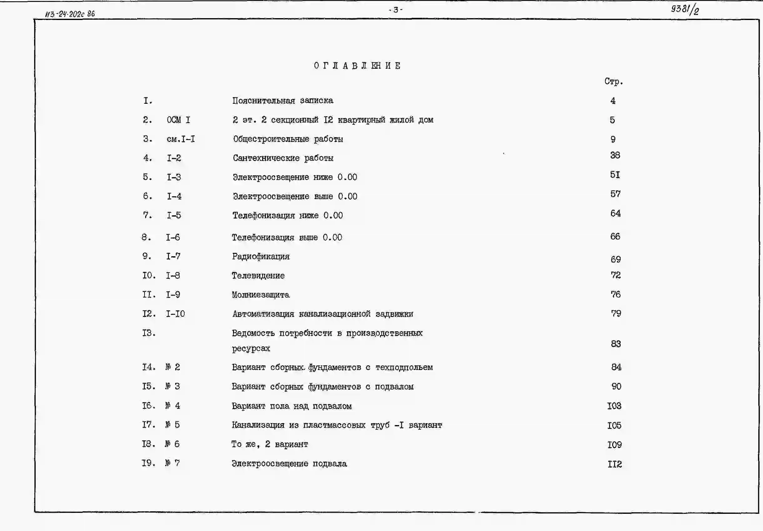 Типовой проект 113-24-202c.86 Двухэтажный двухсекционный жилой дом на 12 квартир. Паспорт проекта (формат PDF) Чертежи (формат TIF)