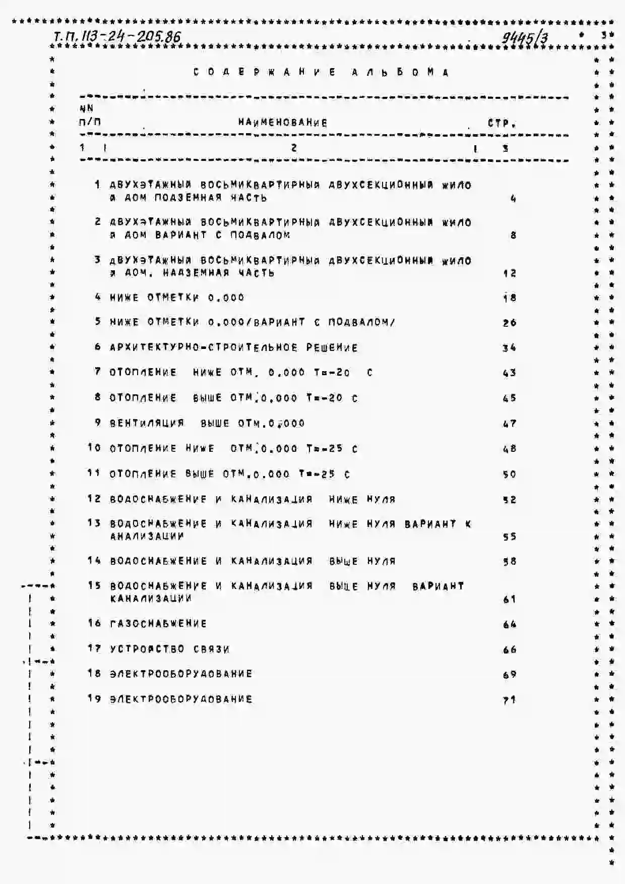 Типовой проект 113-24-205.86 Двухэтажный двухсекционный жилой дом на 8 квартир. Паспорт проекта (формат PDF) Чертежи (формат TIF)
