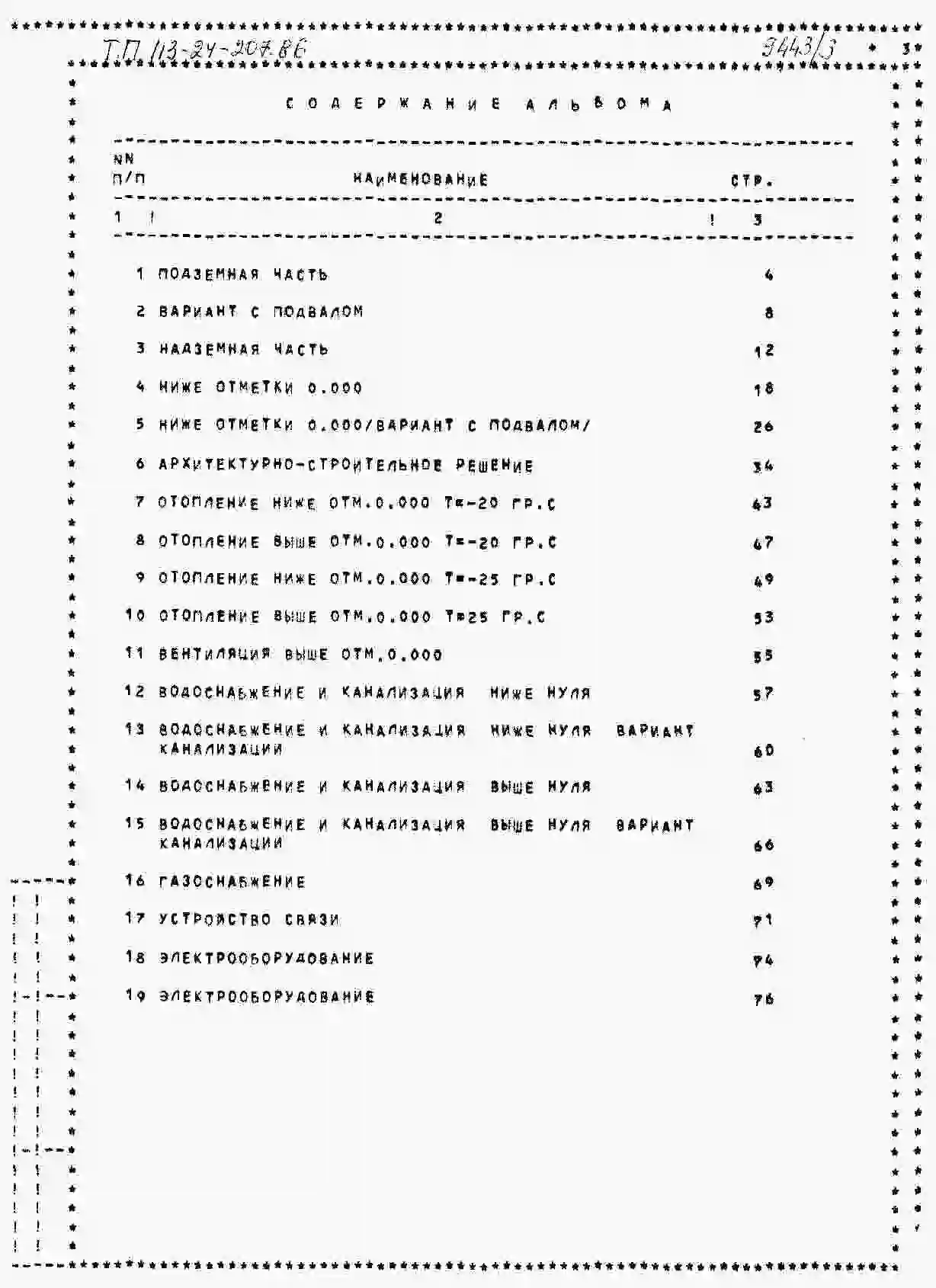 Типовой проект 113-24-207.86 Двухэтажный трехсекционный жилой дом на 16 квартир. Паспорт проекта (формат PDF) Чертежи (формат TIF)