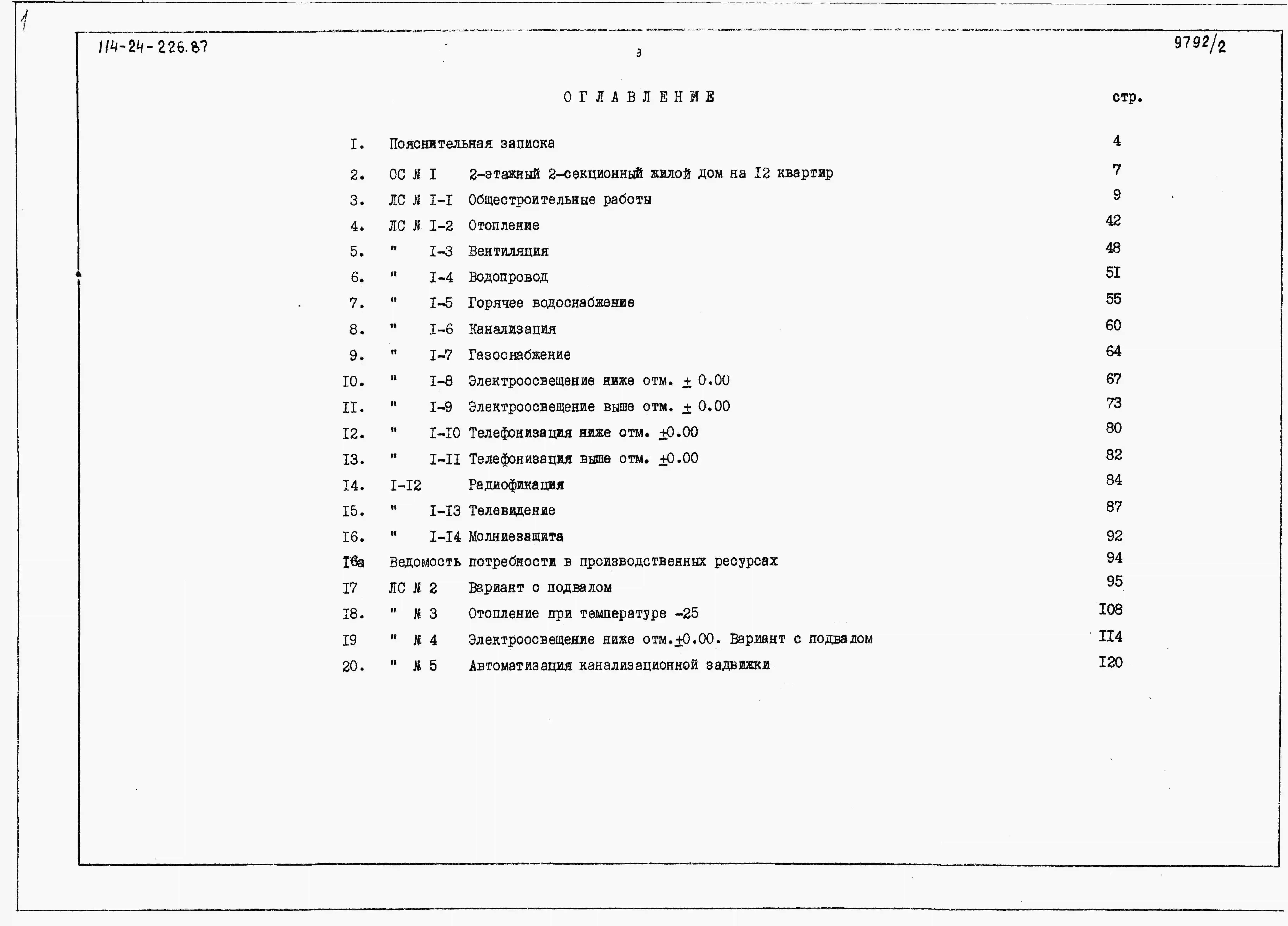 Типовой проект 114-24-226.87 Двухэтажный двухсекционный жилой дом на 12 квартир. Паспорт проекта (формат PDF) Чертежи (формат TIF)