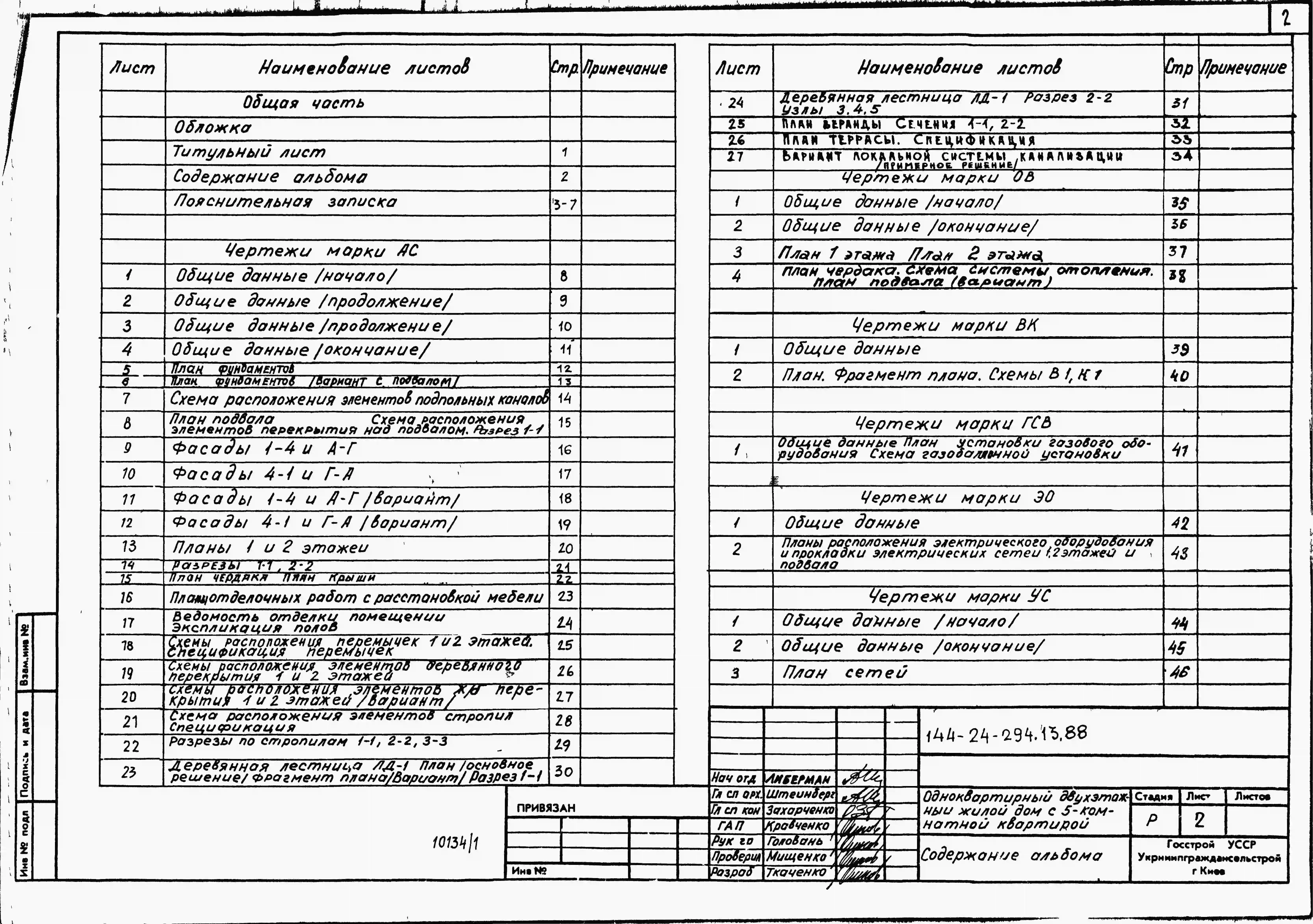 Типовой проект 144-24-294.13.88 Одноквартирный двухэтажный жилой дом с 5-комнатной квартирой (для индивидуальных застройщиков южных районов УССР). Паспорт проекта (формат PDF) Чертежи (формат TIF)