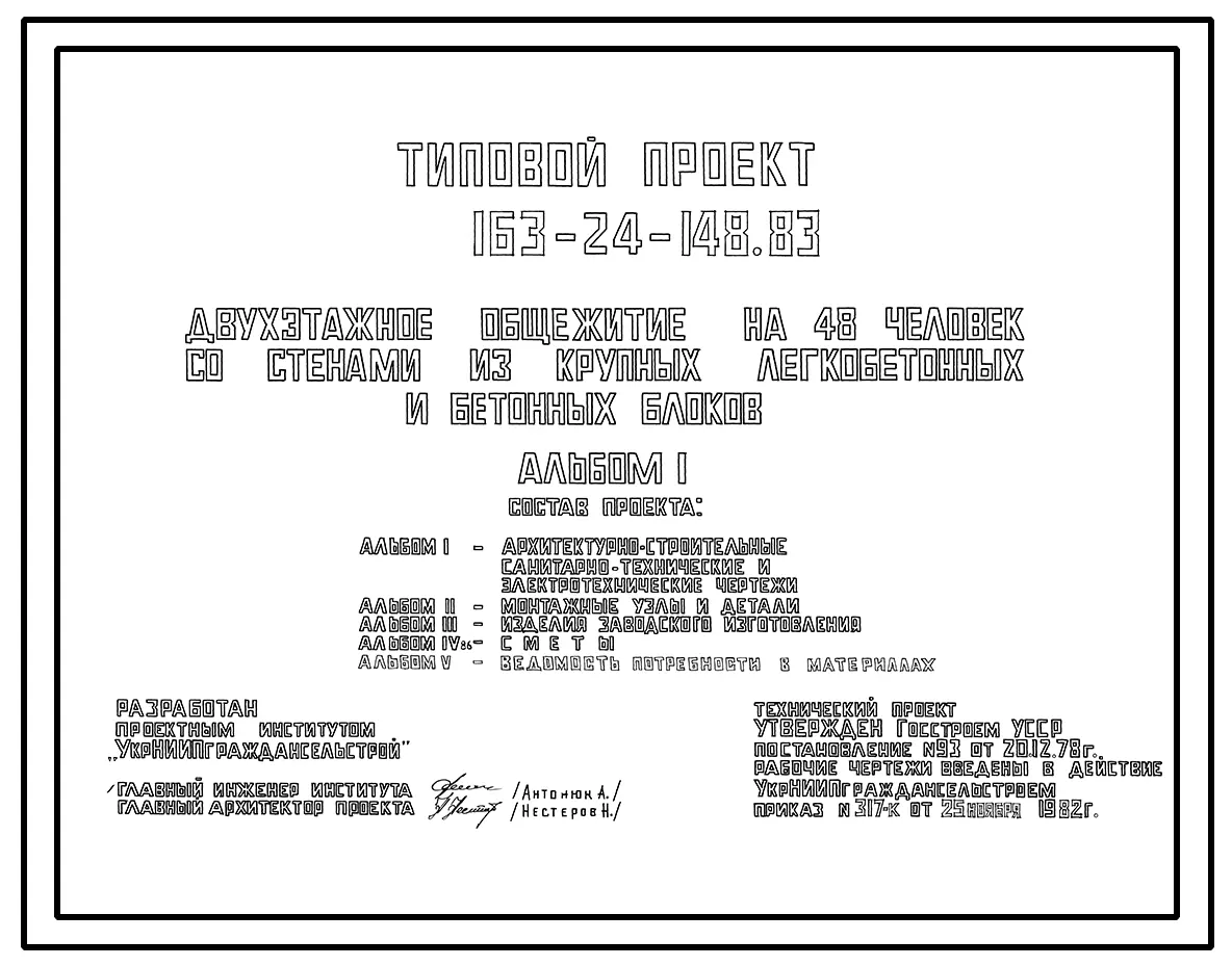 Типовой проект 163-24-148.83 Двухэтажное общежитие на 48 человек. Полный проект.. Паспорт проекта (формат PDF) Чертежи (формат TIF)
