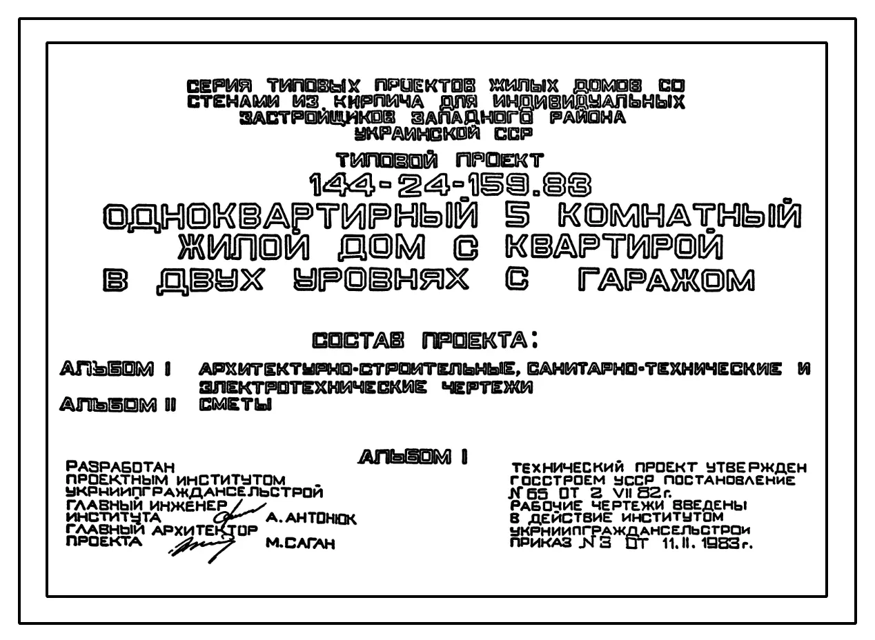 Типовой проект 144-24-159.83 Одноквартирный 5-ти комнатный жтлой дом с квартирой в двух уровнях с гаражом. Чертежи (формат TIF) Паспорт проекта (формат PDF)