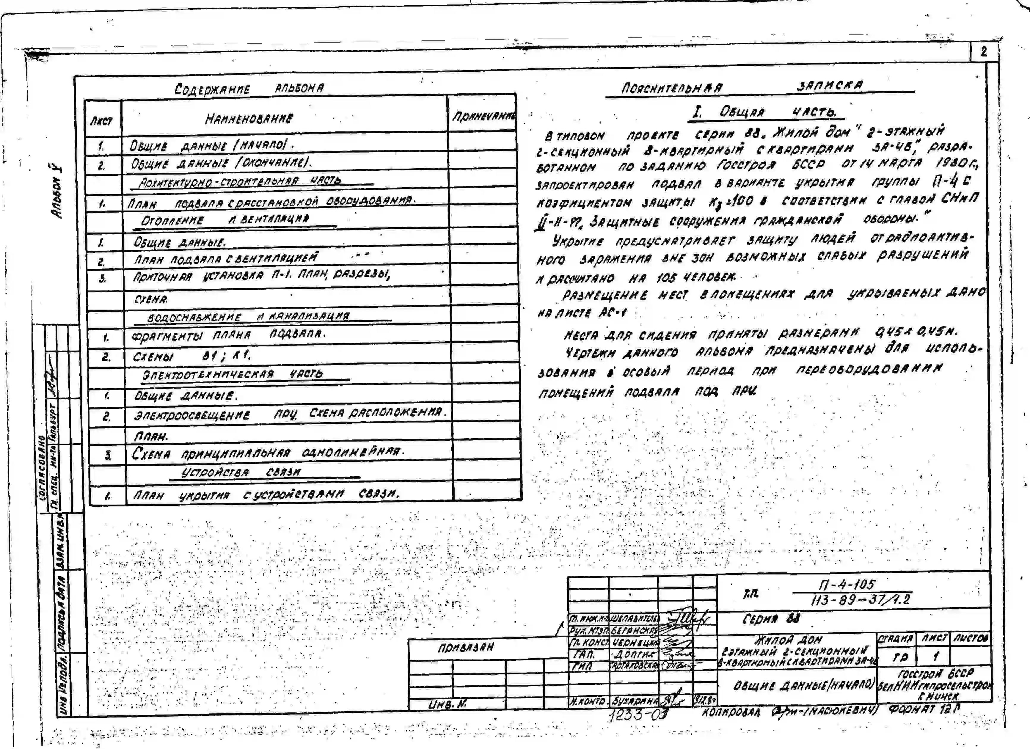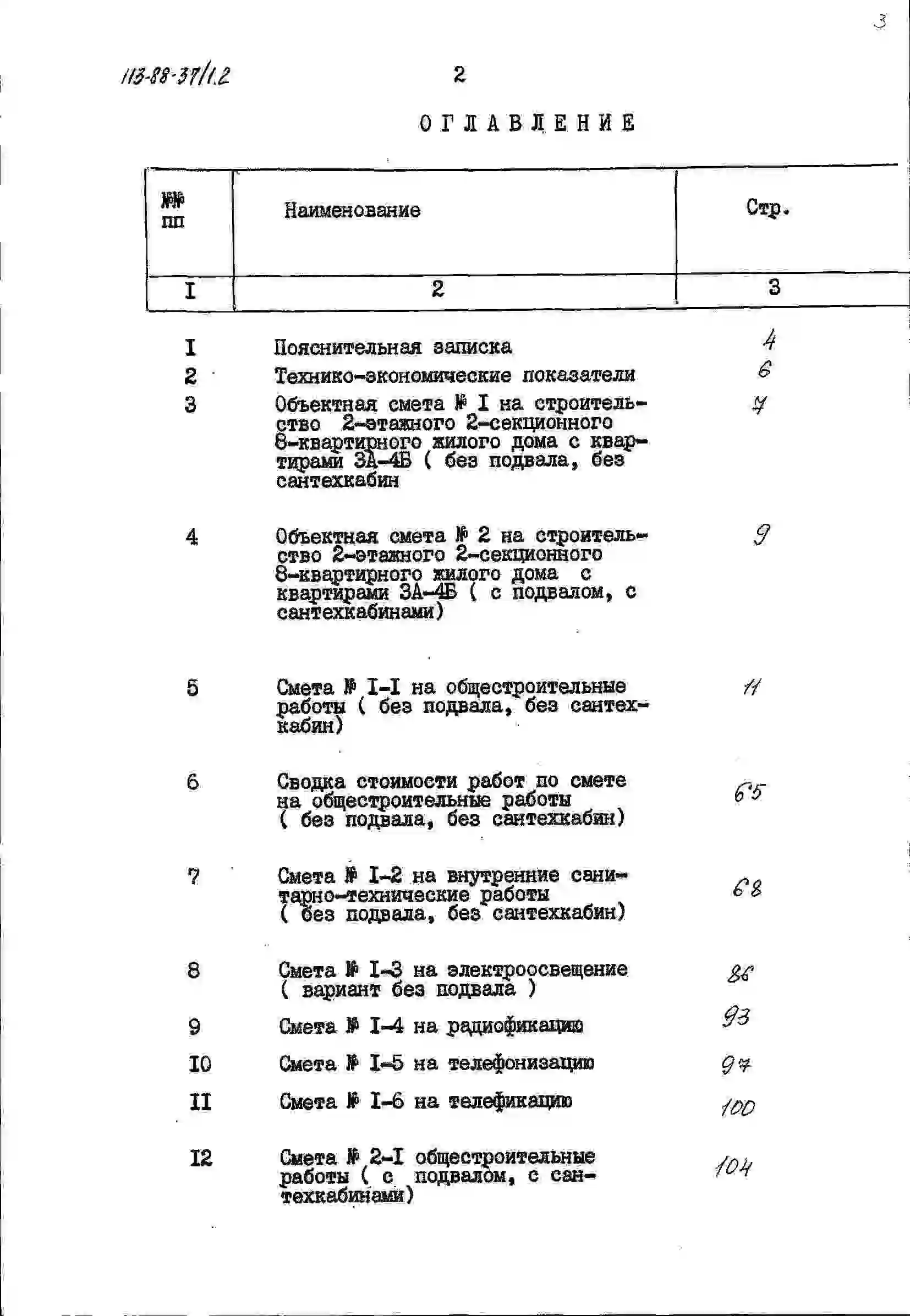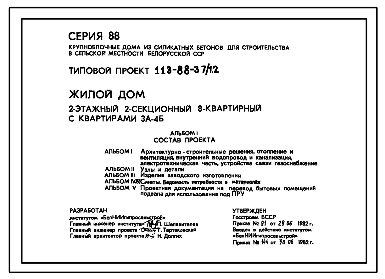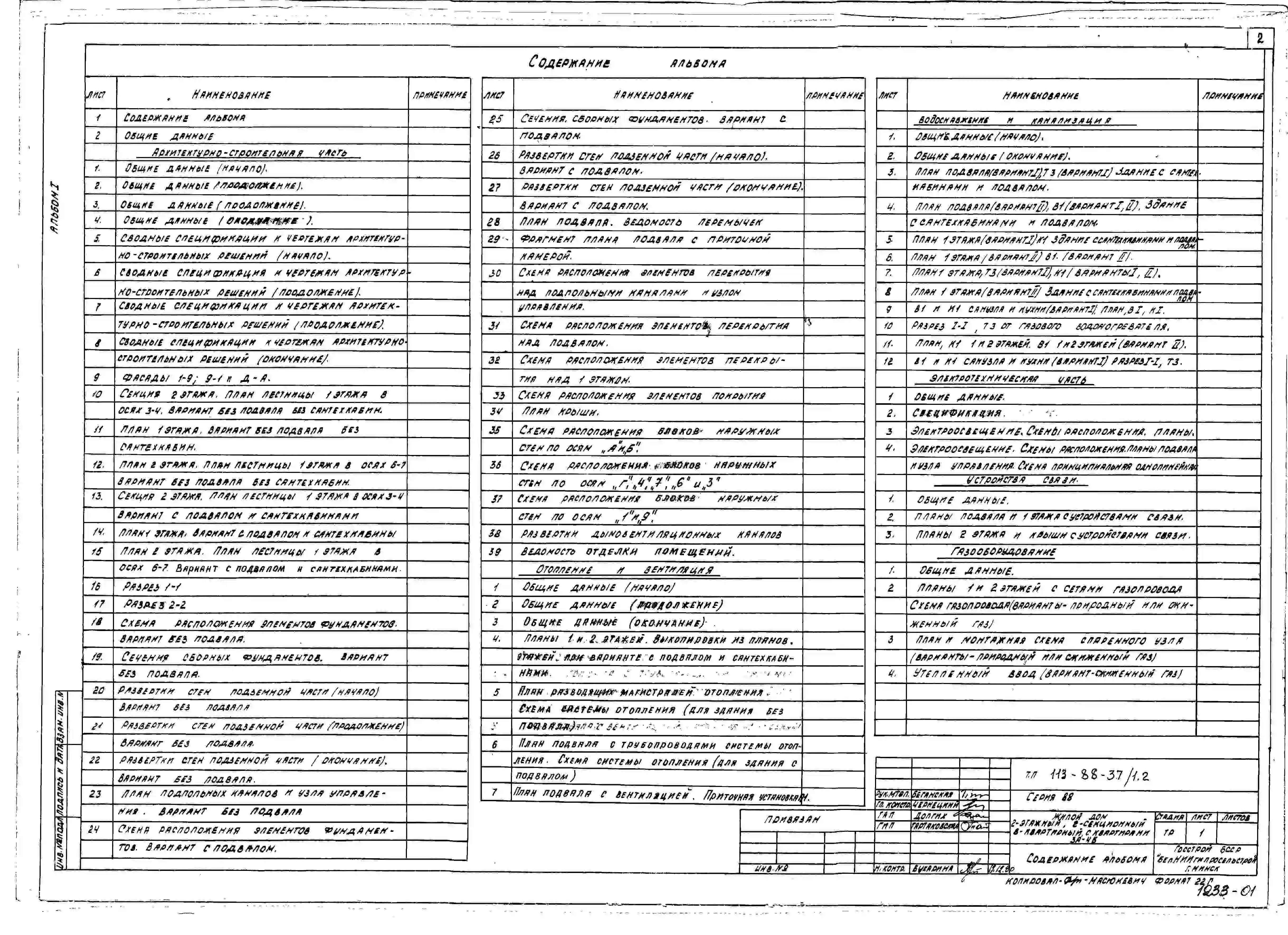 Типовой проект 113-88-37/1.2 Жилой дом двухэтажный двухсекционный восьмиквартирный с квартирами 3А-4Б.. Паспорт проекта (формат PDF) Чертежи (формат TIF)