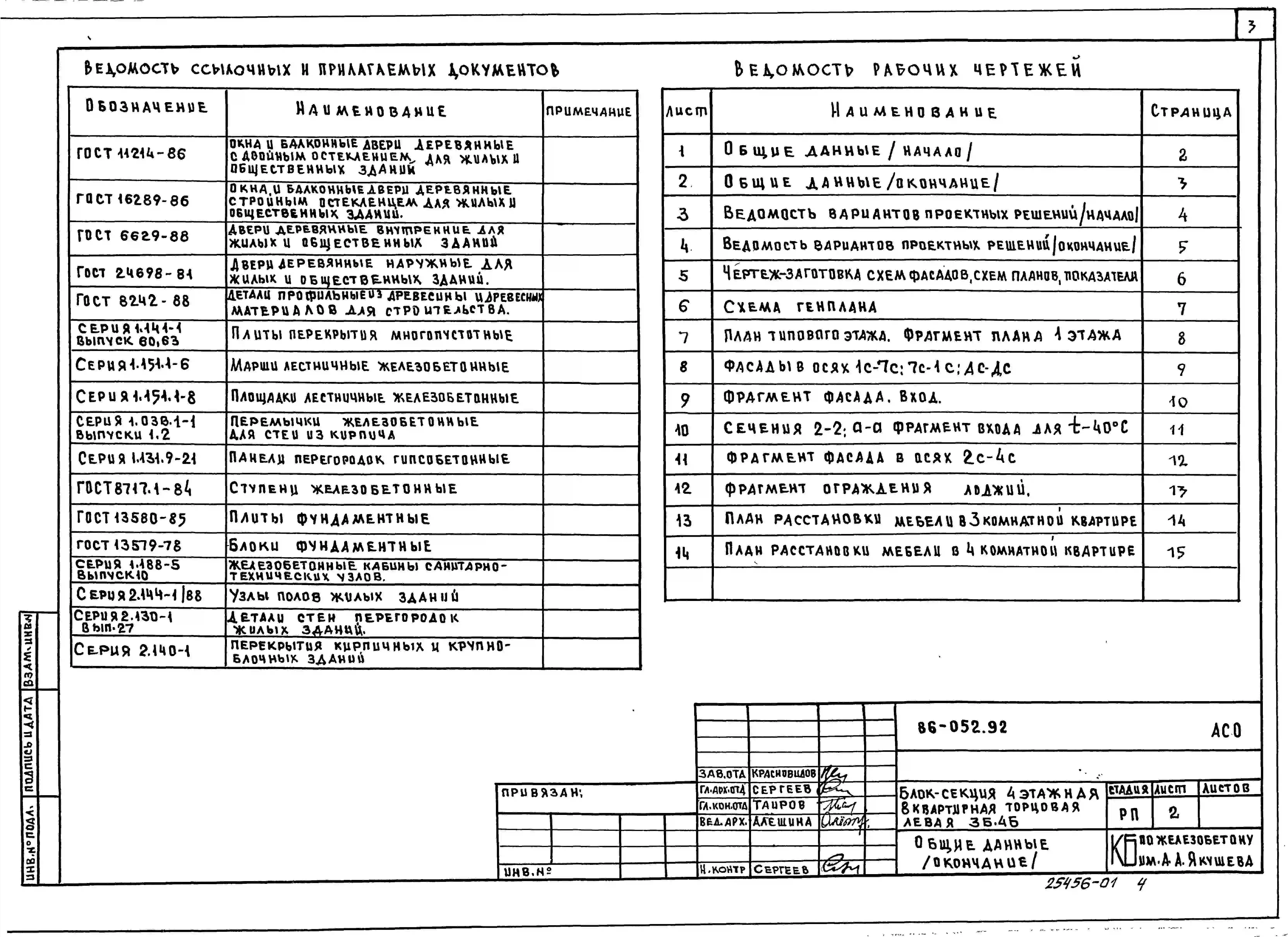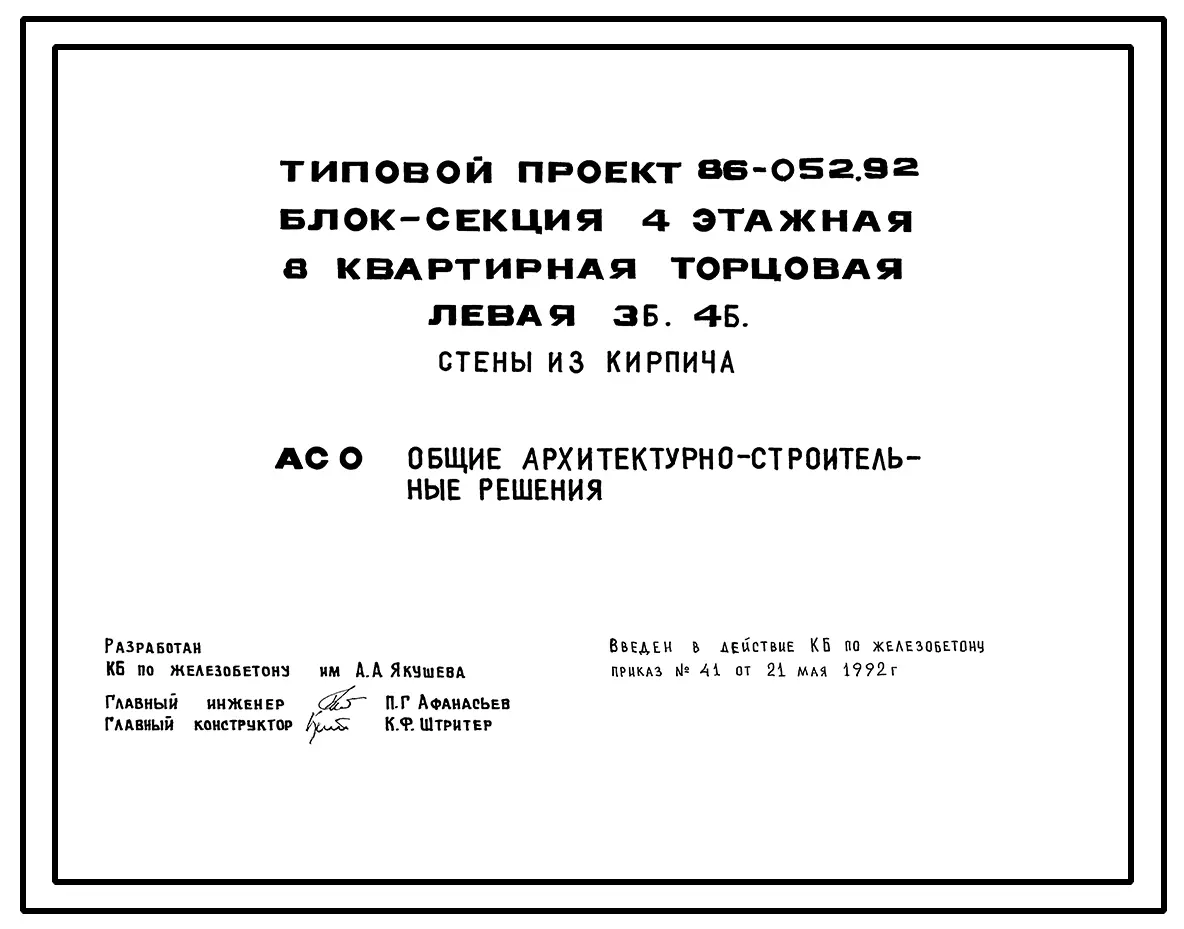Типовой проект 86-052.92 Блок-секция 4-этажная 8-квартирная торцевая левая 3Б.4Б. Стены из кирпича. Паспорт проекта (формат PDF) Чертежи (формат TIF)