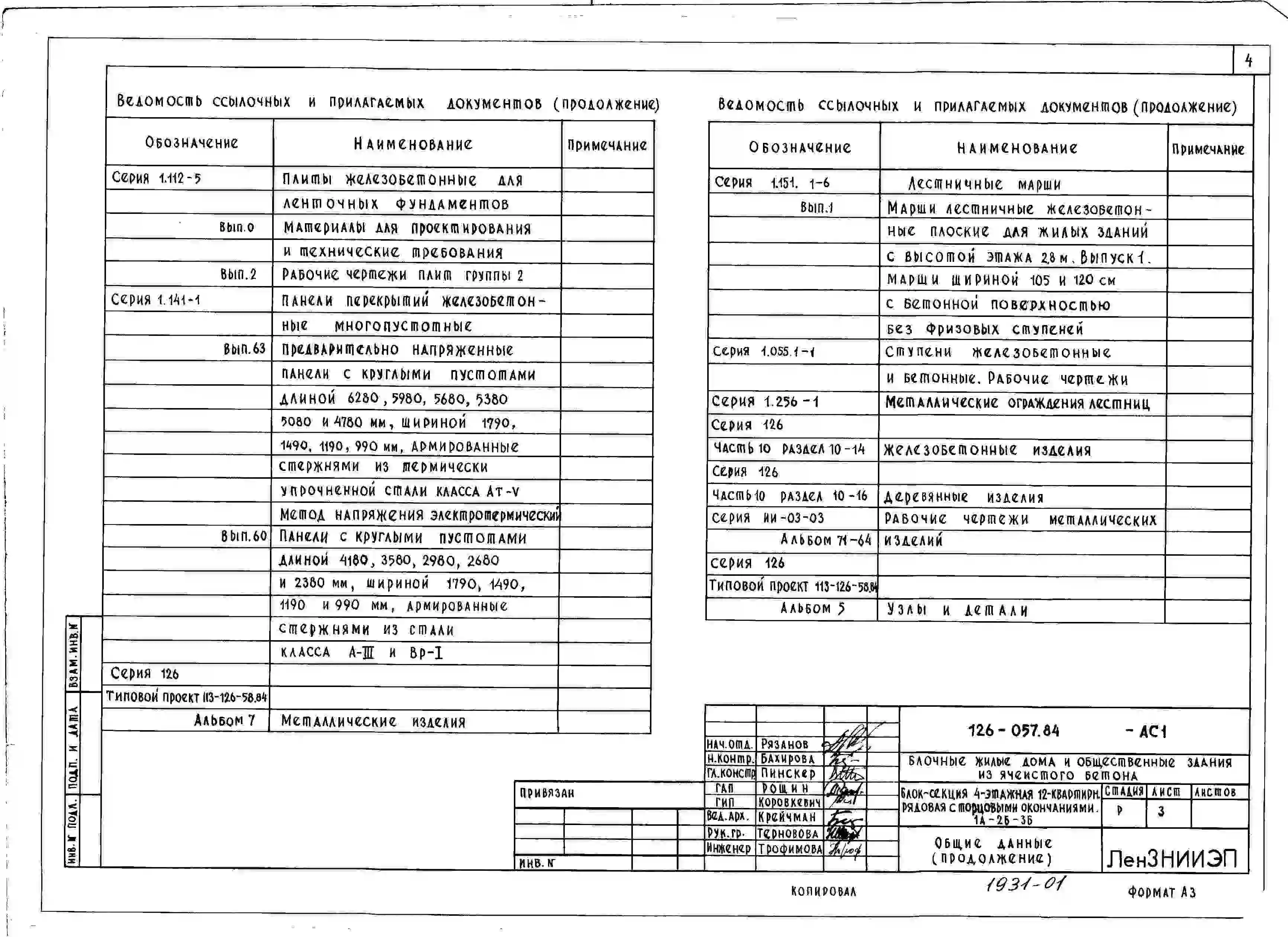 Типовой проект 126-057.84 Четырехэтажная блок-секция рядовая с торцевыми окончаниями на 12 квартир. Для строительства в сельской местности. Паспорт проекта (формат PDF) Чертежи (формат TIF)