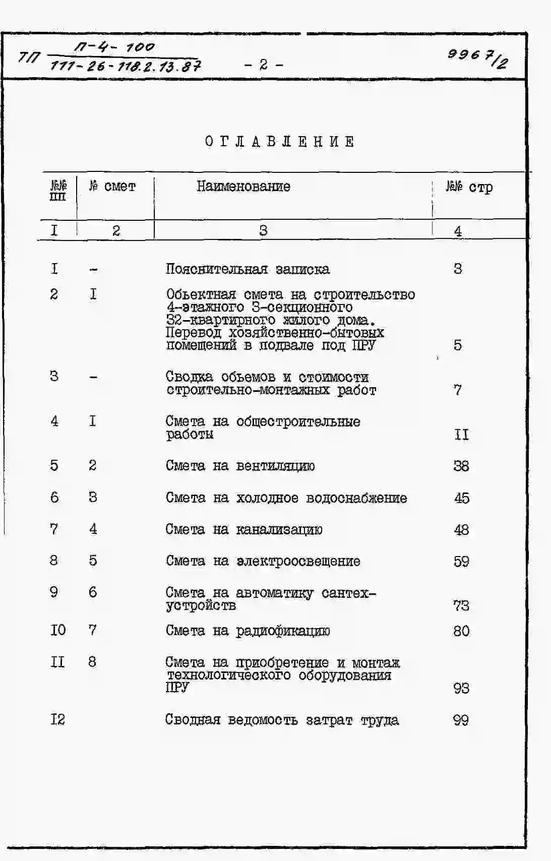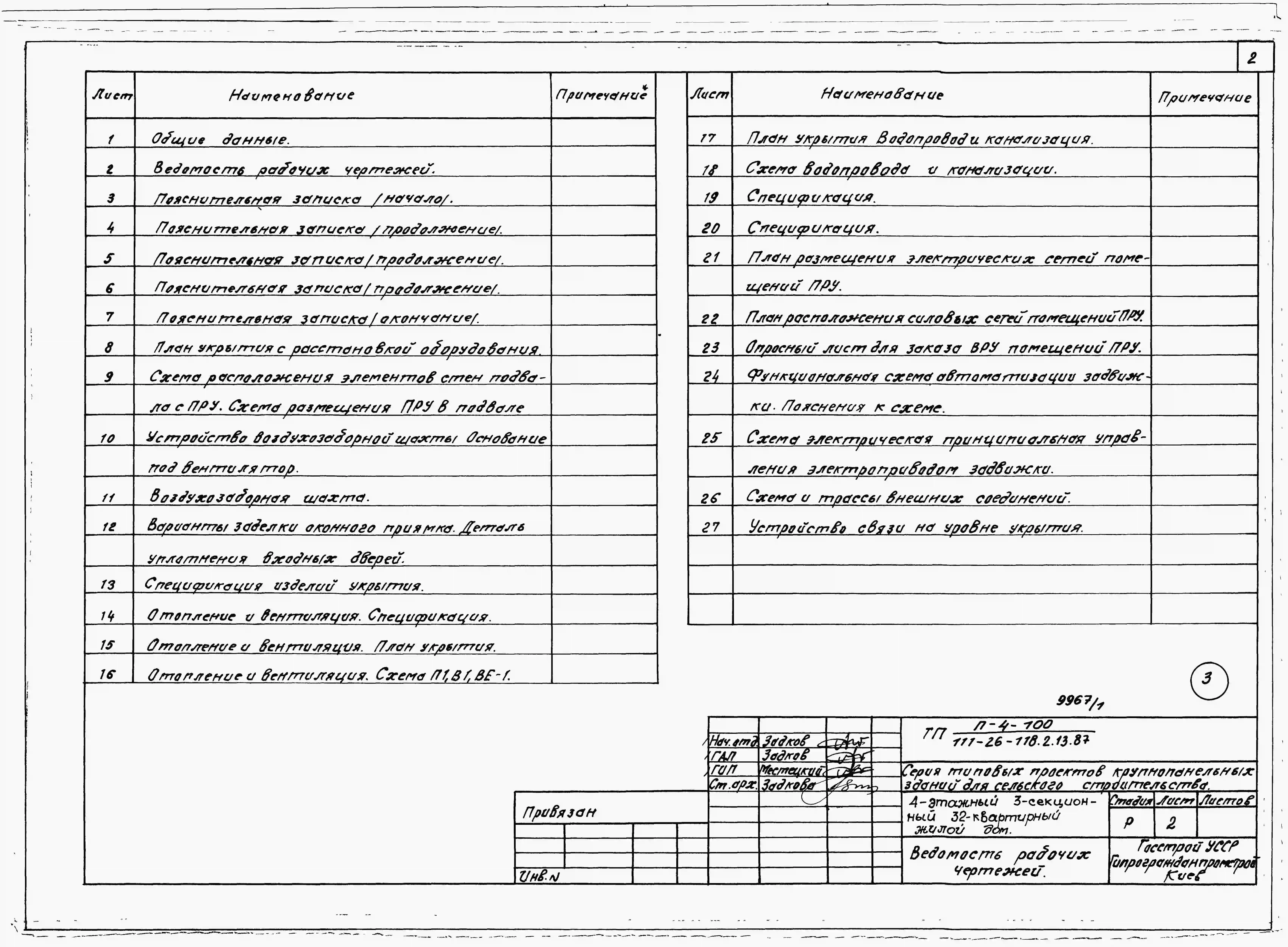 Типовой проект 111-26-118.1.13.87 4-этажный 3-секционный 32-квартирный жилой дом /для строительства в УССР/. Паспорт проекта (формат PDF) Чертежи (формат TIF)