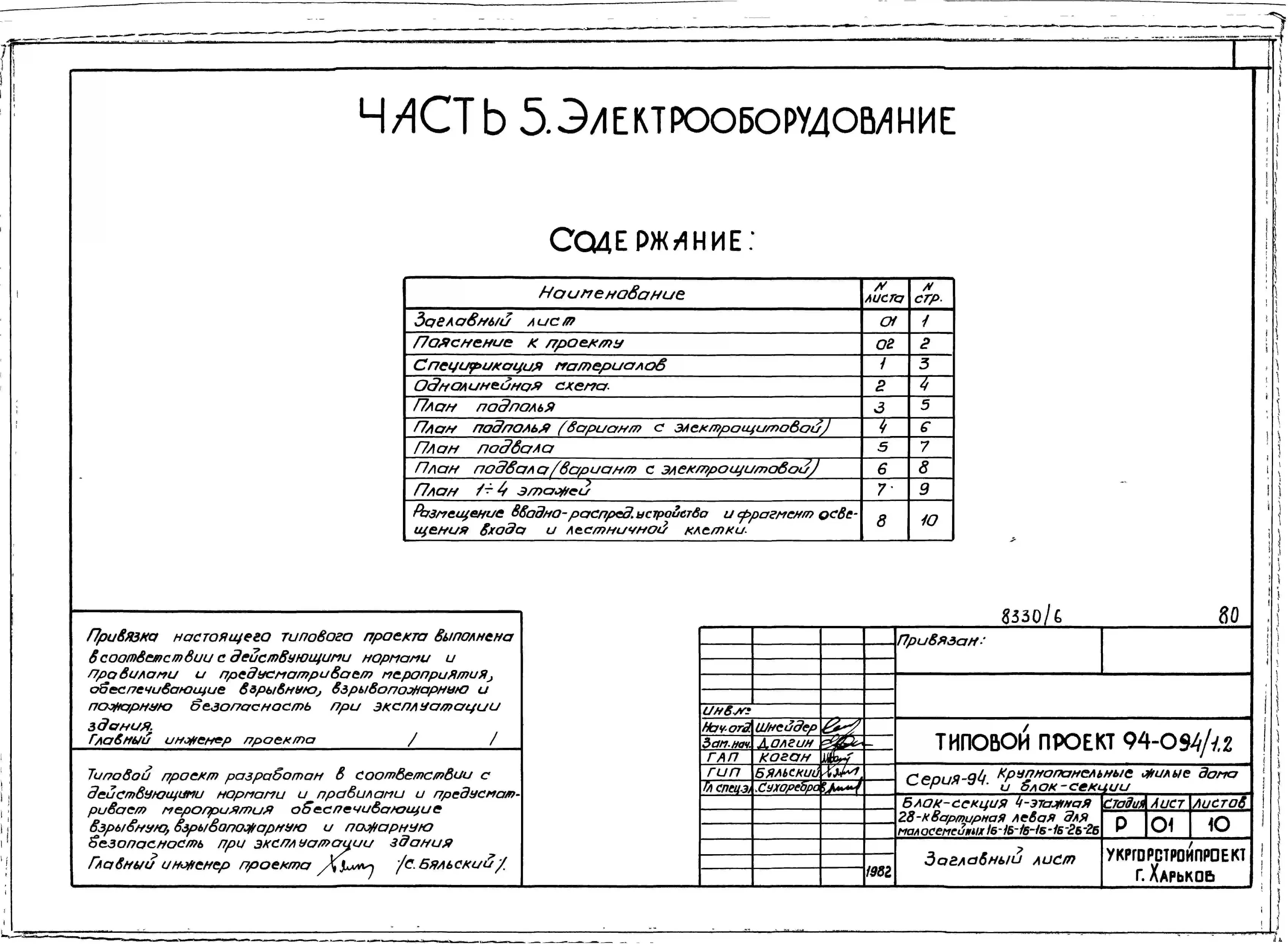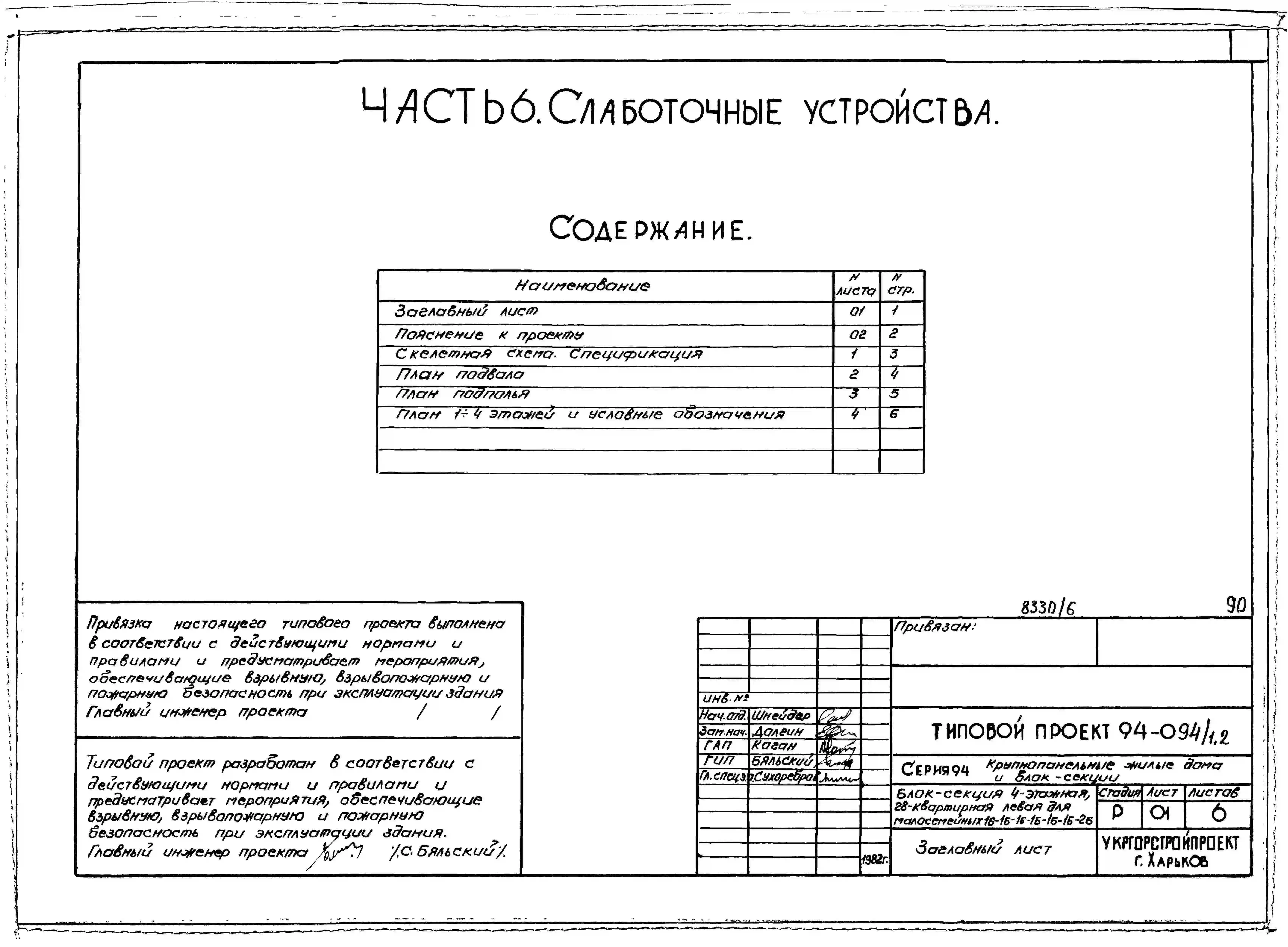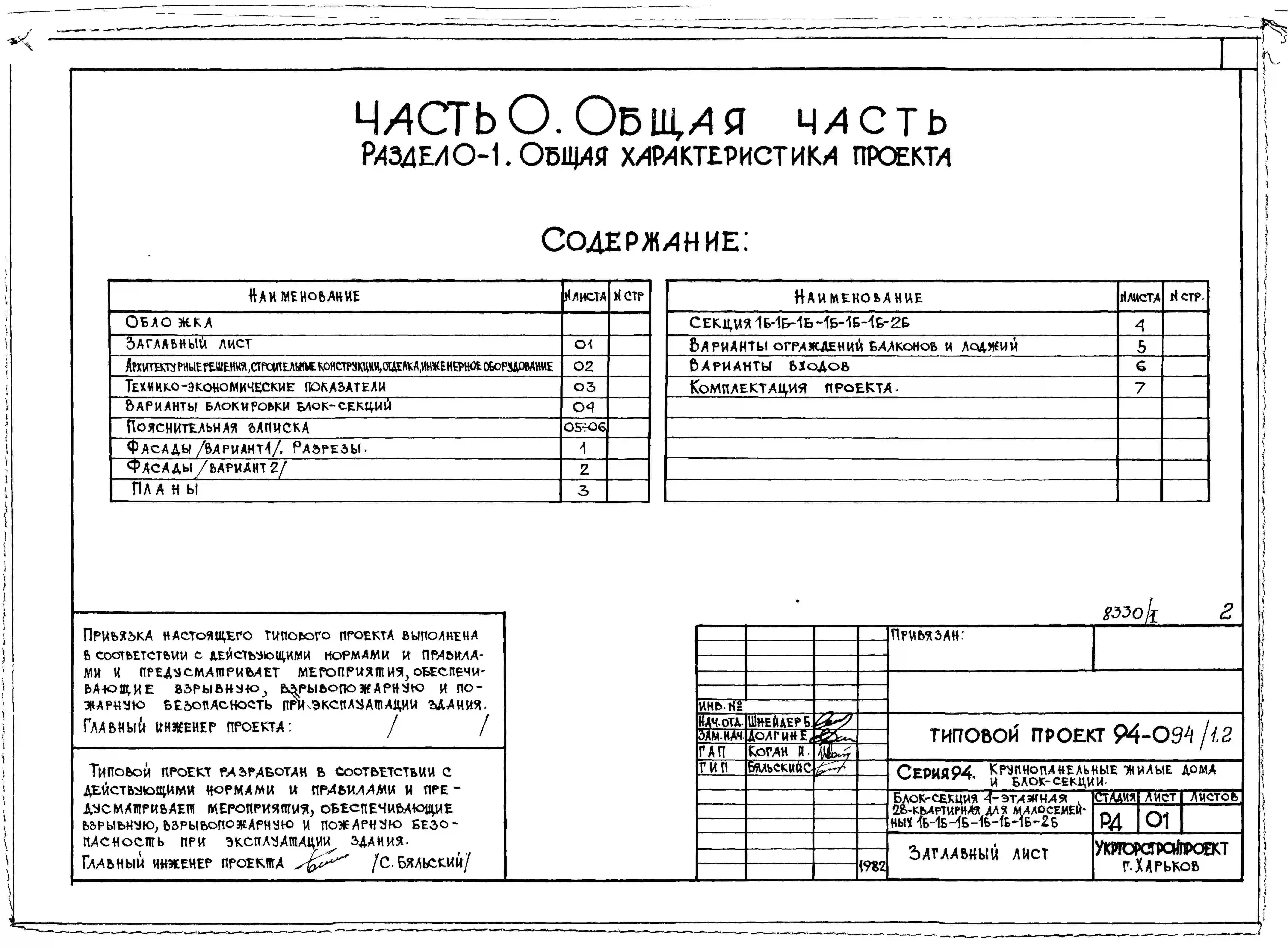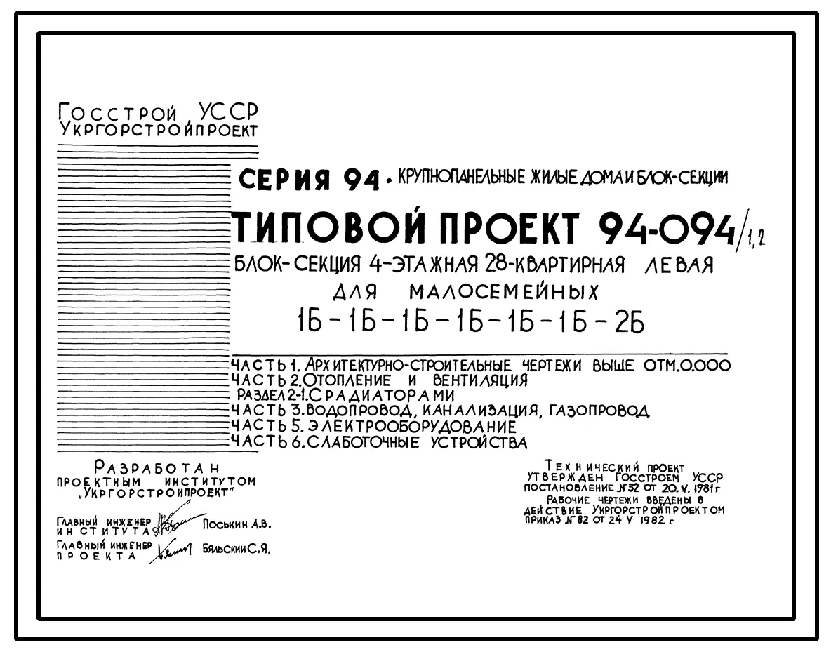 Типовой проект 94-094/1.2 Блок-секция 4-этажная 28-квартирная левая для малосемейных 1Б-1Б-1Б-1Б-1Б-1Б-2Б. Паспорт проекта (формат PDF) Чертежи (формат TIF)