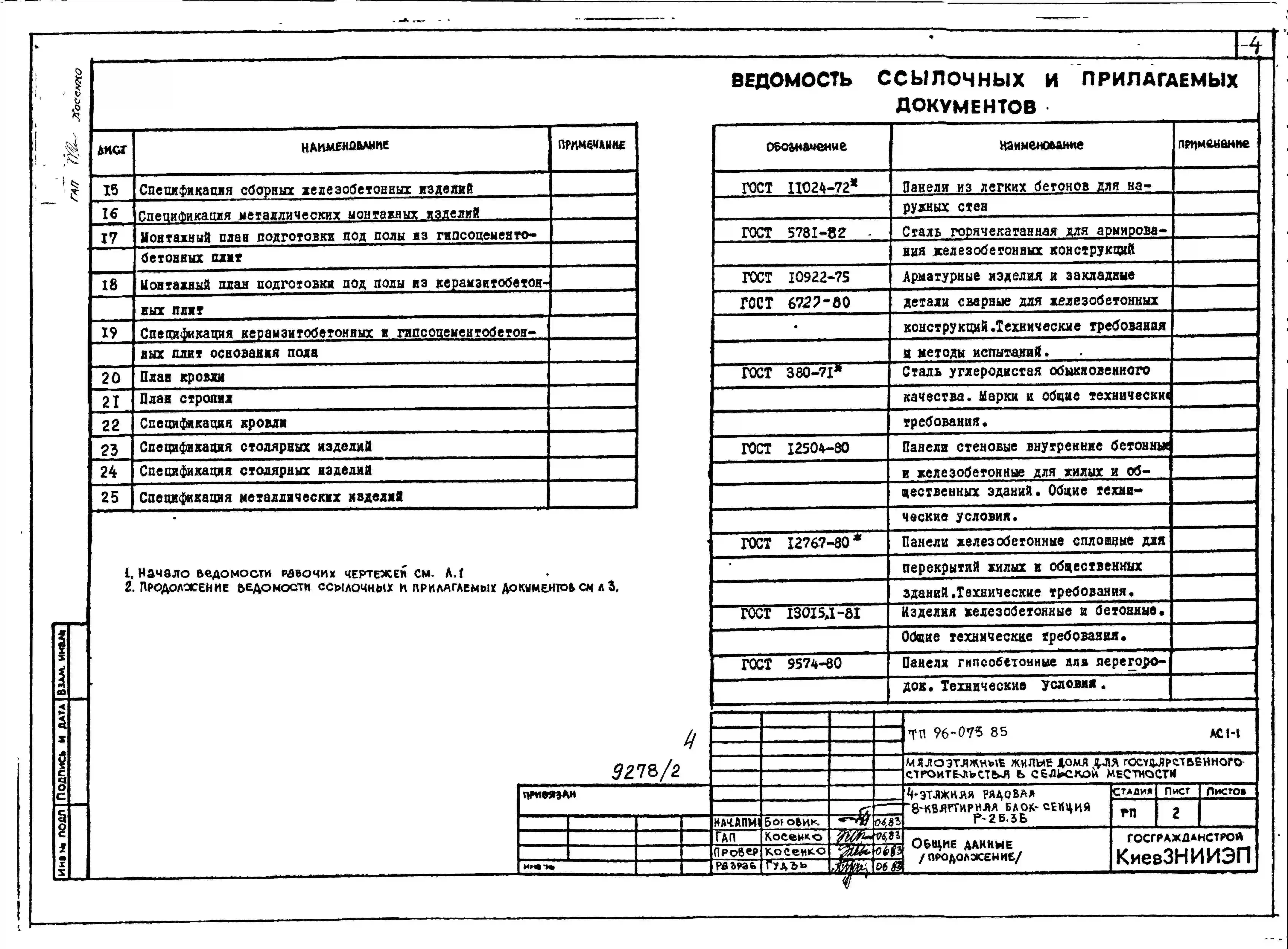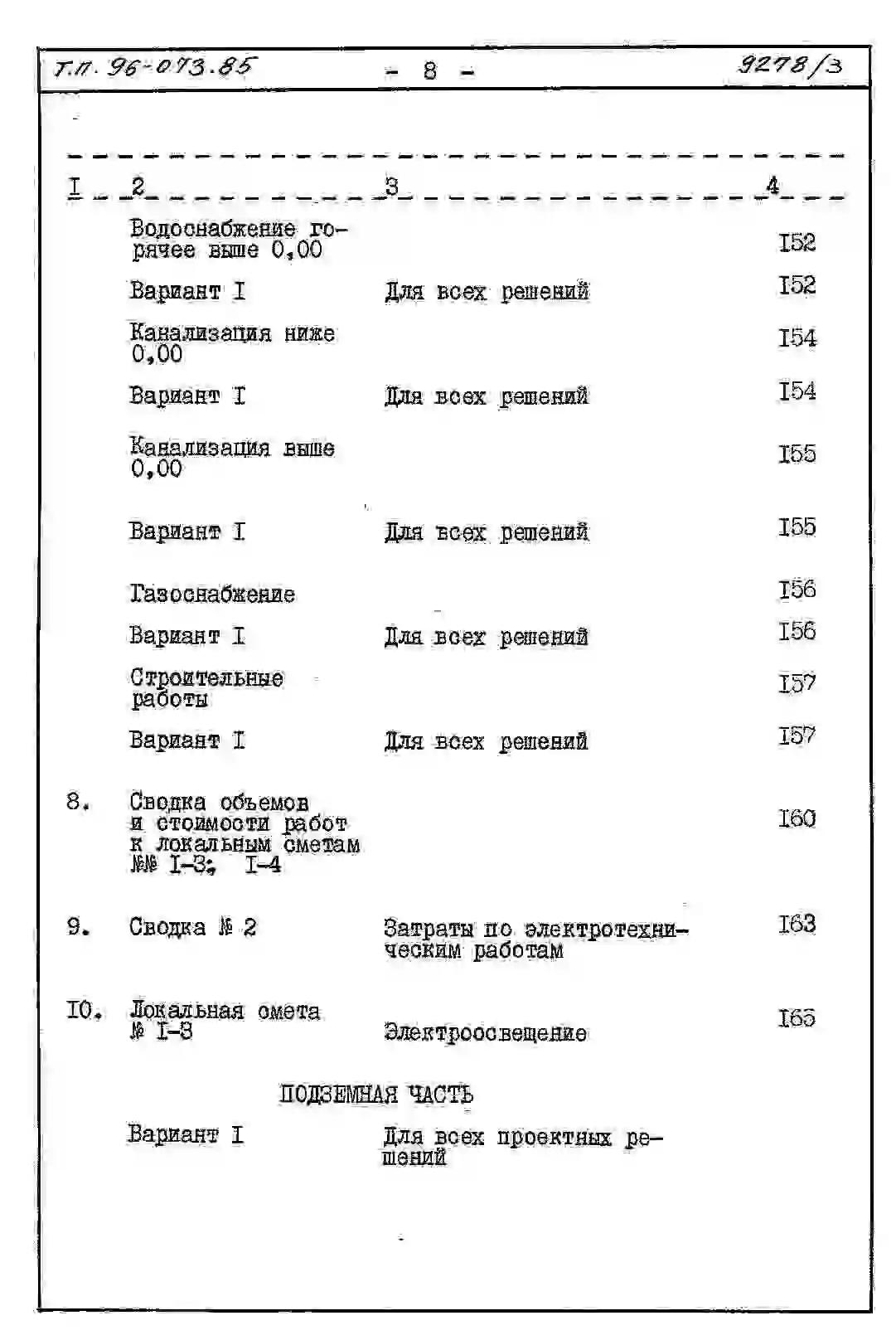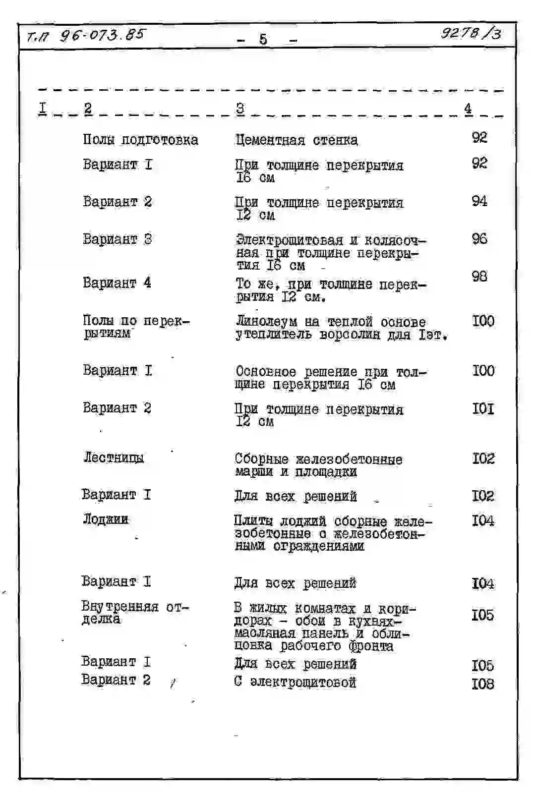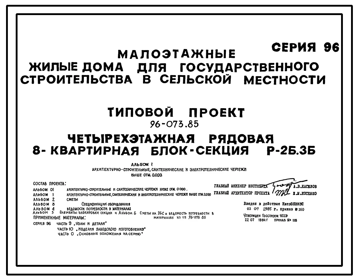 Типовой проект 96-073.85 Четырехэтажная рядовая 8-квартирная блок-секция Р-2Б, 3Б. Паспорт проекта (формат PDF) Чертежи (формат TIF)