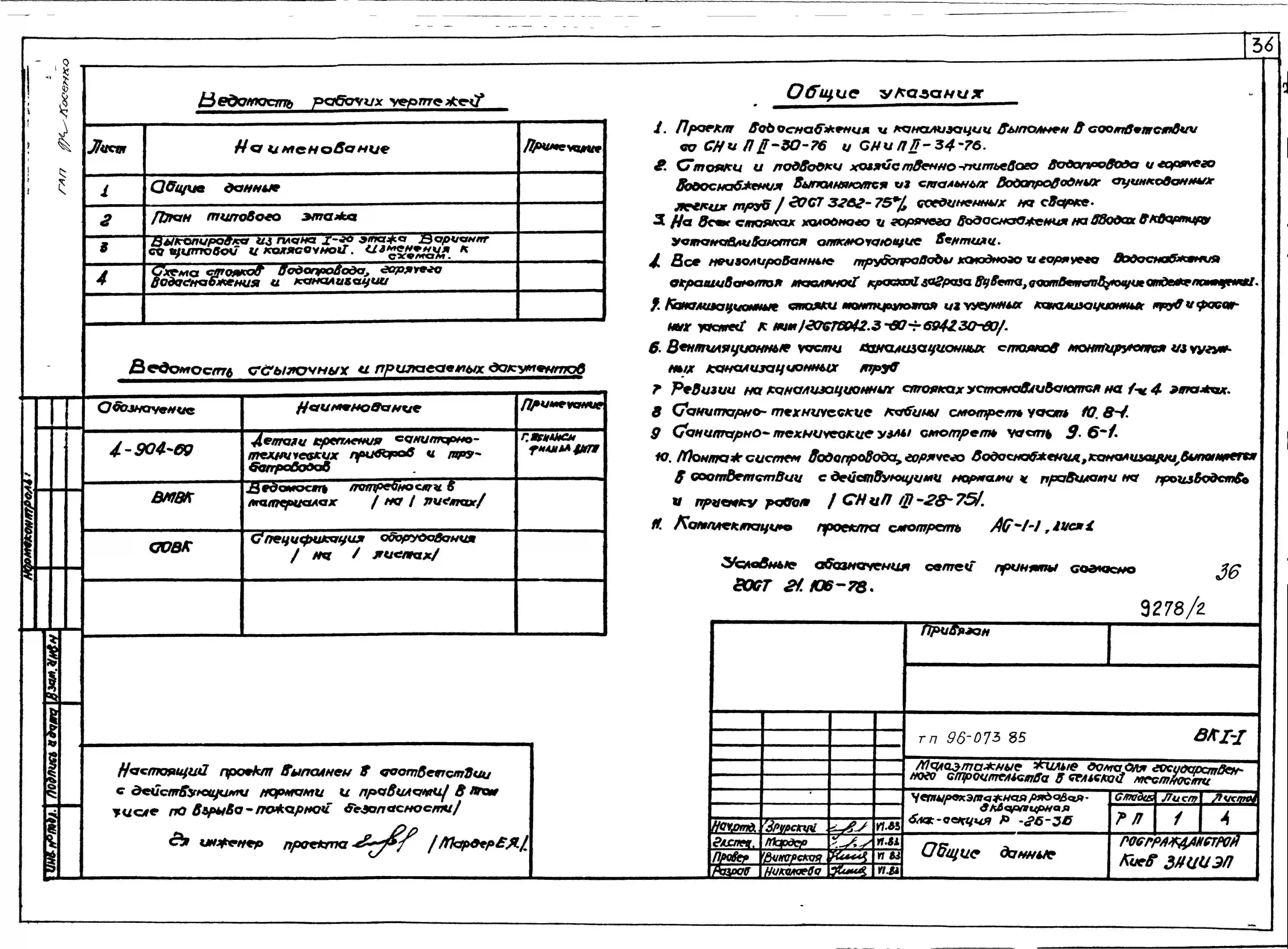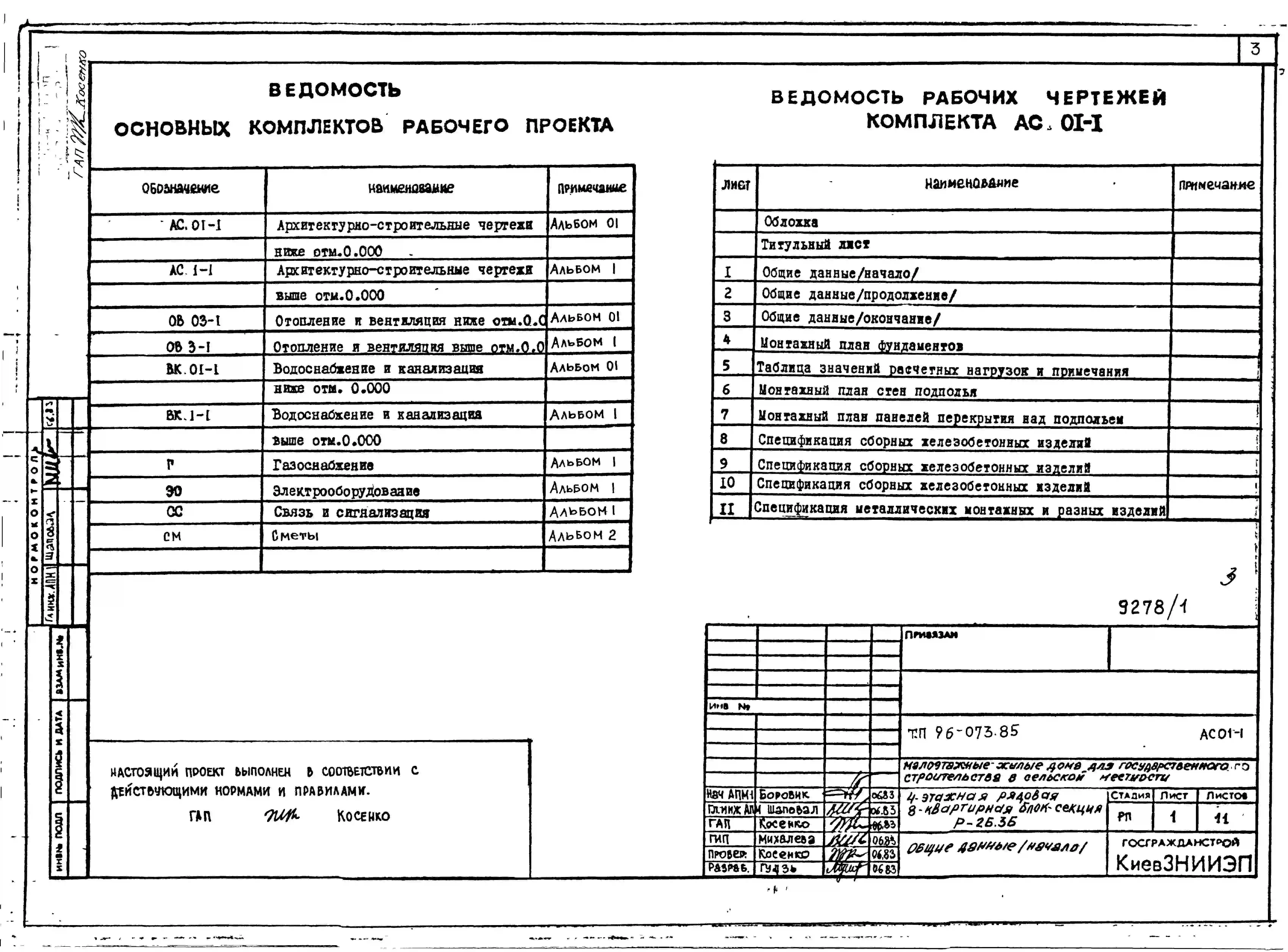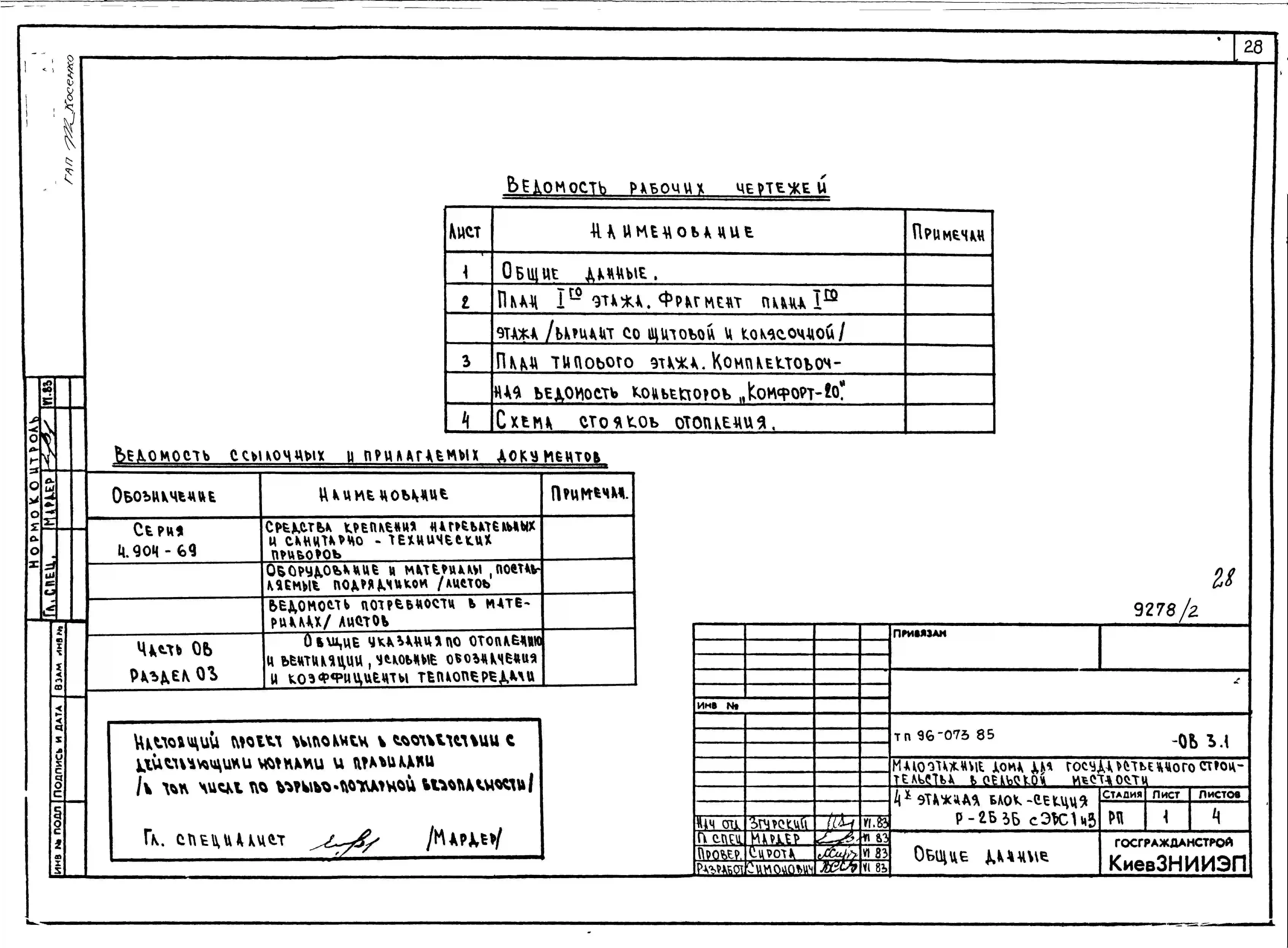 Типовой проект 96-073.85 Четырехэтажная рядовая 8-квартирная блок-секция Р-2Б, 3Б. Паспорт проекта (формат PDF) Чертежи (формат TIF)
