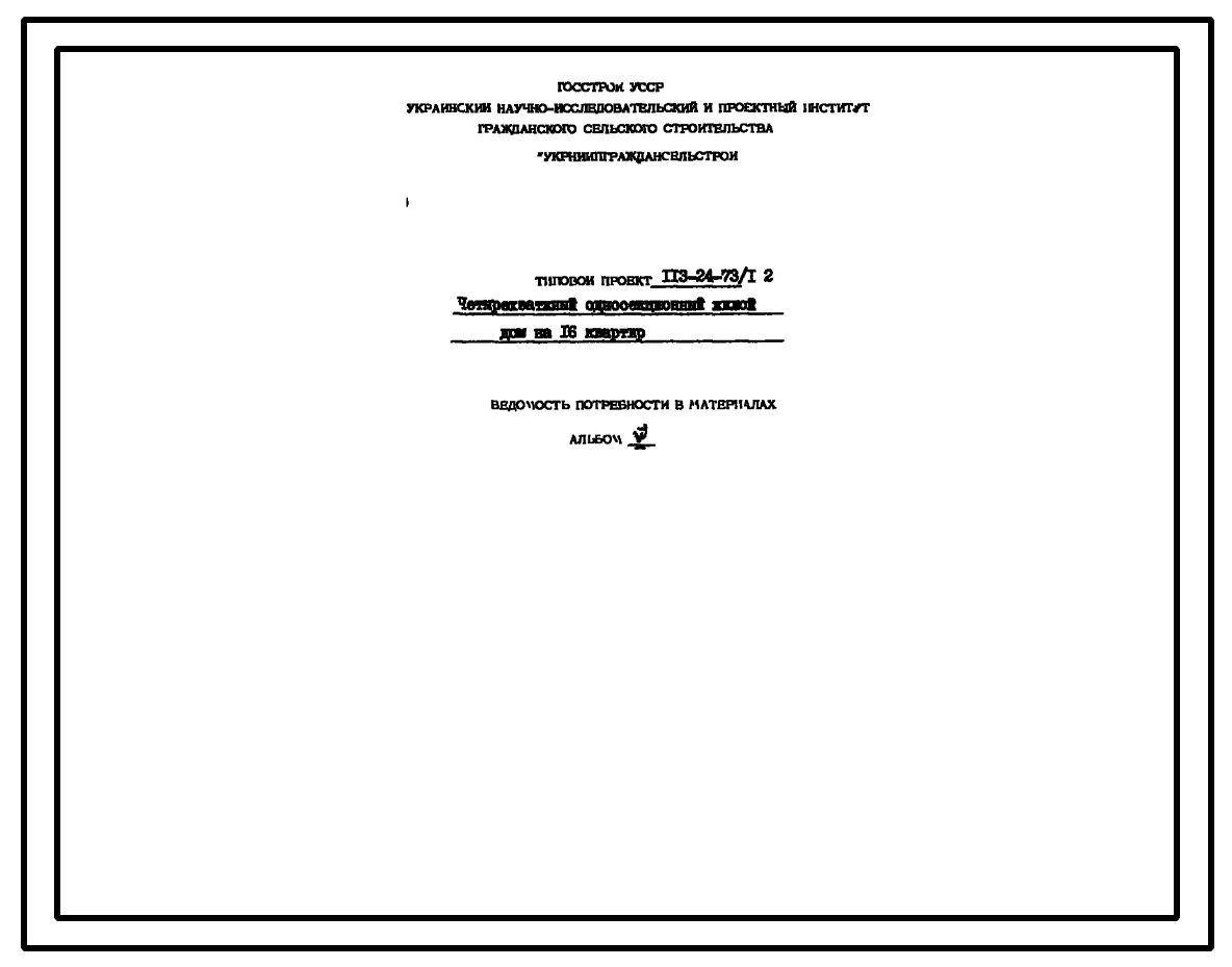 Типовой проект 113-24-73/1.2 Четырехэтажный односекционный жилой дом на 16 квартир. Паспорт проекта (формат PDF) Чертежи (формат TIF)