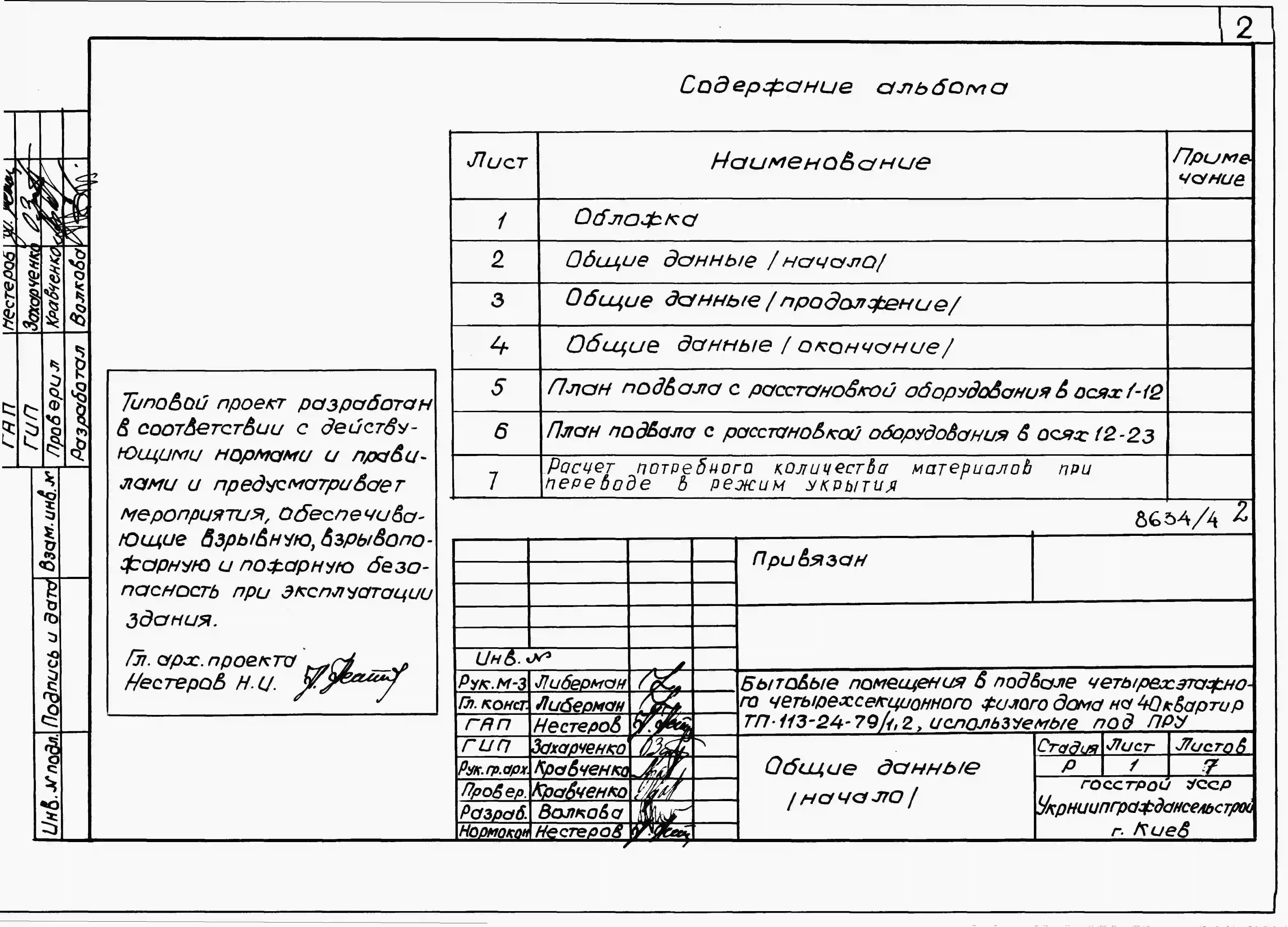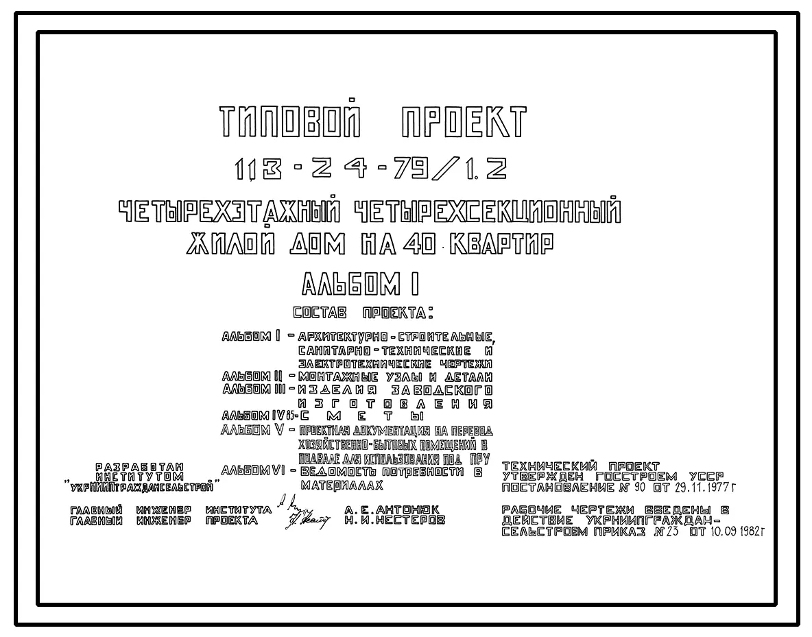 Типовой проект 113-24-79/1.2 Четырехэтажный четырехсекционный жилой дом на 40 квартир. Паспорт проекта (формат PDF) Чертежи (формат TIF)