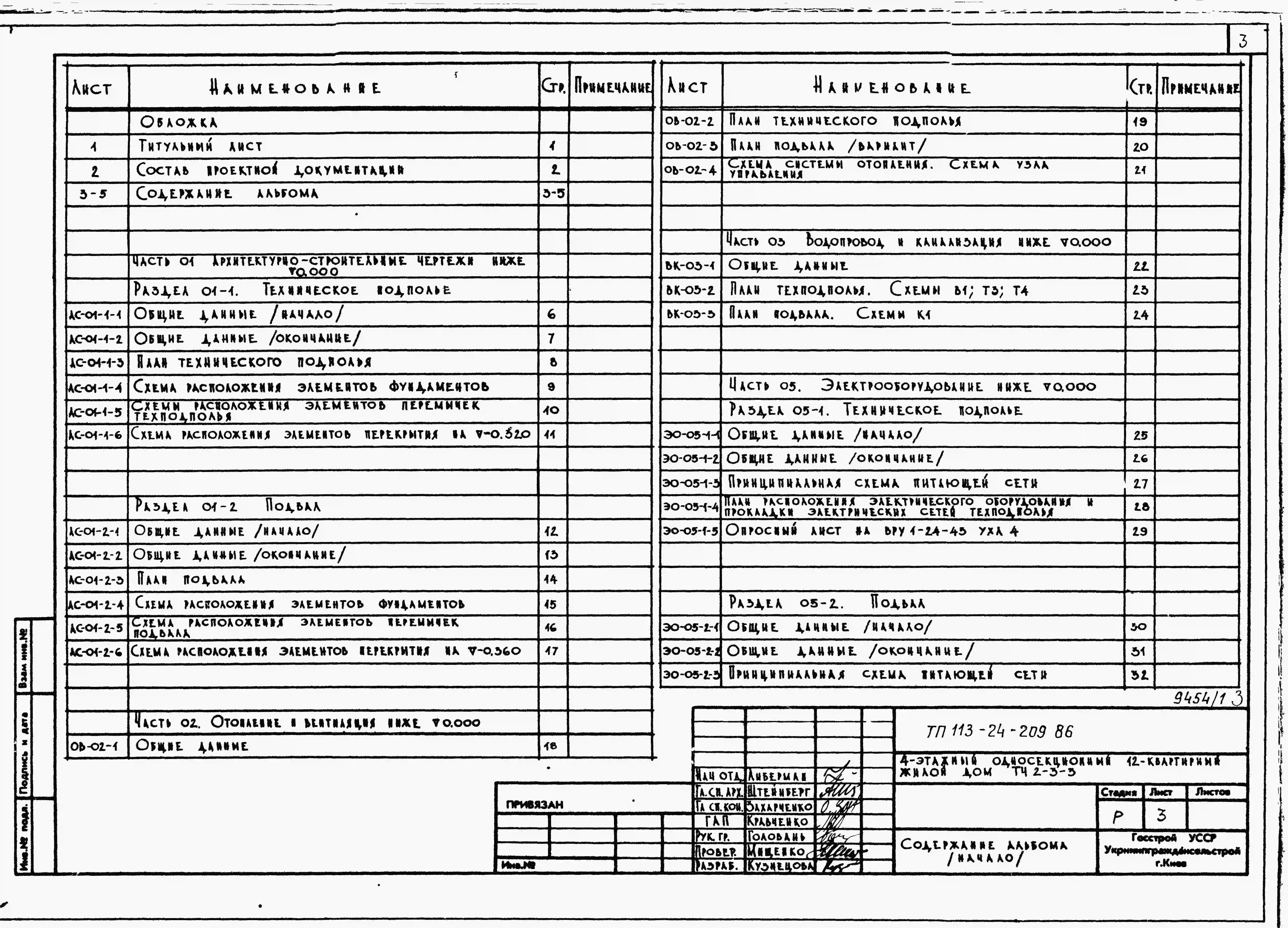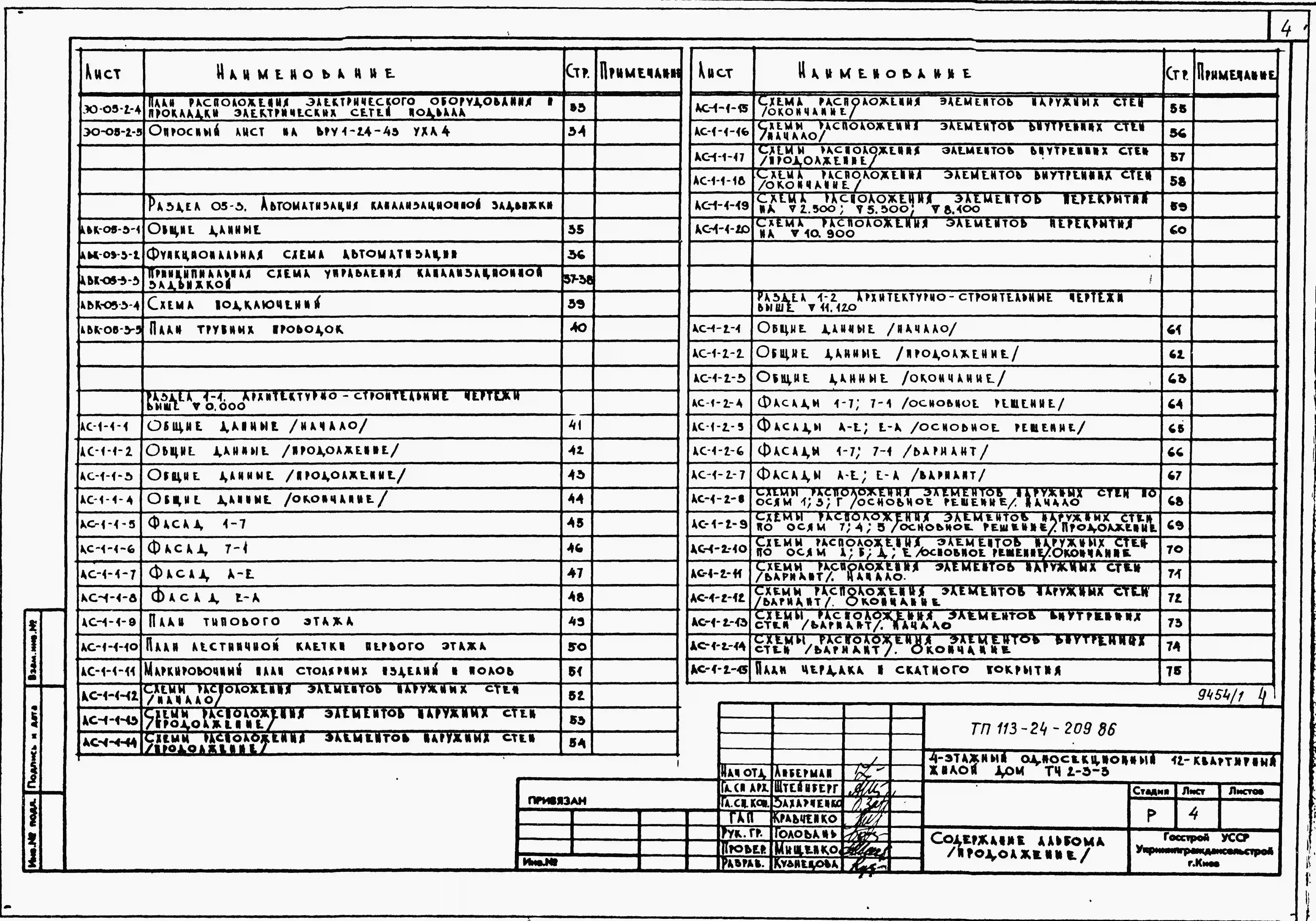Типовой проект 113-24-209.86 4-этажный односекционный 12-квартирный жилой дом. Паспорт проекта (формат PDF) Чертежи (формат TIF)