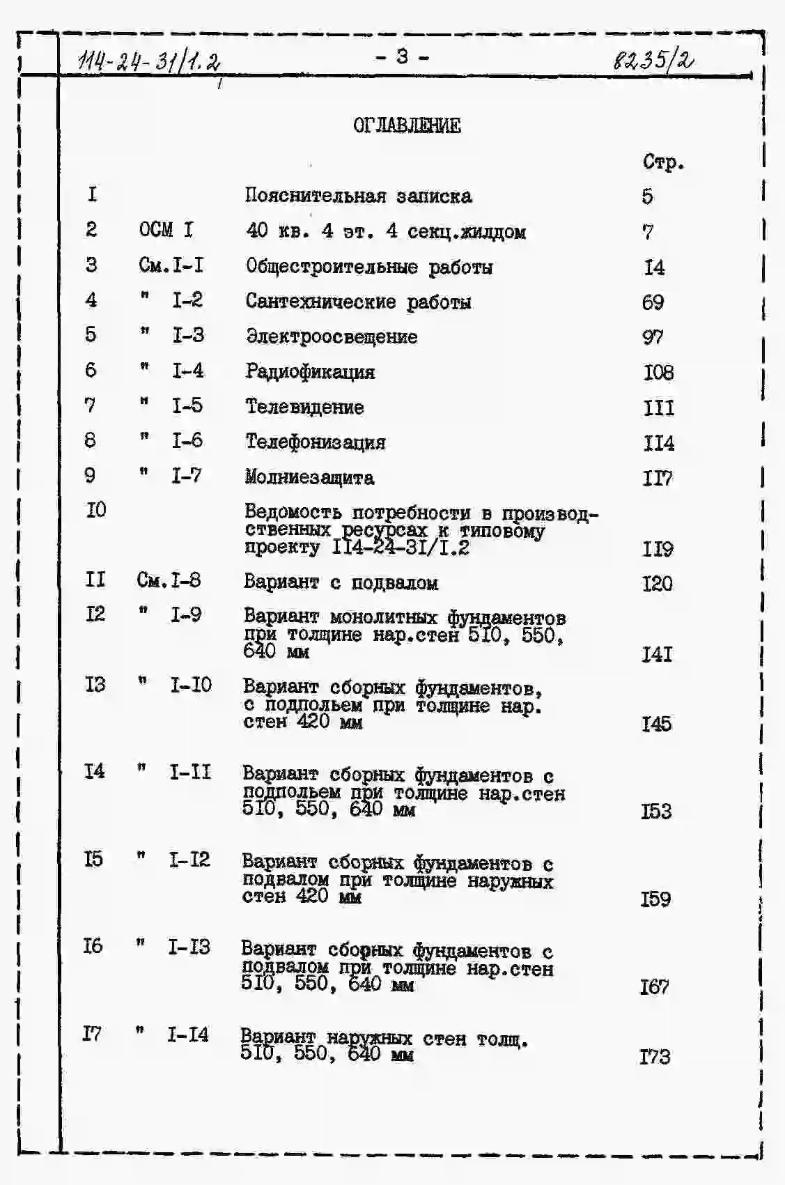 Типовой проект 114-24-31/1.2 Четырехэтажный четырехсекционный дом на 40 квартир. Паспорт проекта (формат PDF) Чертежи (формат TIF)