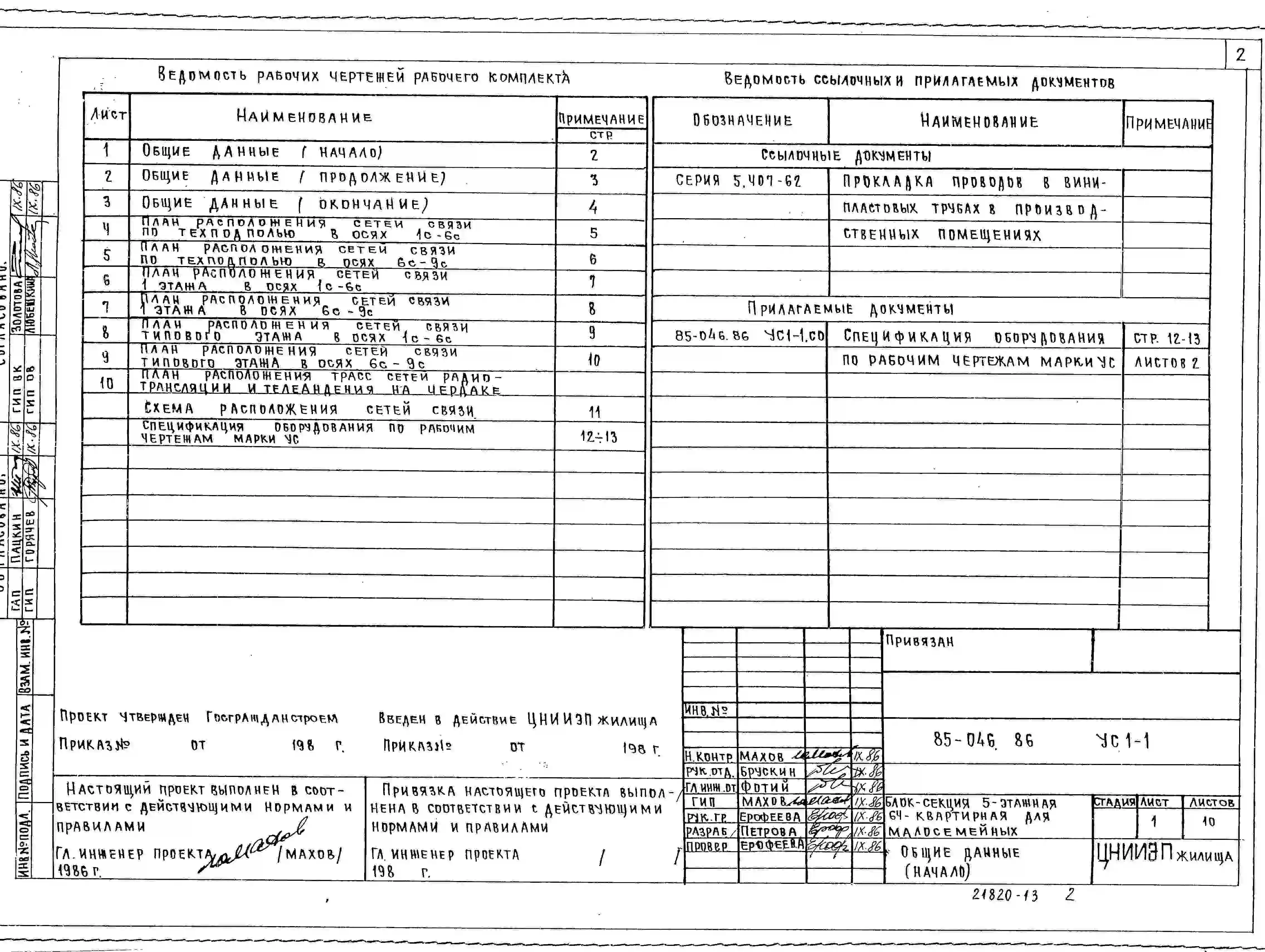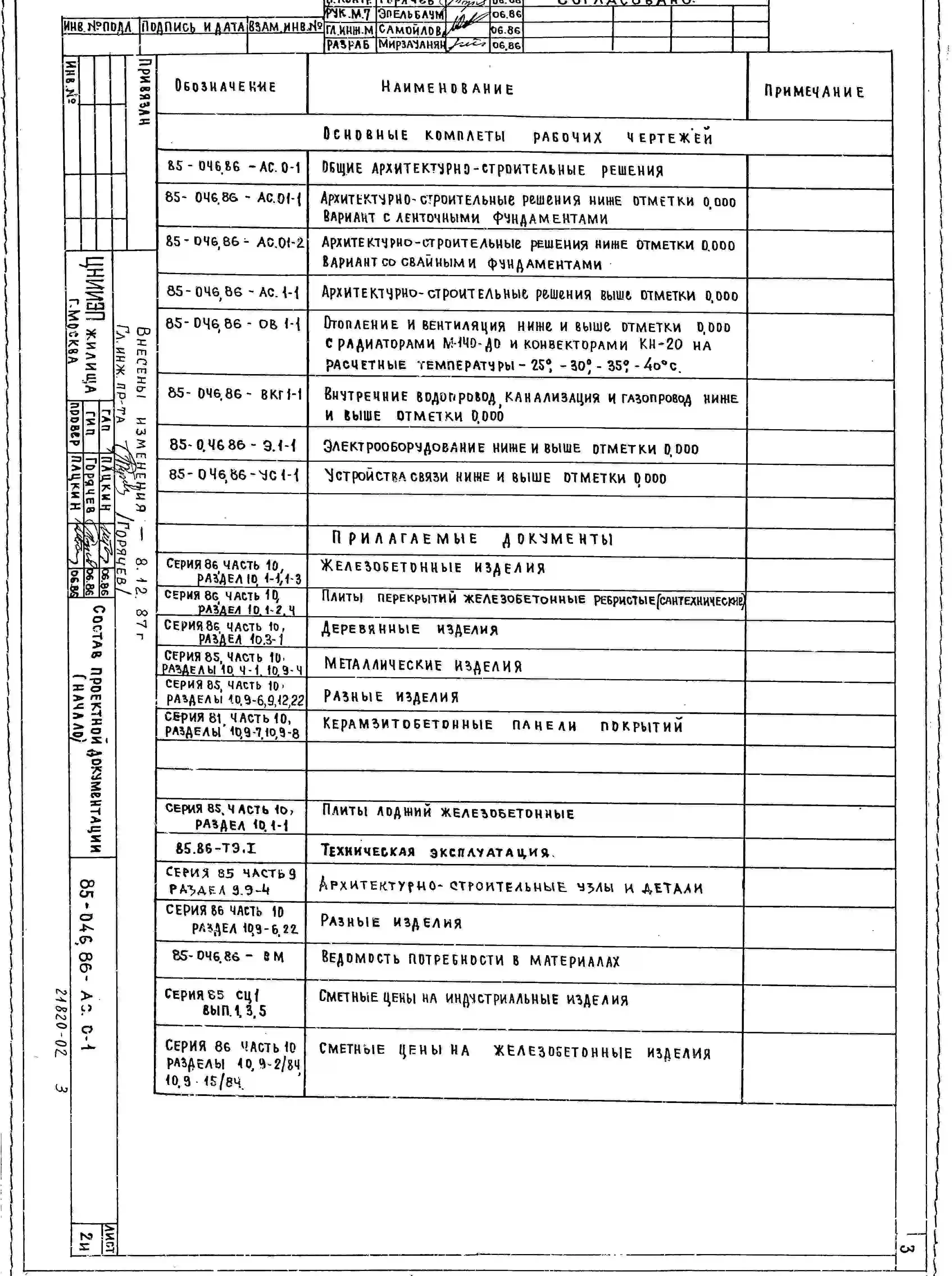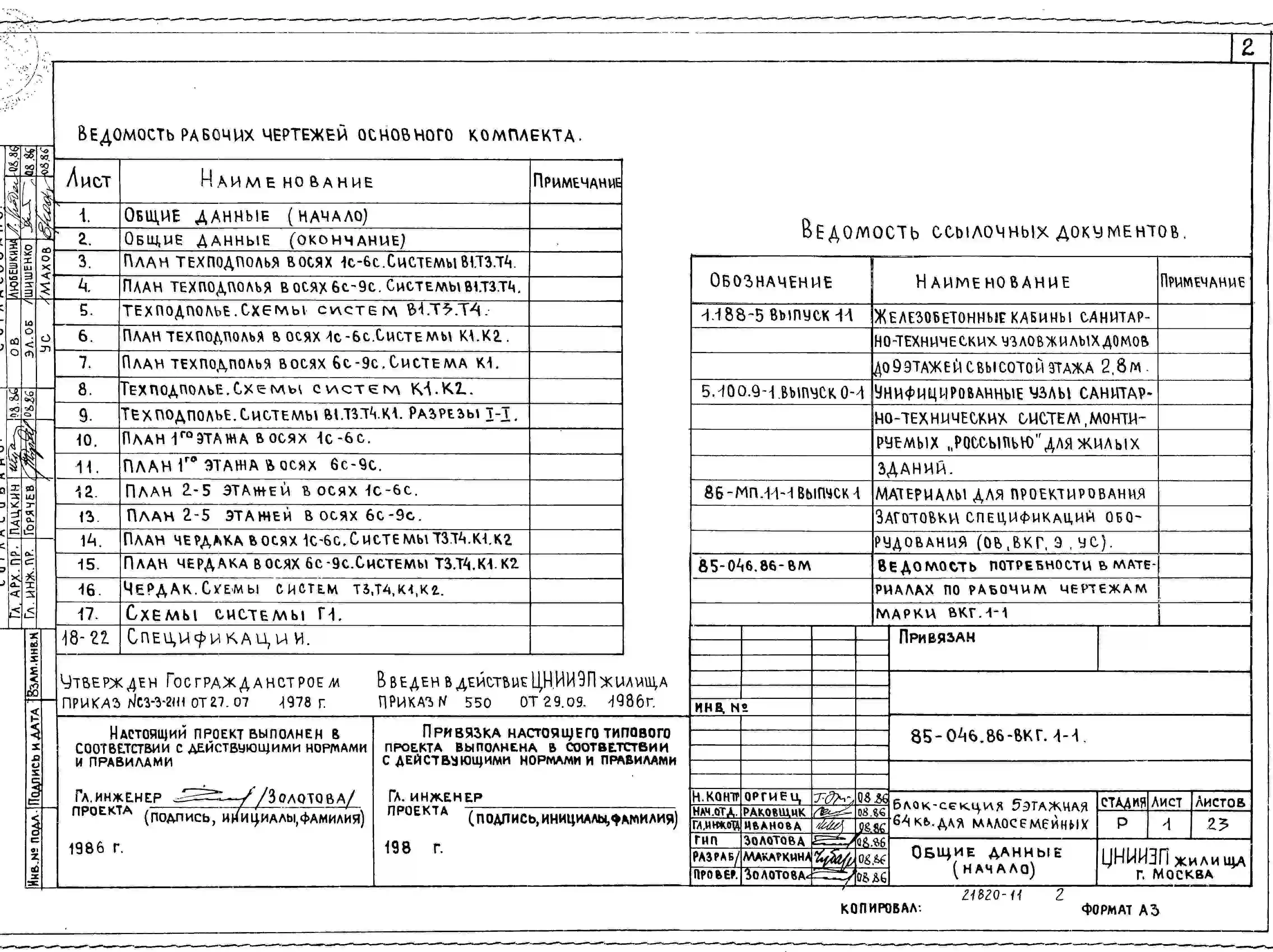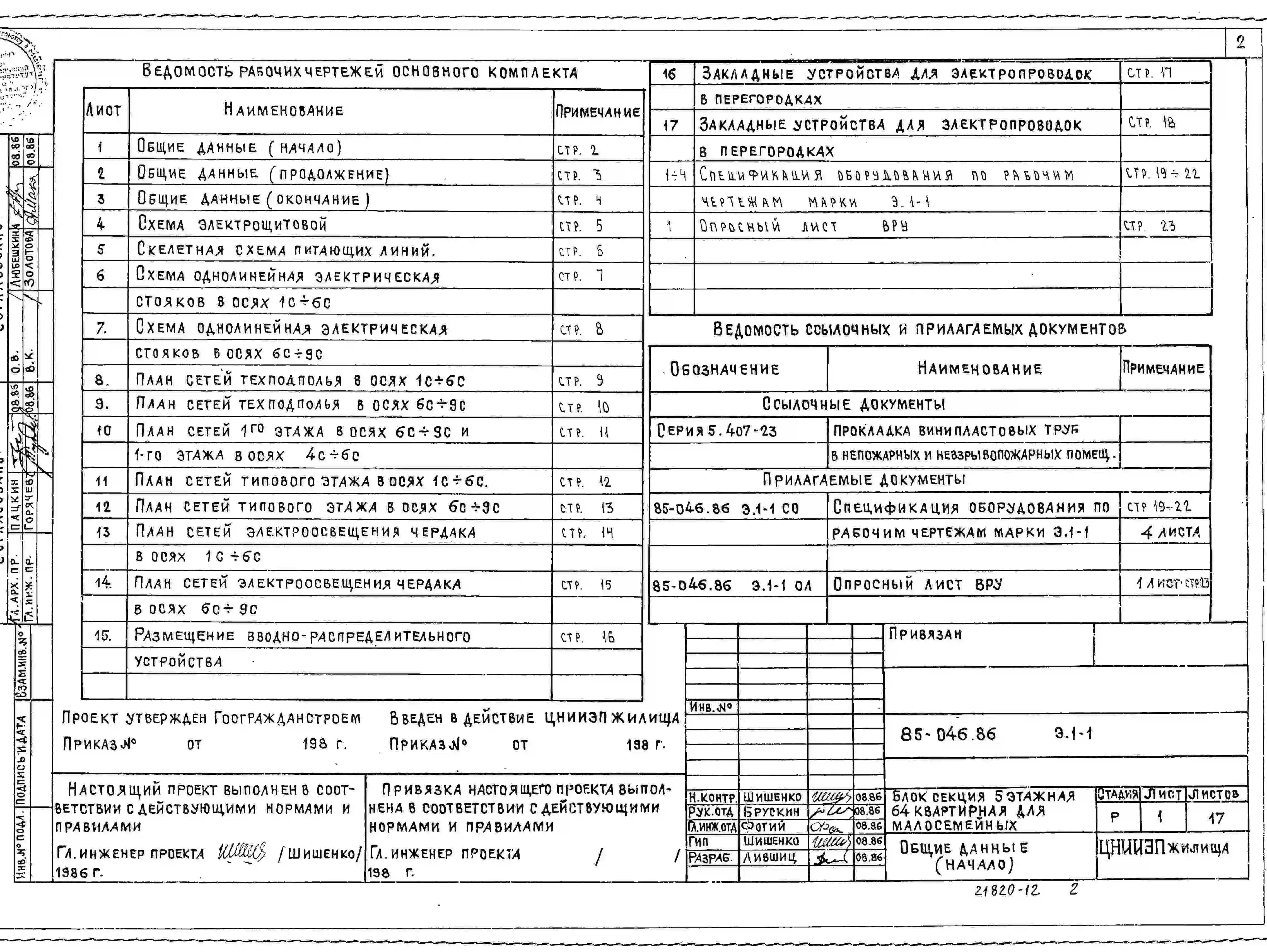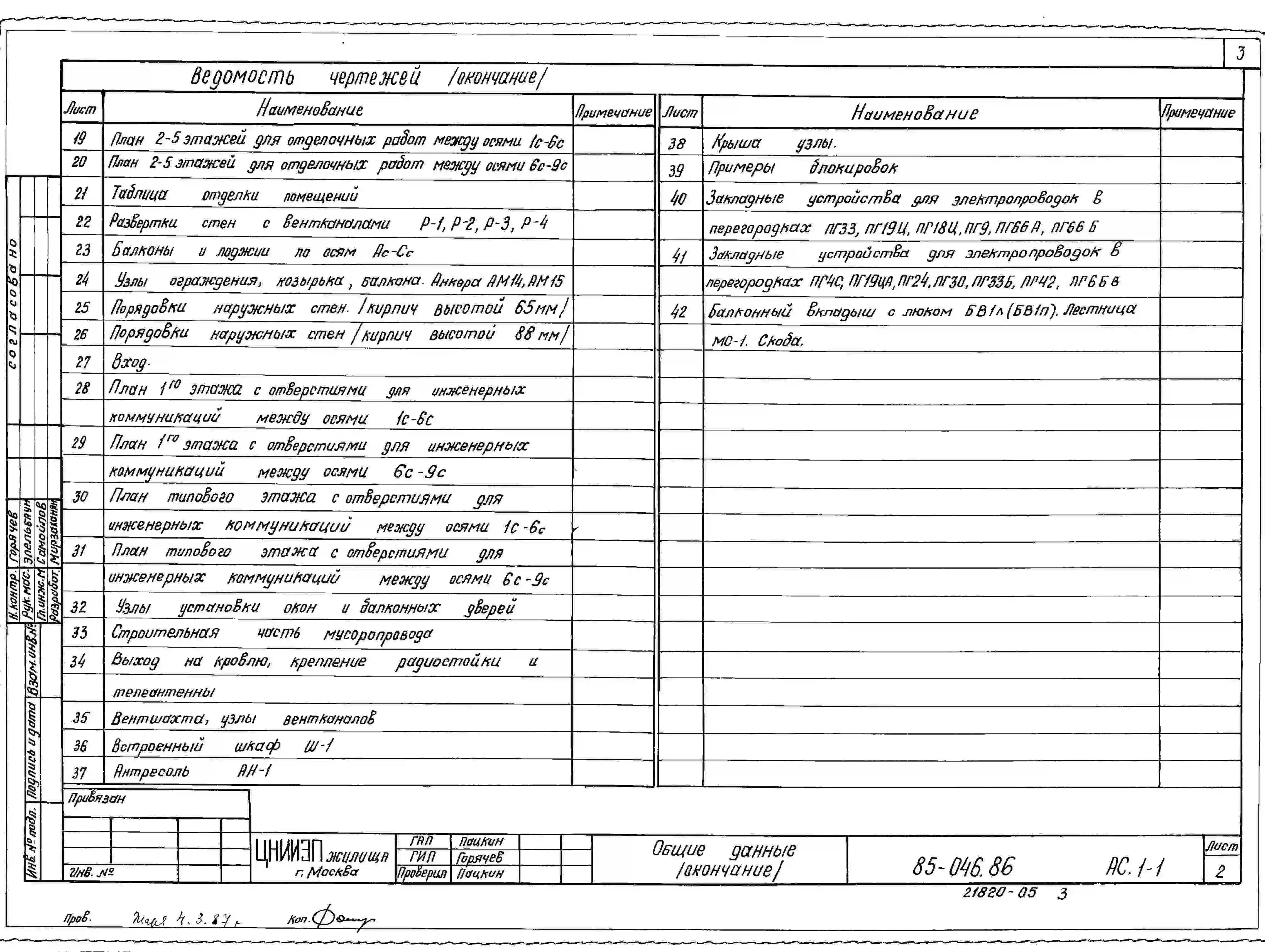 Типовой проект 85-046.86 Блок секция 5-этажная 64-квартирная для малосемейных. Паспорт проекта (формат PDF) Чертежи (формат TIF)