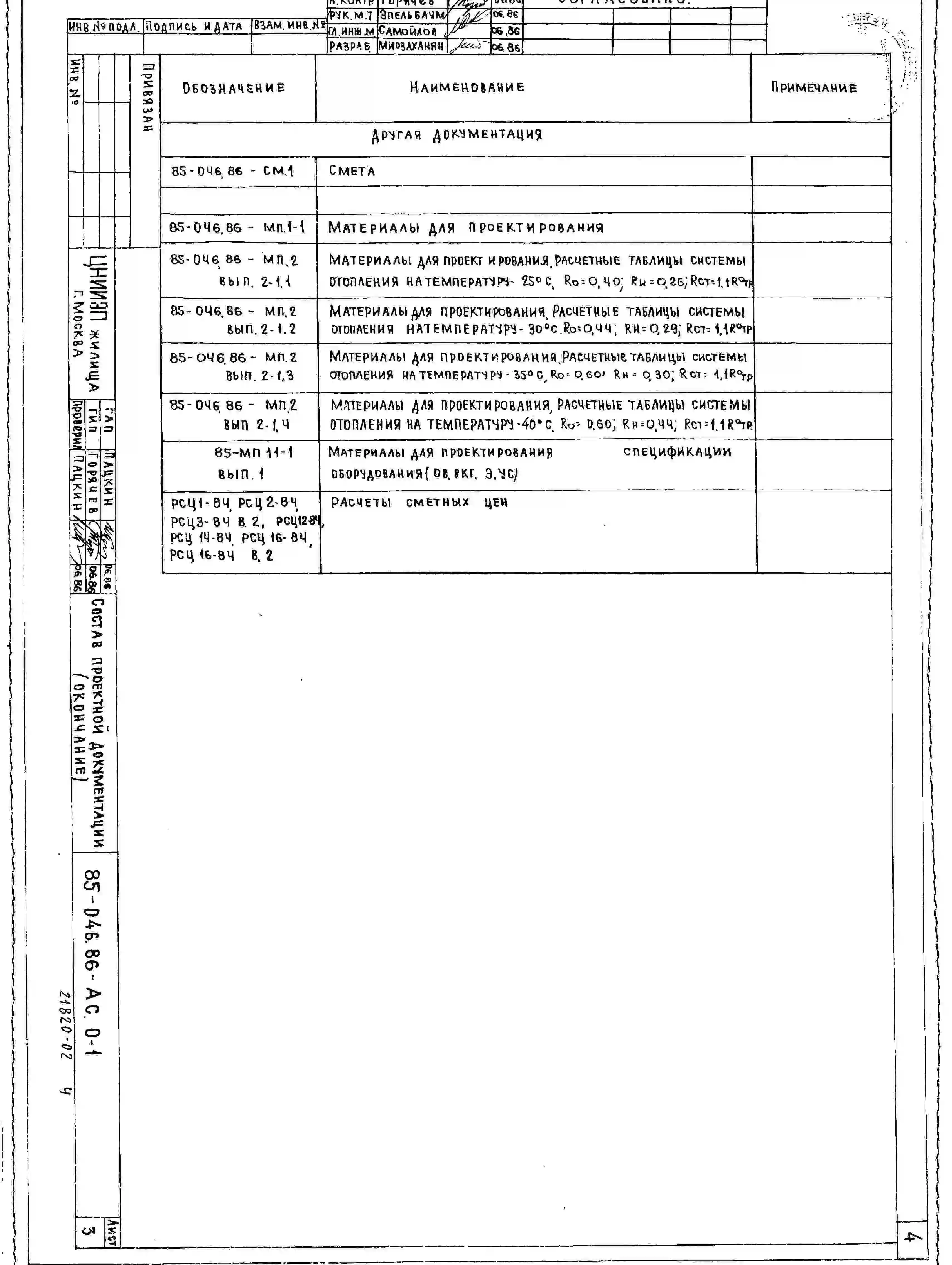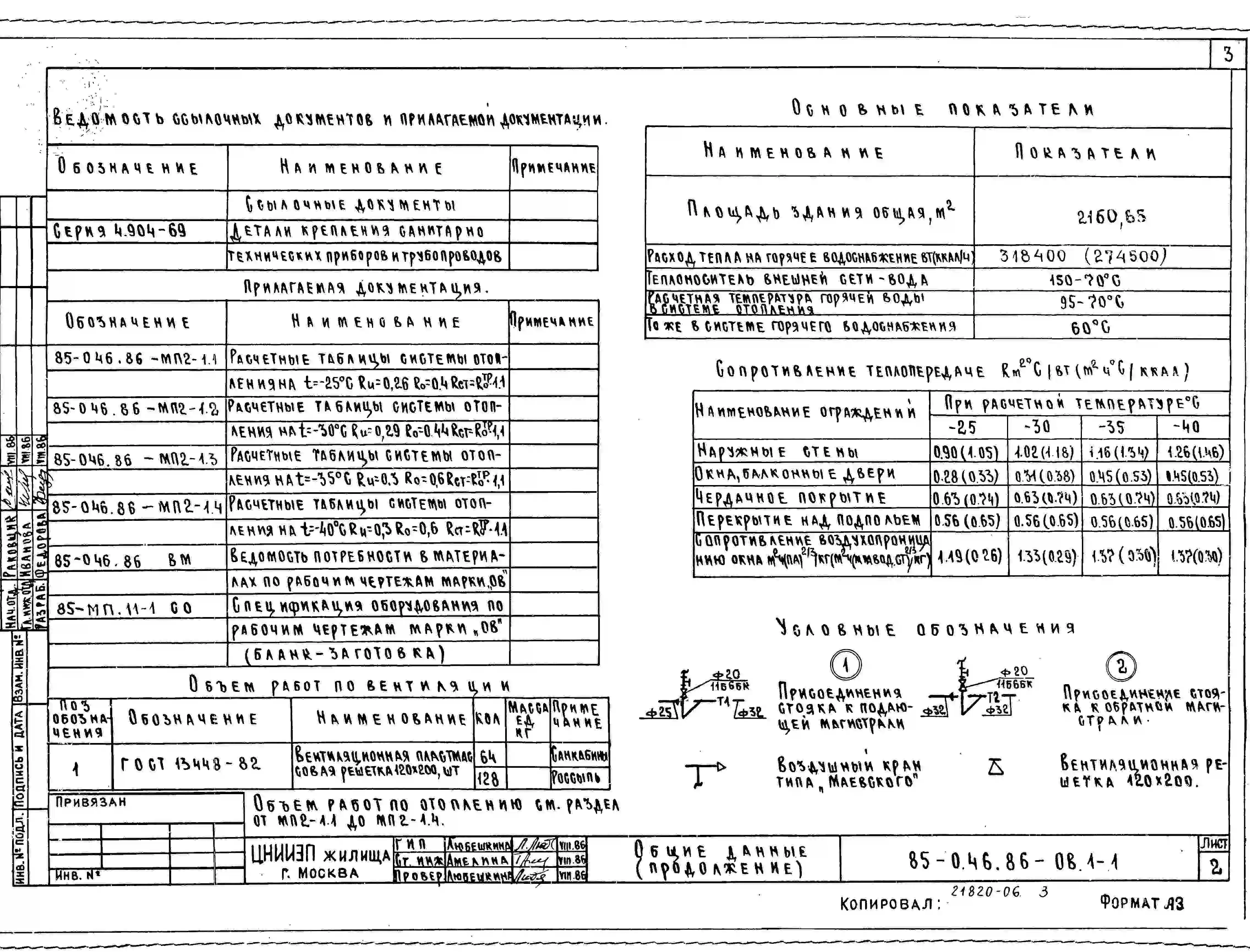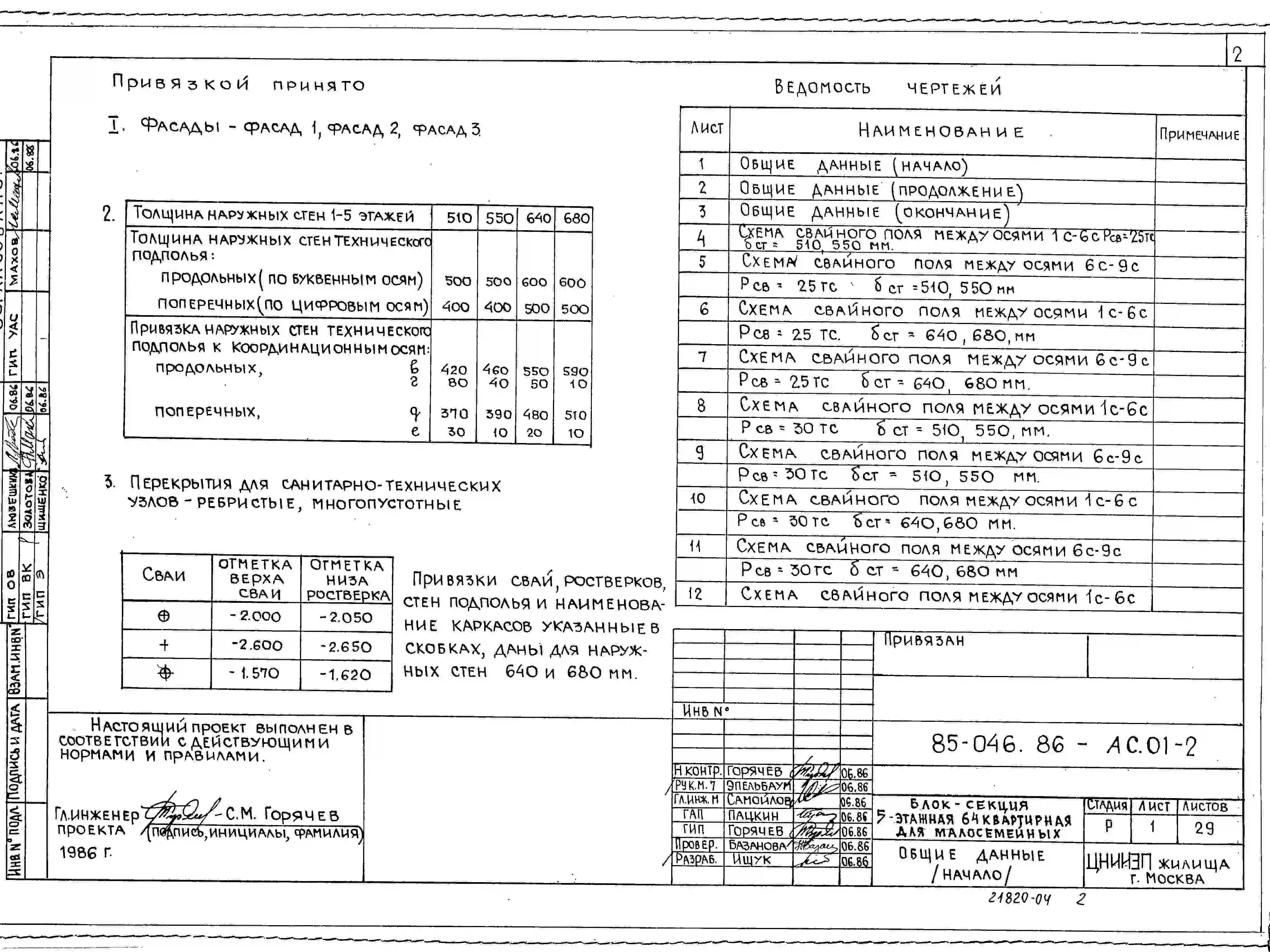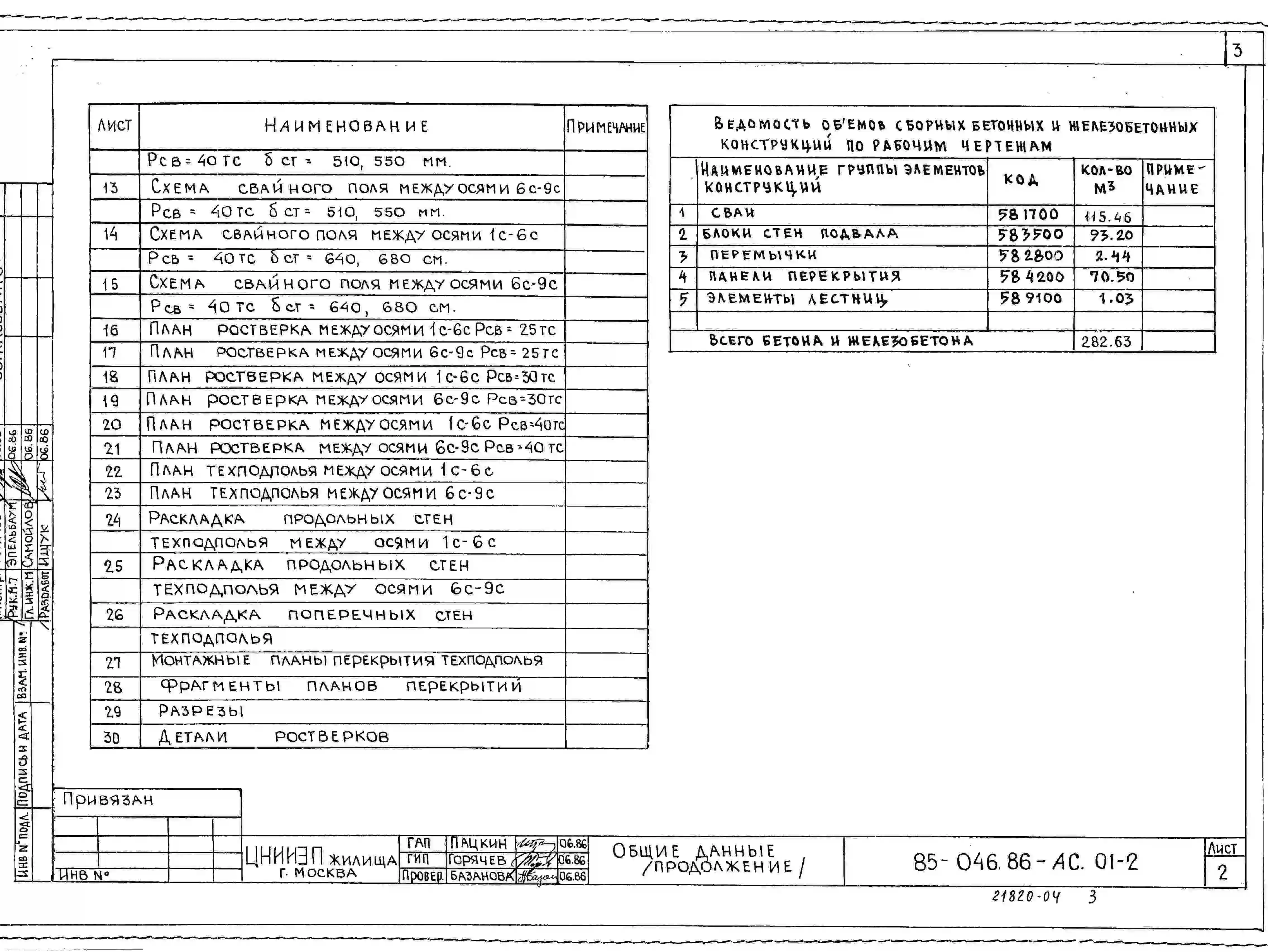 Типовой проект 85-046.86 Блок секция 5-этажная 64-квартирная для малосемейных. Паспорт проекта (формат PDF) Чертежи (формат TIF)