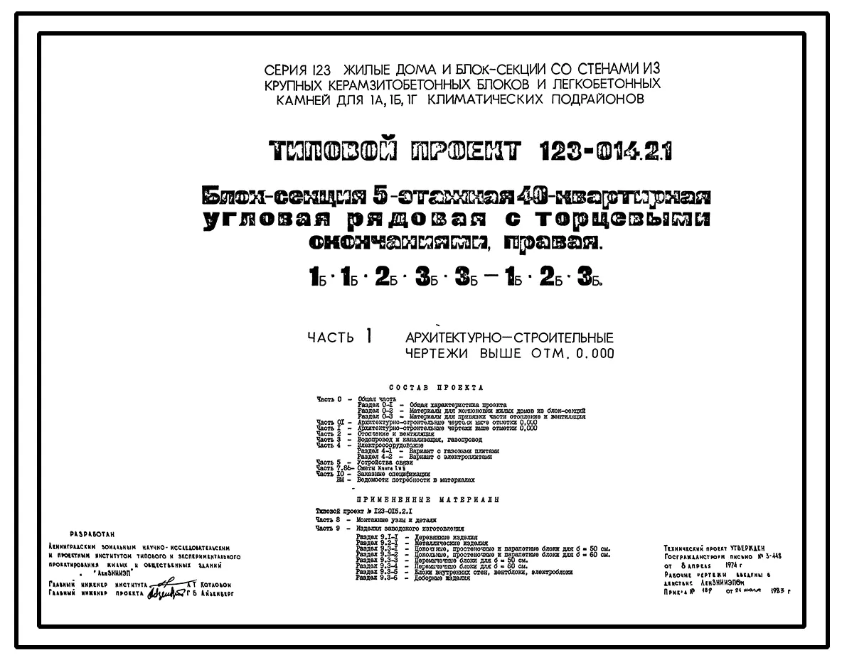 Типовой проект 123-014.2.1 Блок-секция 5-этажная 40-квартирная угловая с торцевыми окончаниями правая 1Б.1Б.2Б.3Б.3Б - 1Б.2Б.3Б