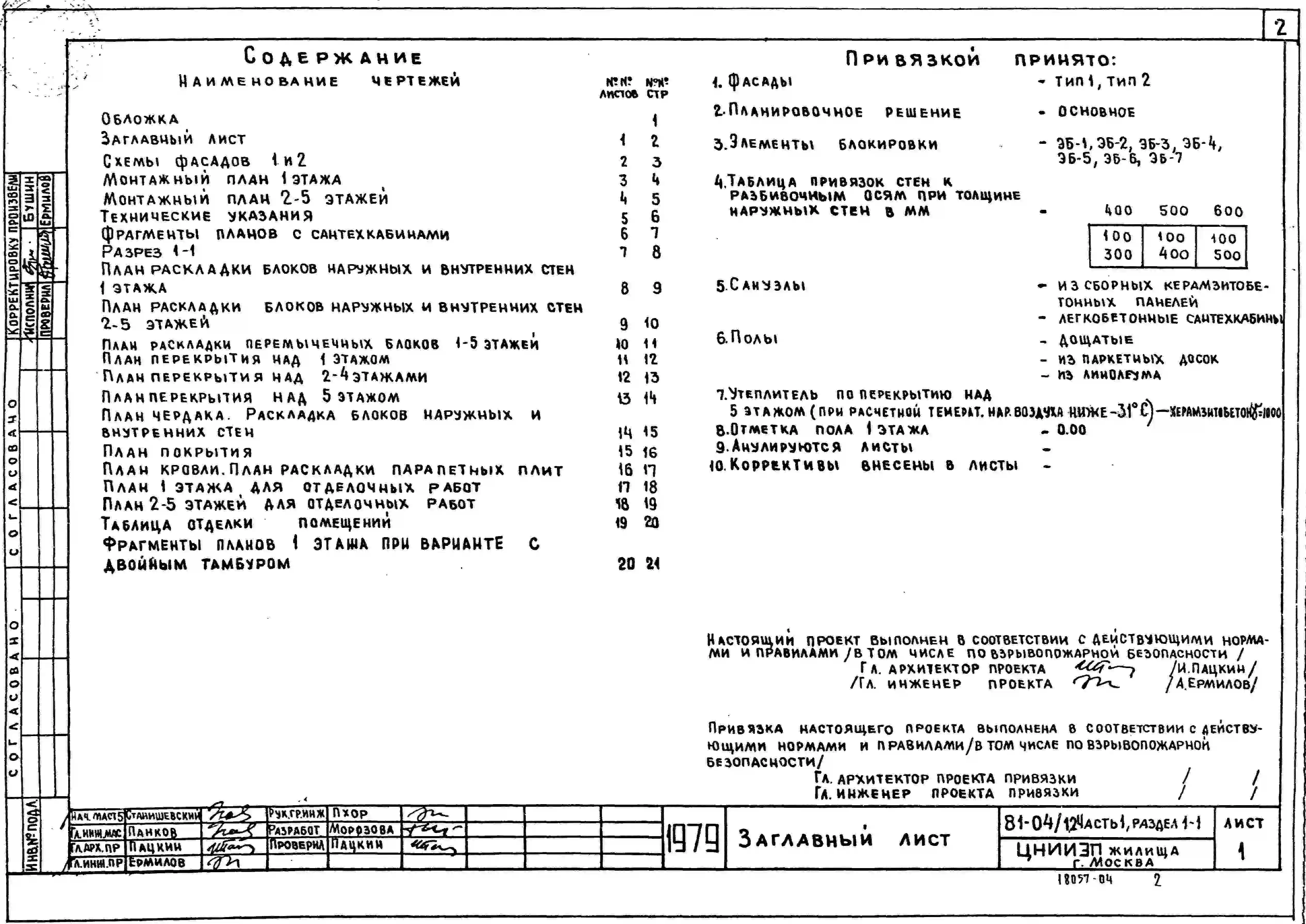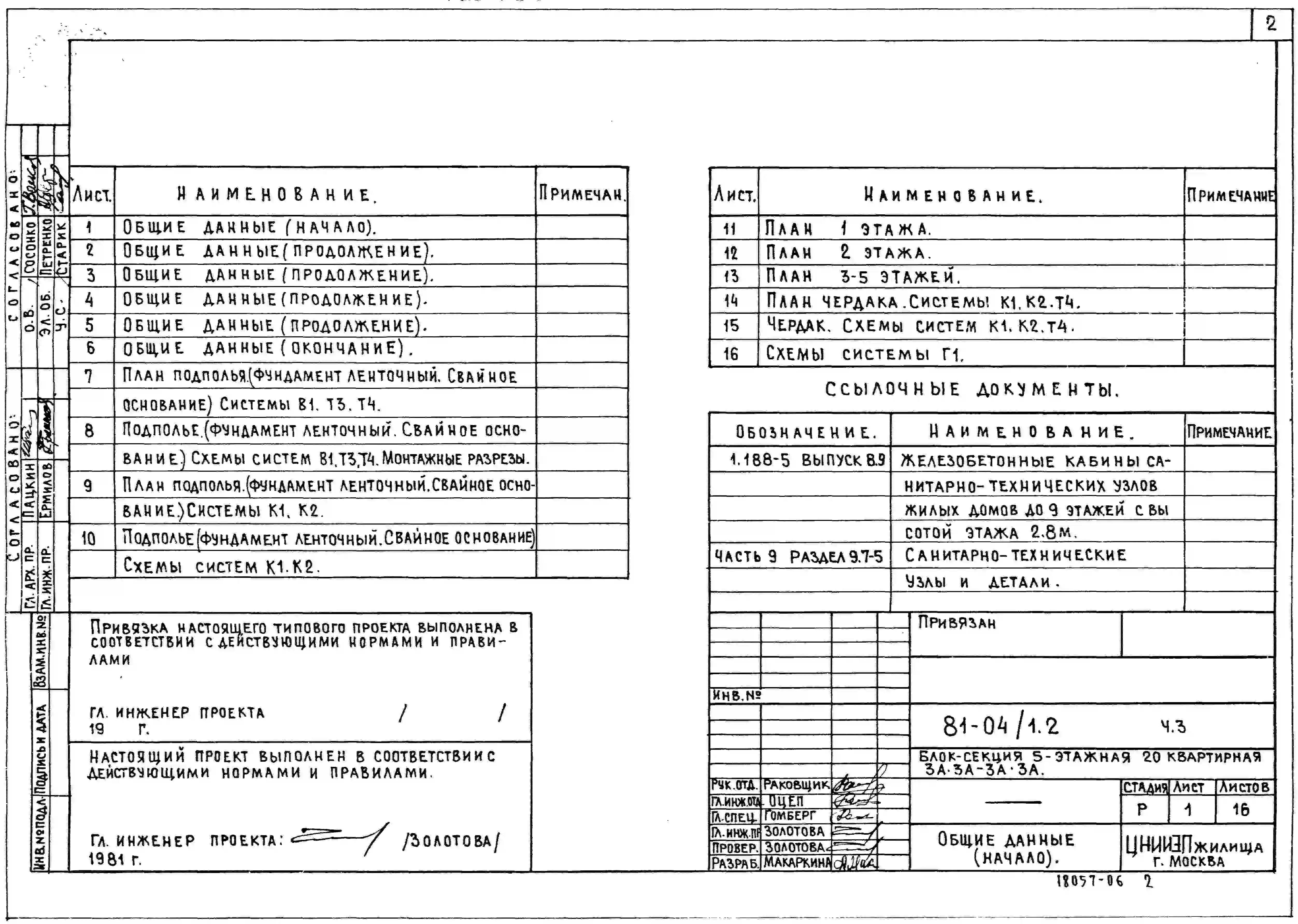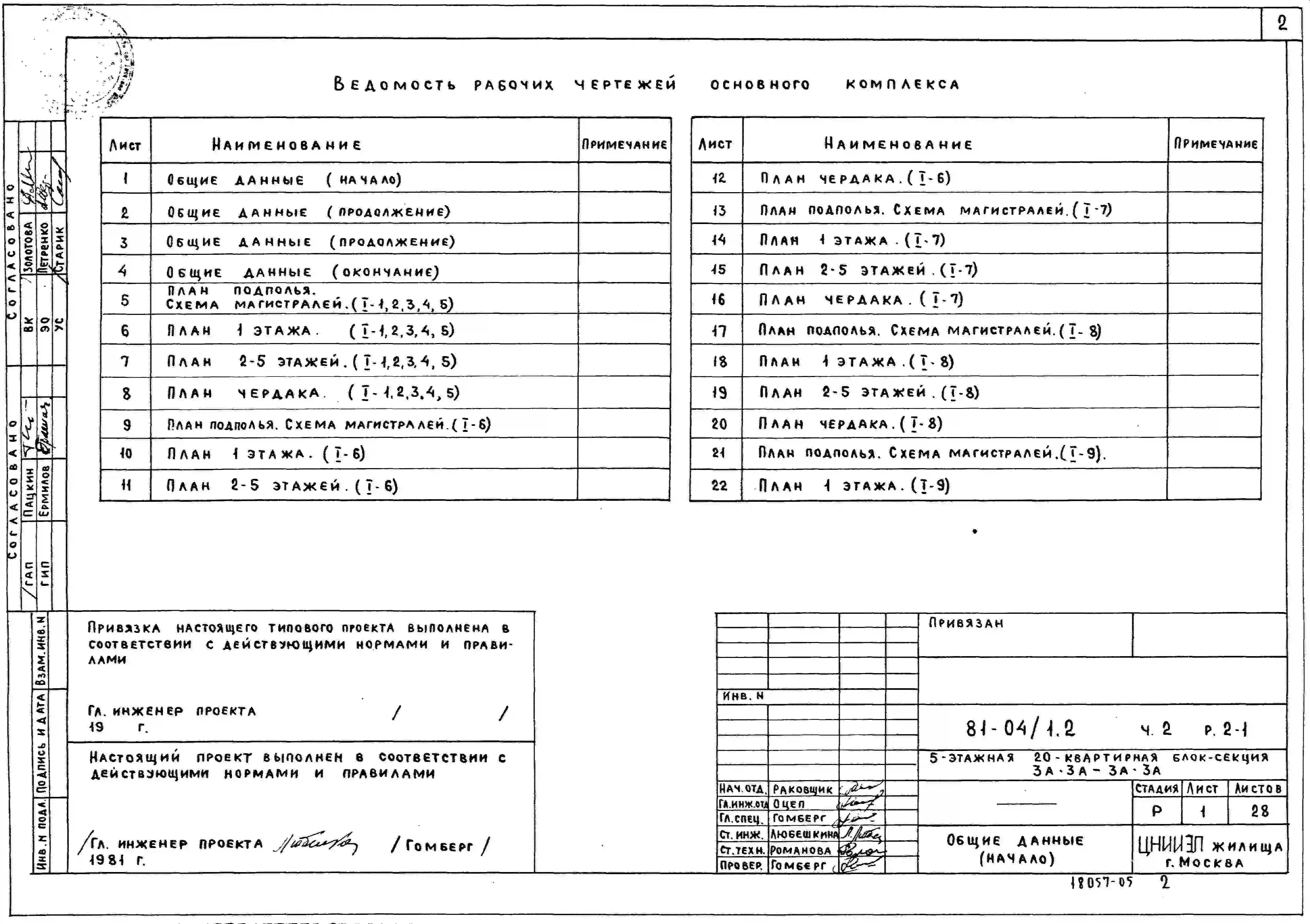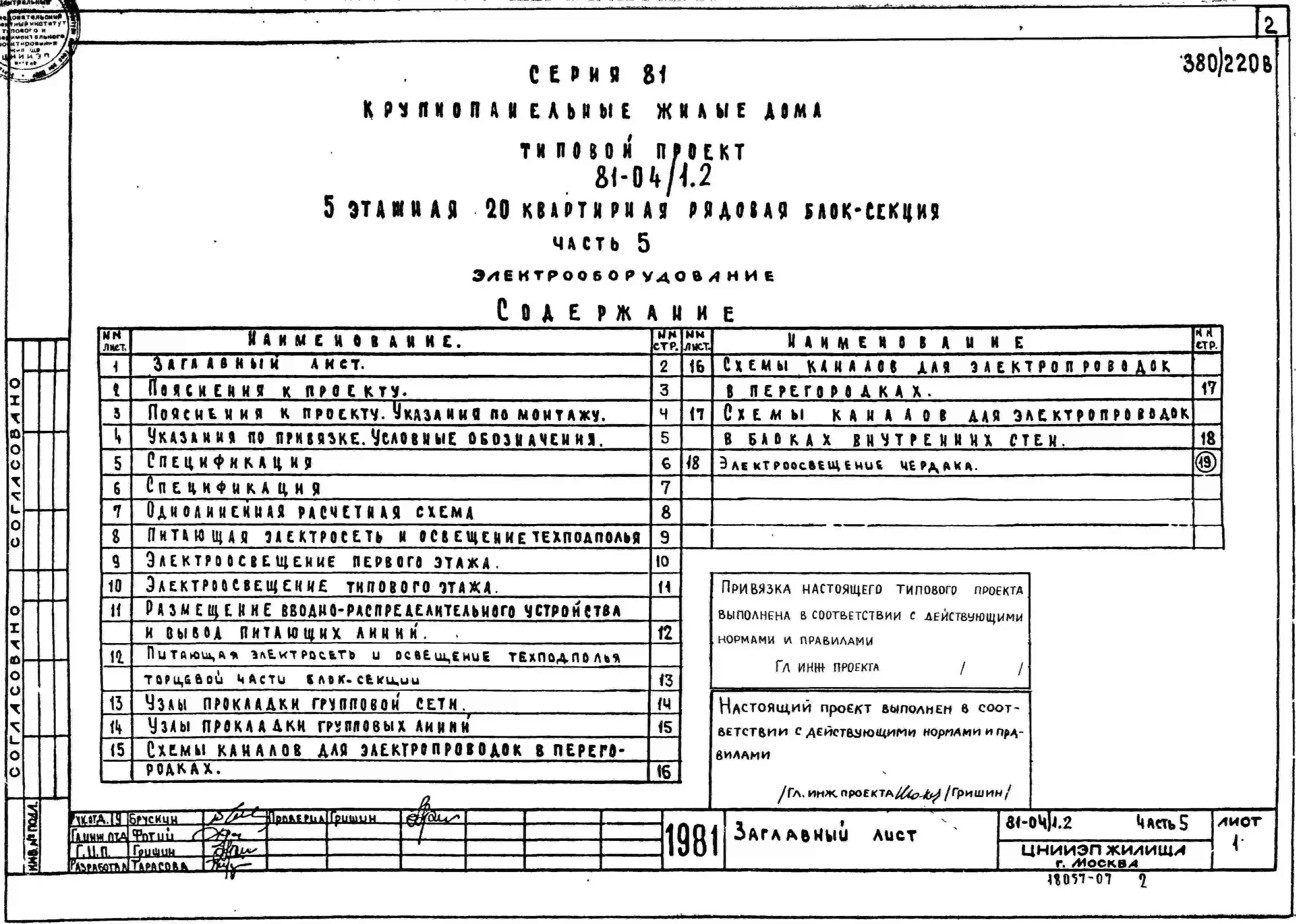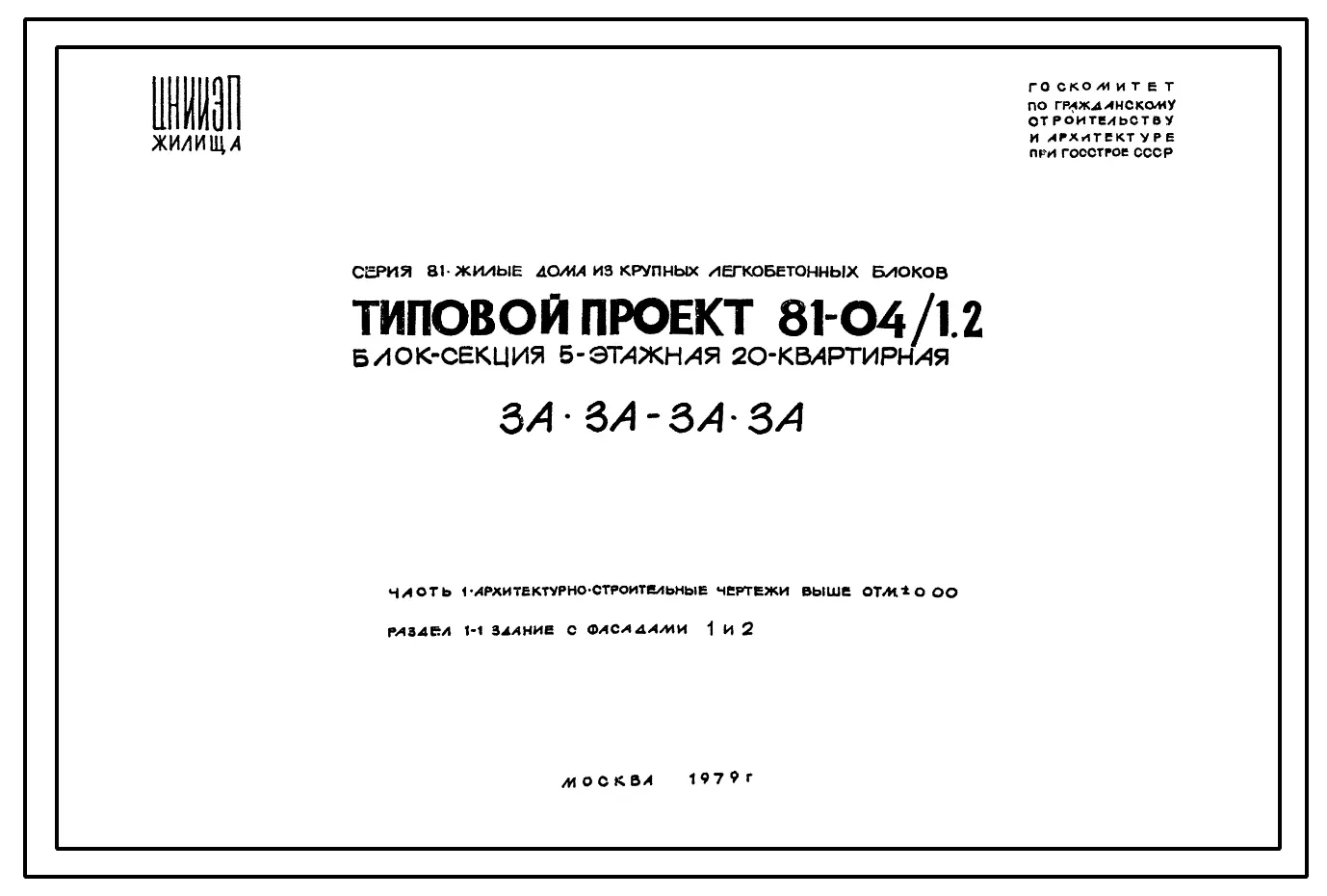 Типовой проект 81-04/1.2 Блок-секция 5-этажная 20-квартирная 3А.3А-3А.3А. Чертежи (формат TIF)