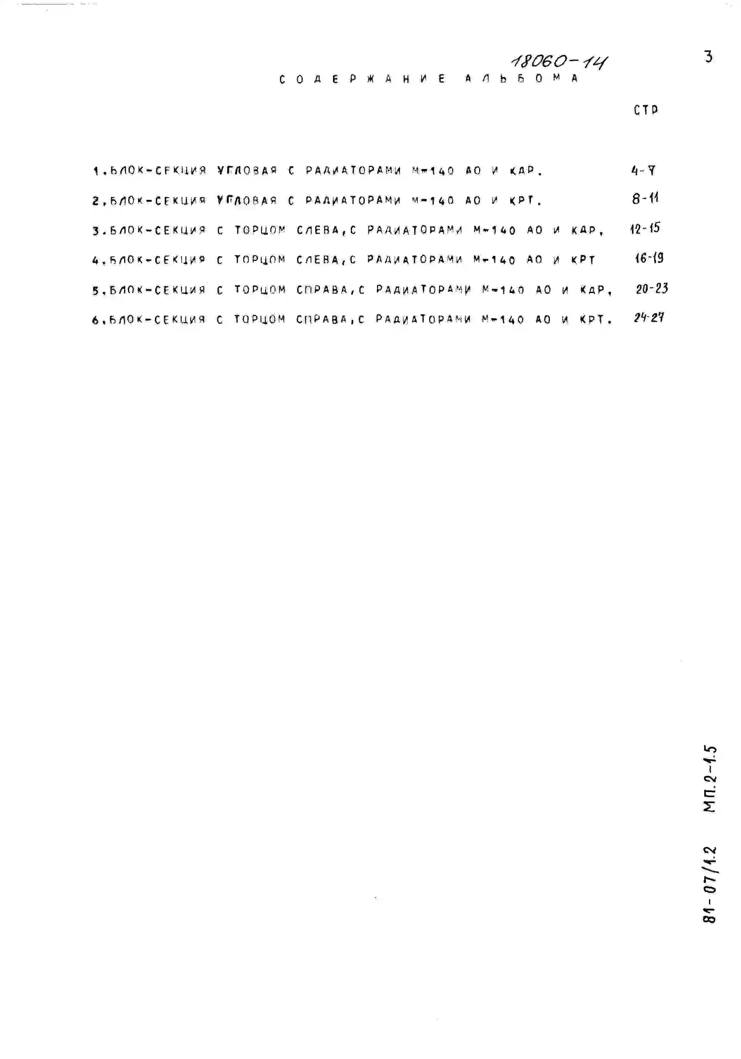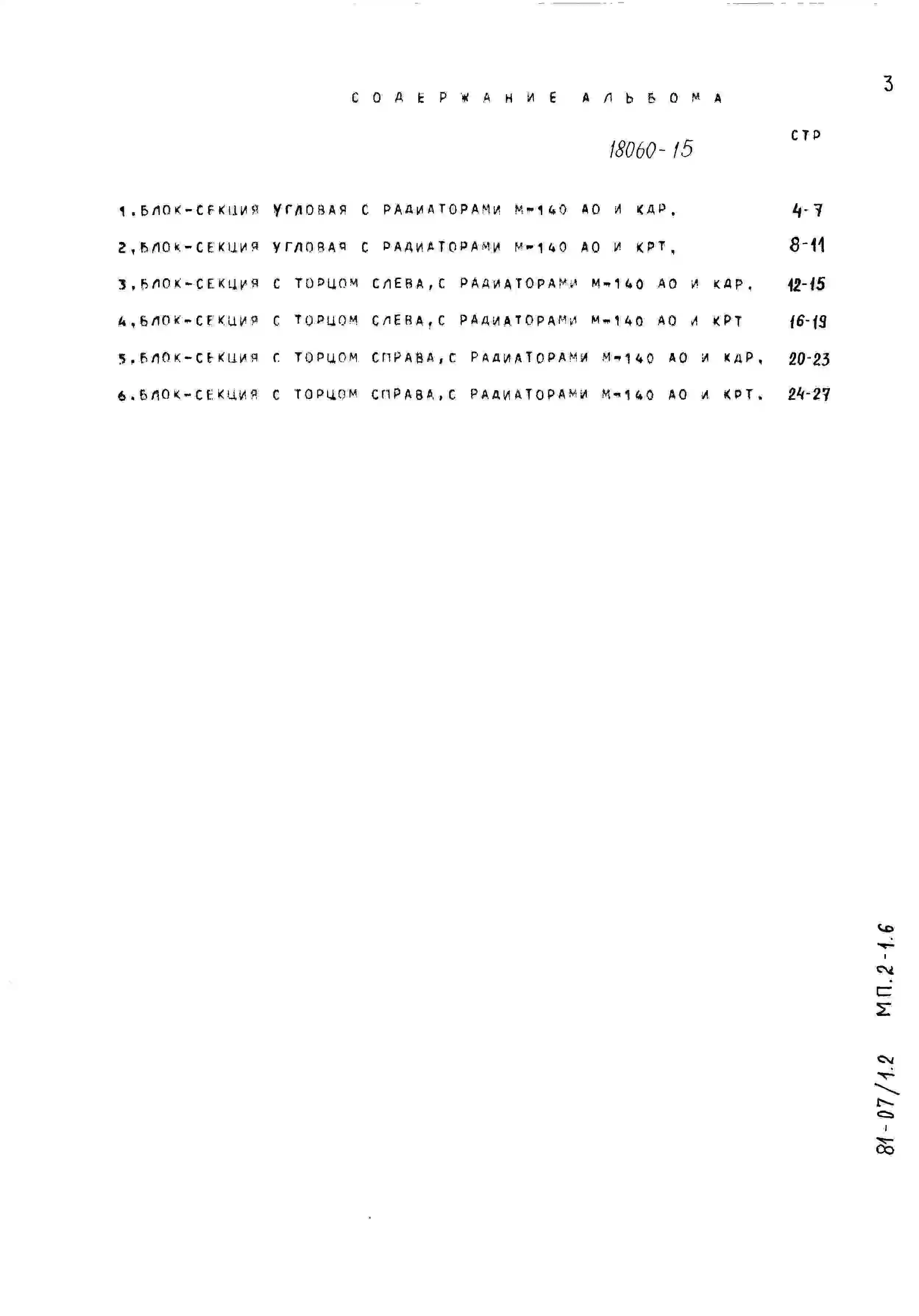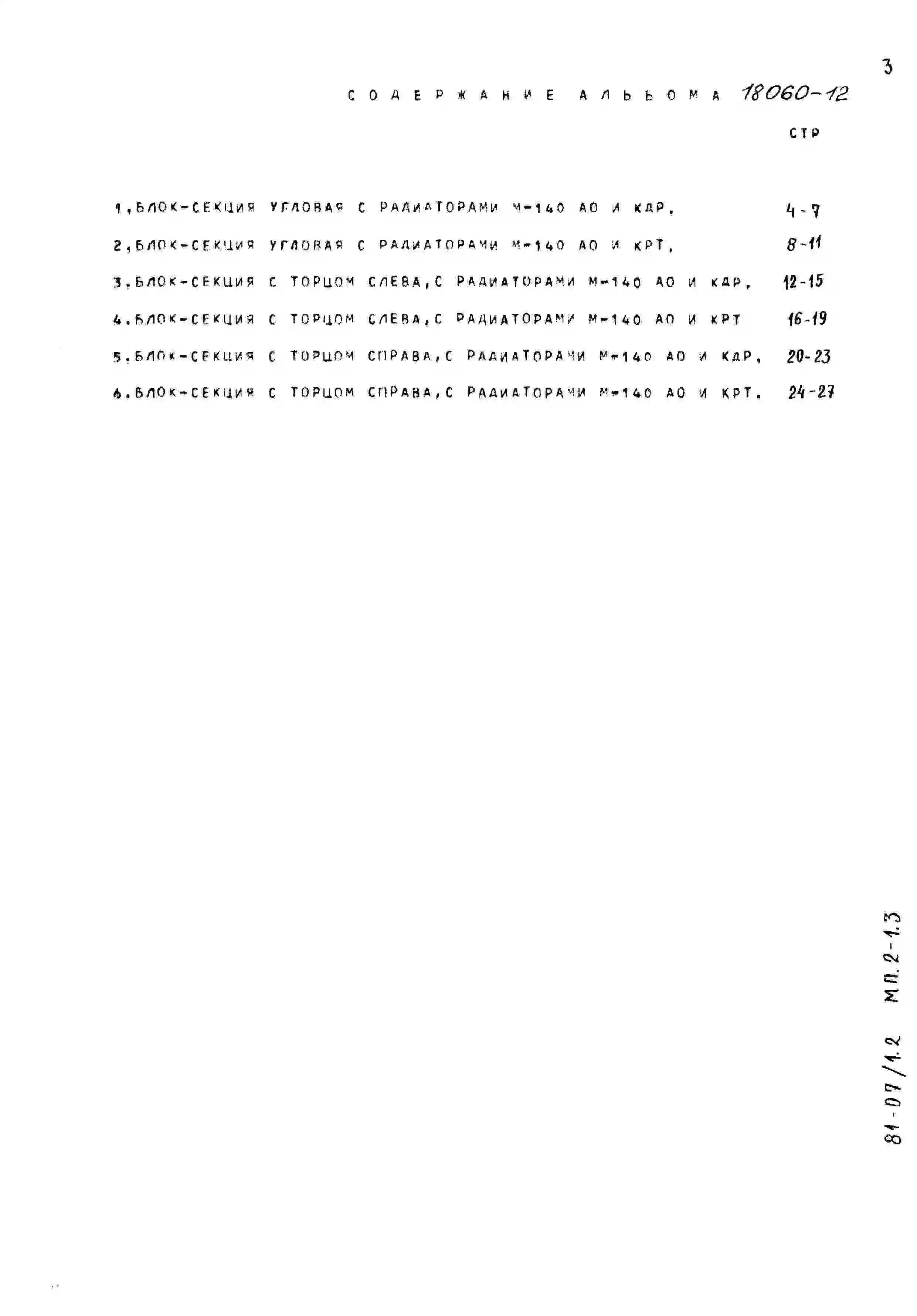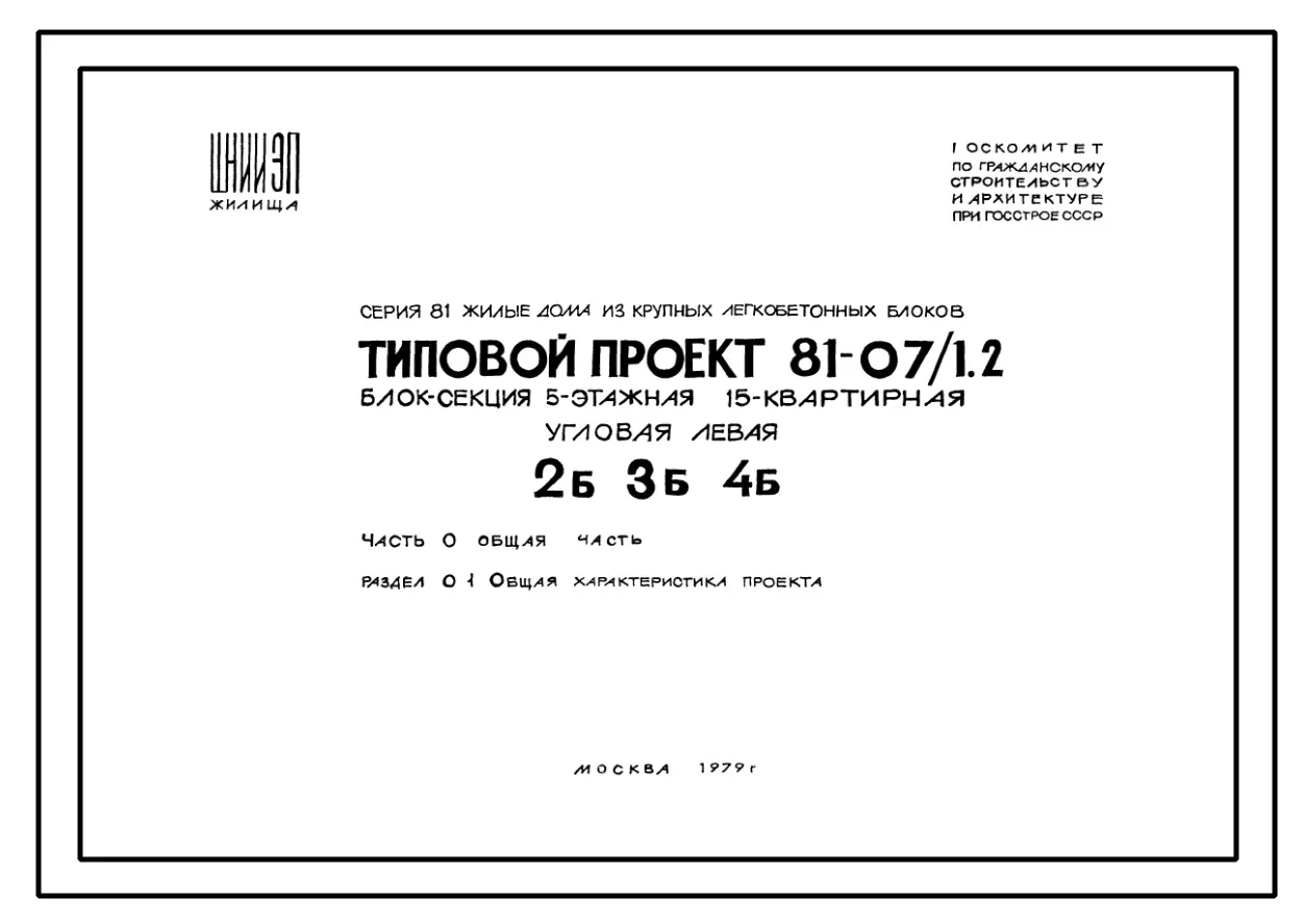 Типовой проект 81-07/1.2 Блок-секция 5-этажная 15-квартирная угловая левая 2Б.3Б.4Б. Чертежи (формат TIF)