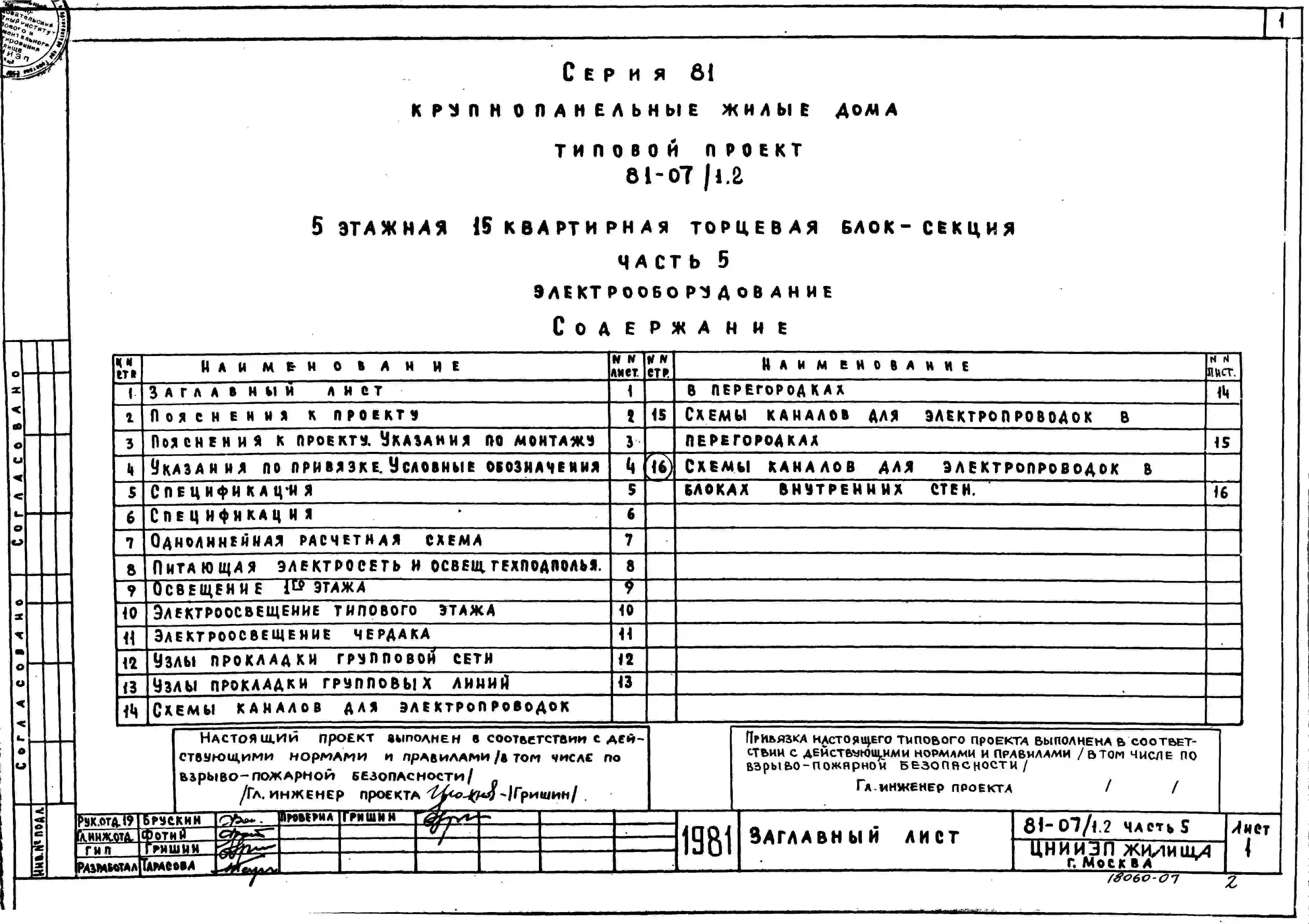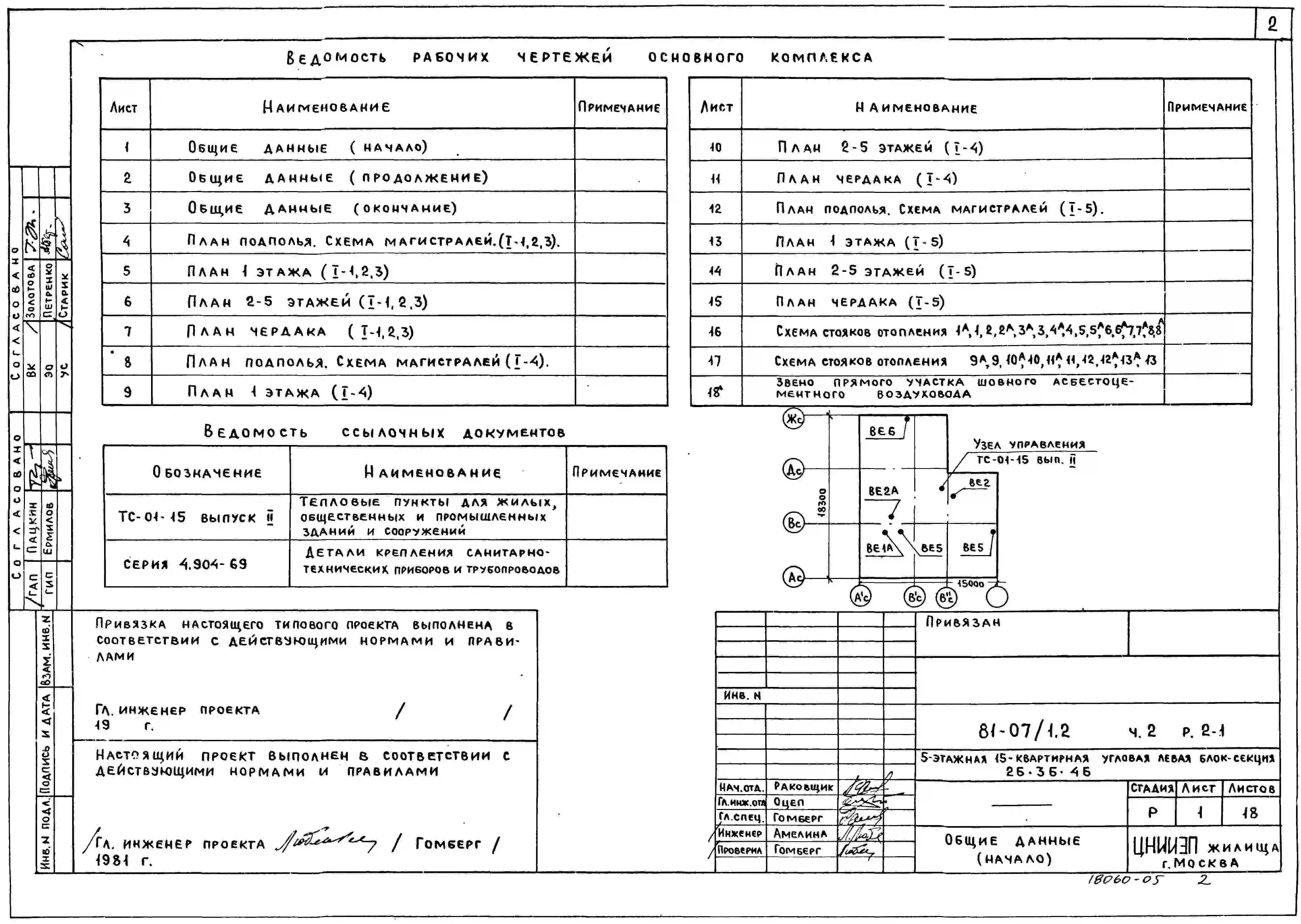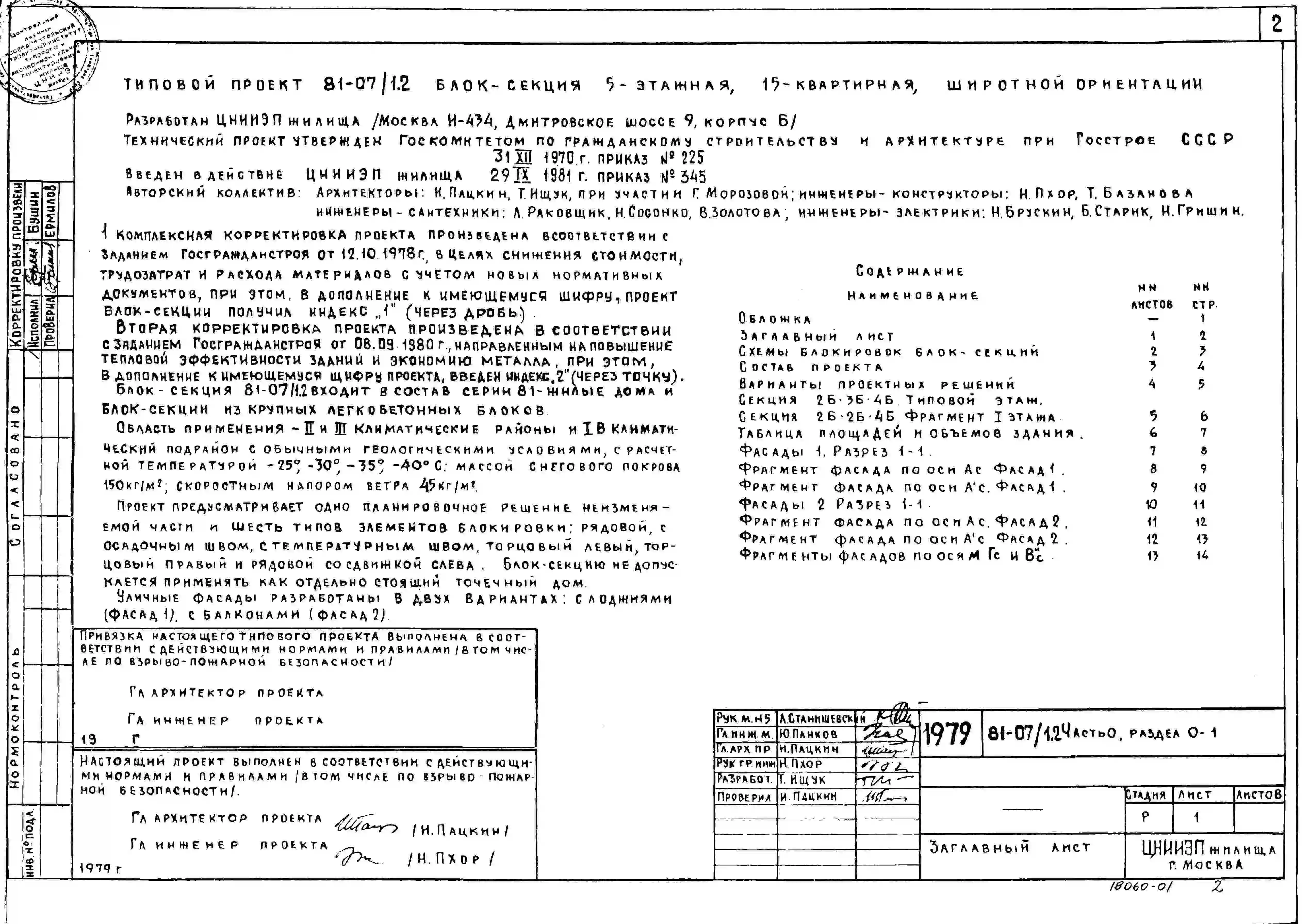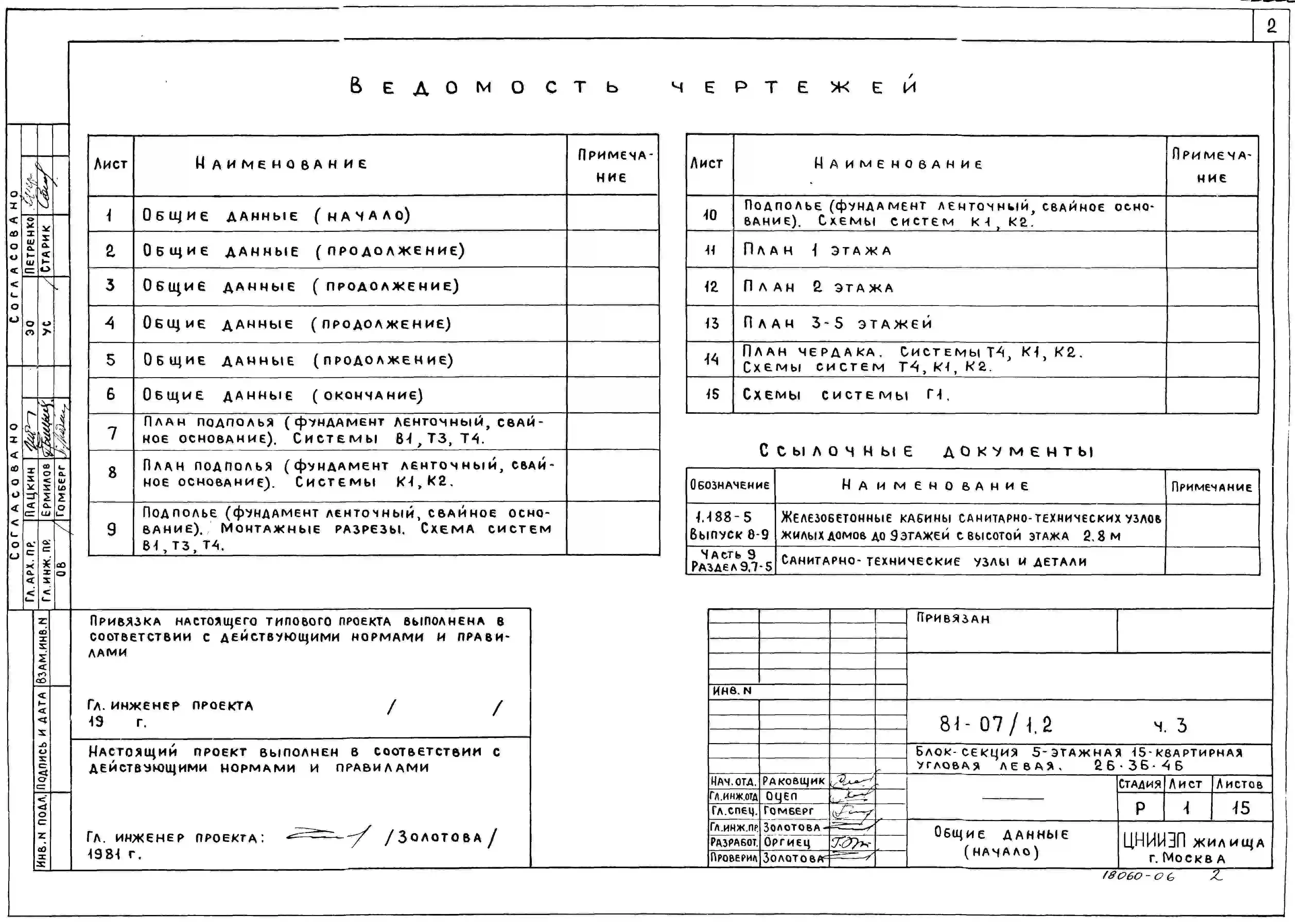 Типовой проект 81-07/1.2 Блок-секция 5-этажная 15-квартирная угловая левая 2Б.3Б.4Б. Чертежи (формат TIF)
