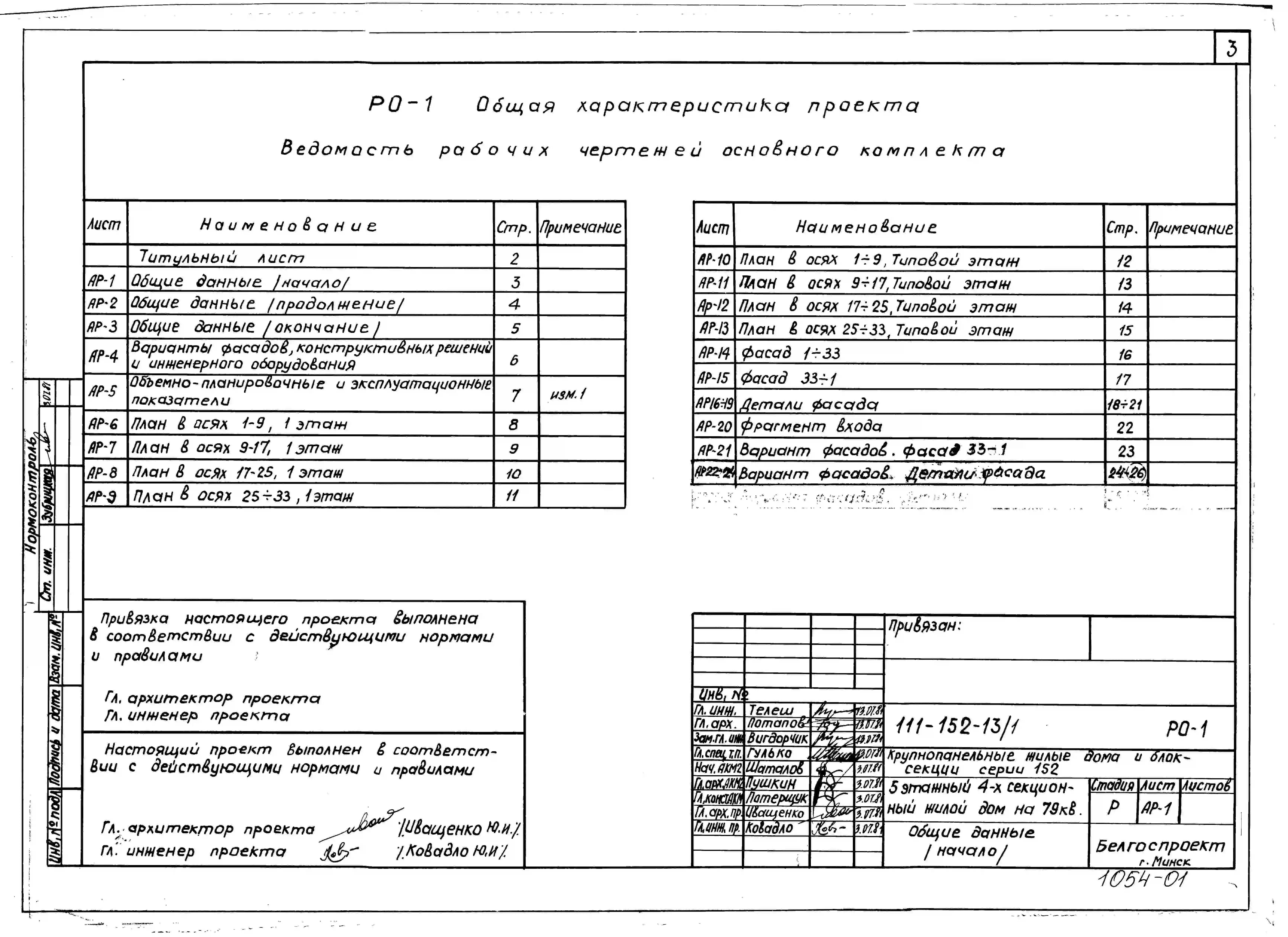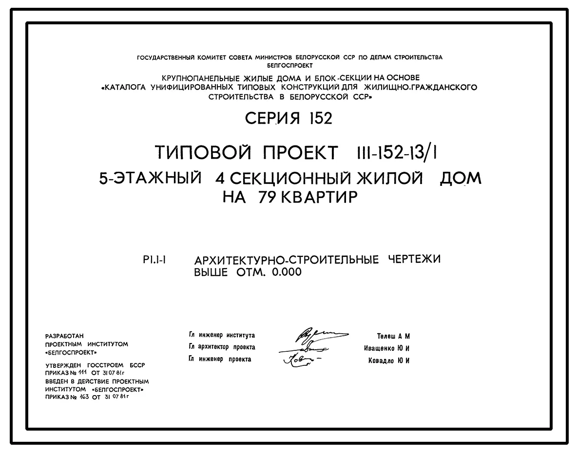 Типовой проект 111-152-13/1 5 этажный 4-х секционный жилой дом на 79 квартир