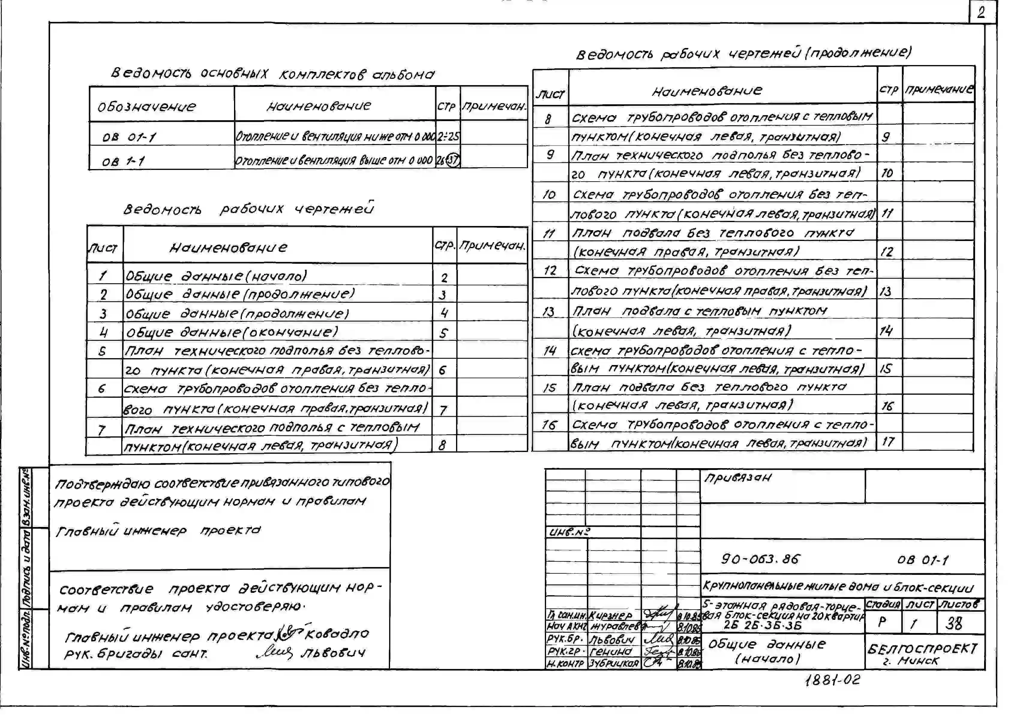 Типовой проект 90-063.86 Пятиэтажная блок-секция рядовая торцевая на 20 квартир