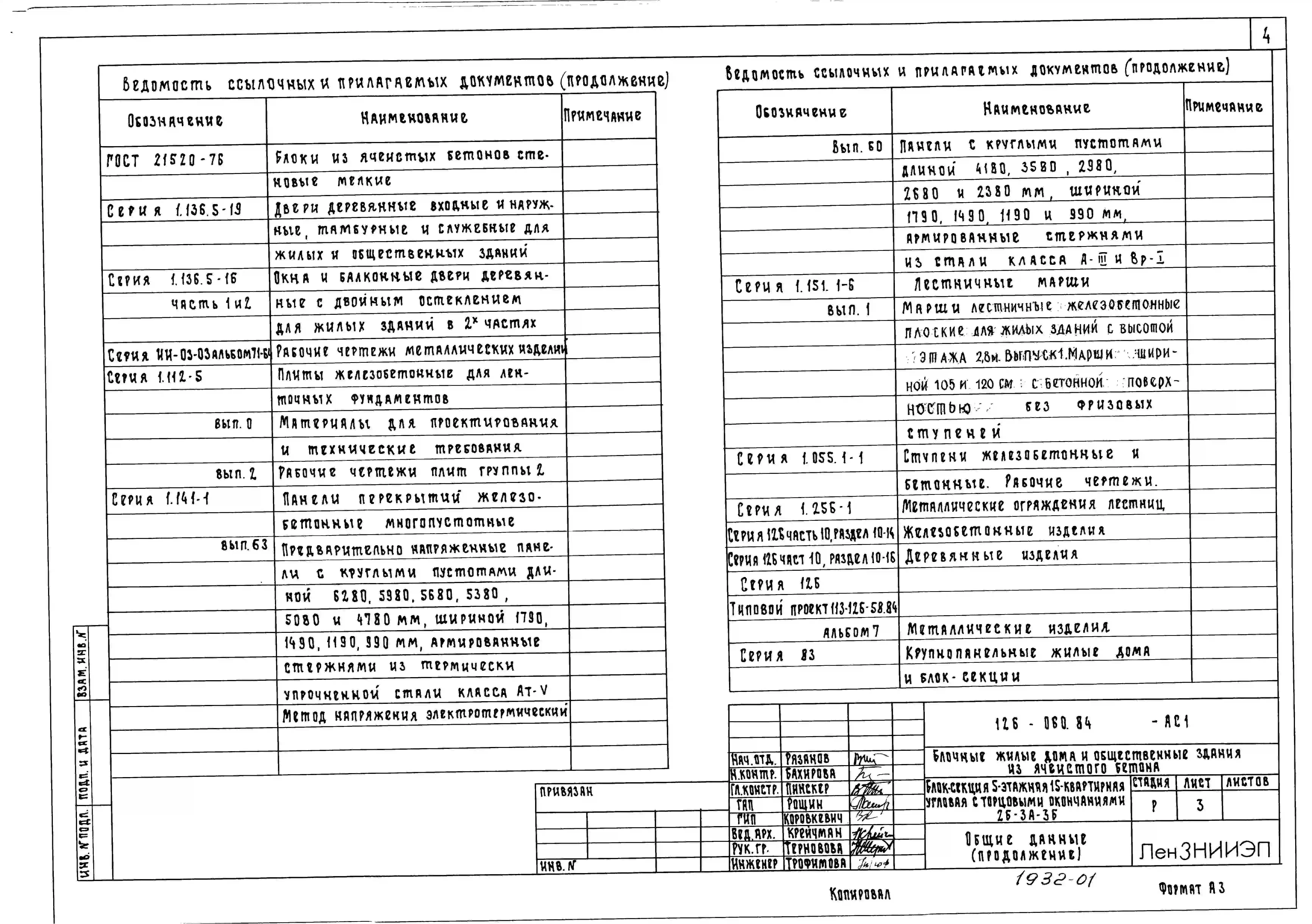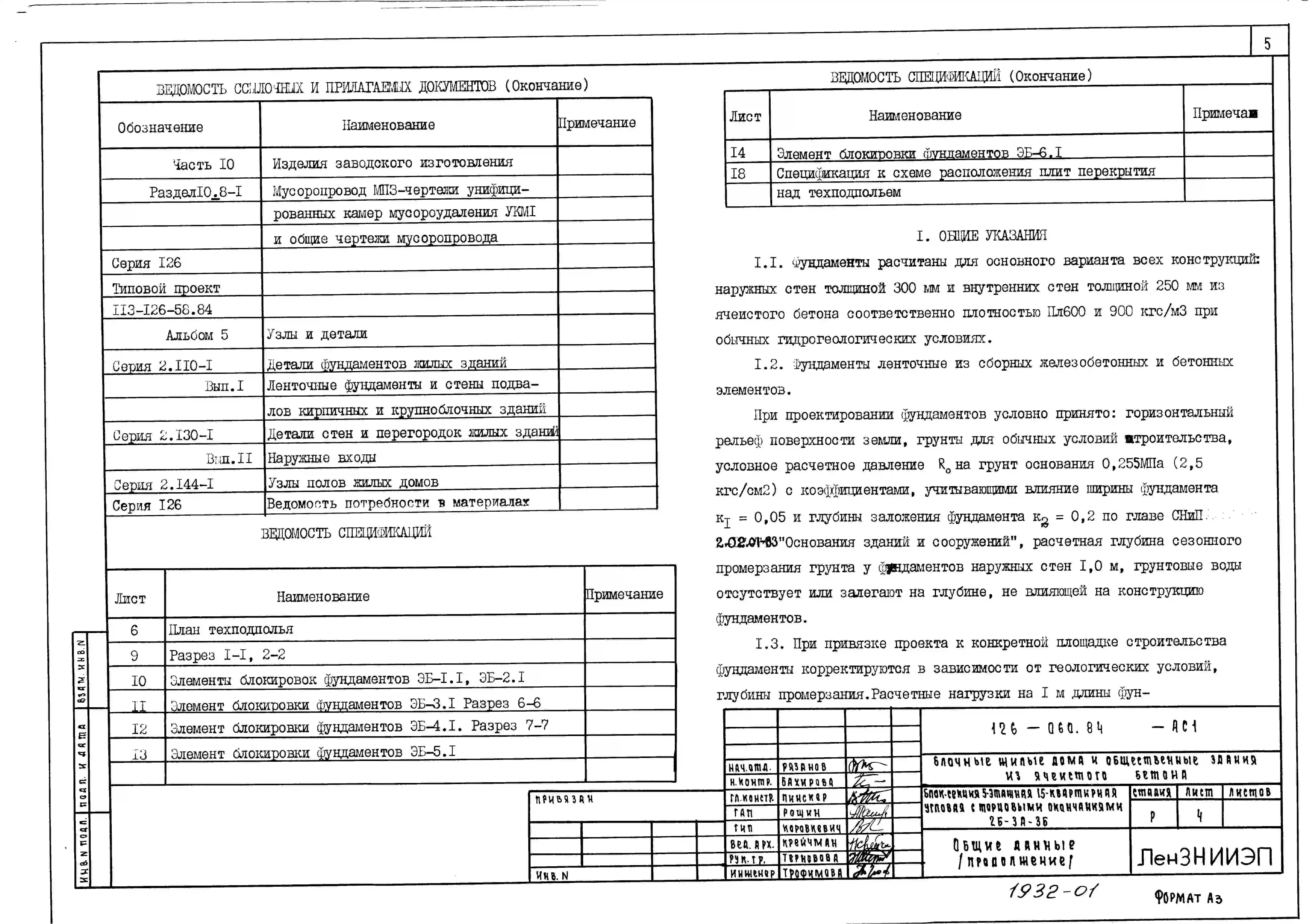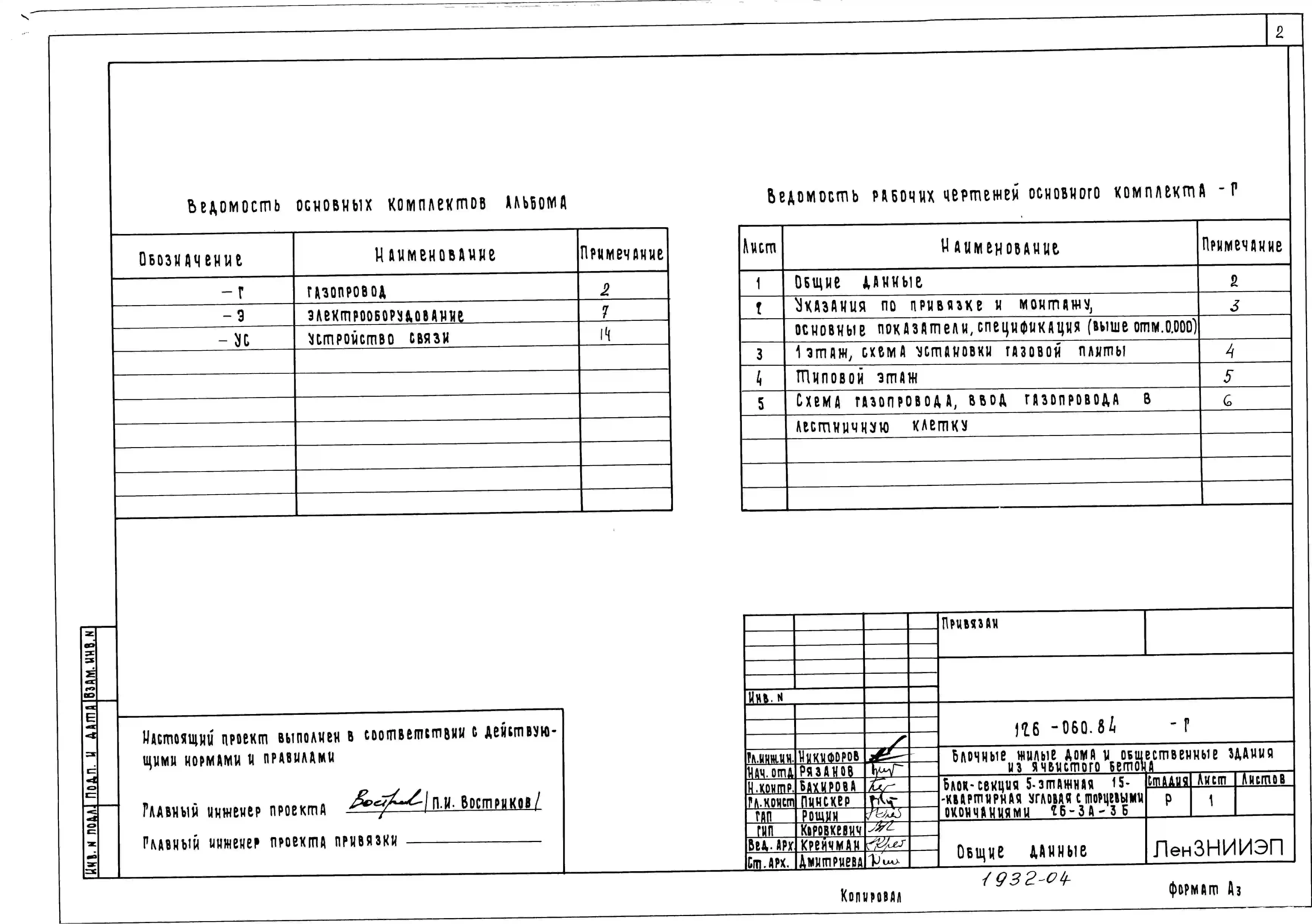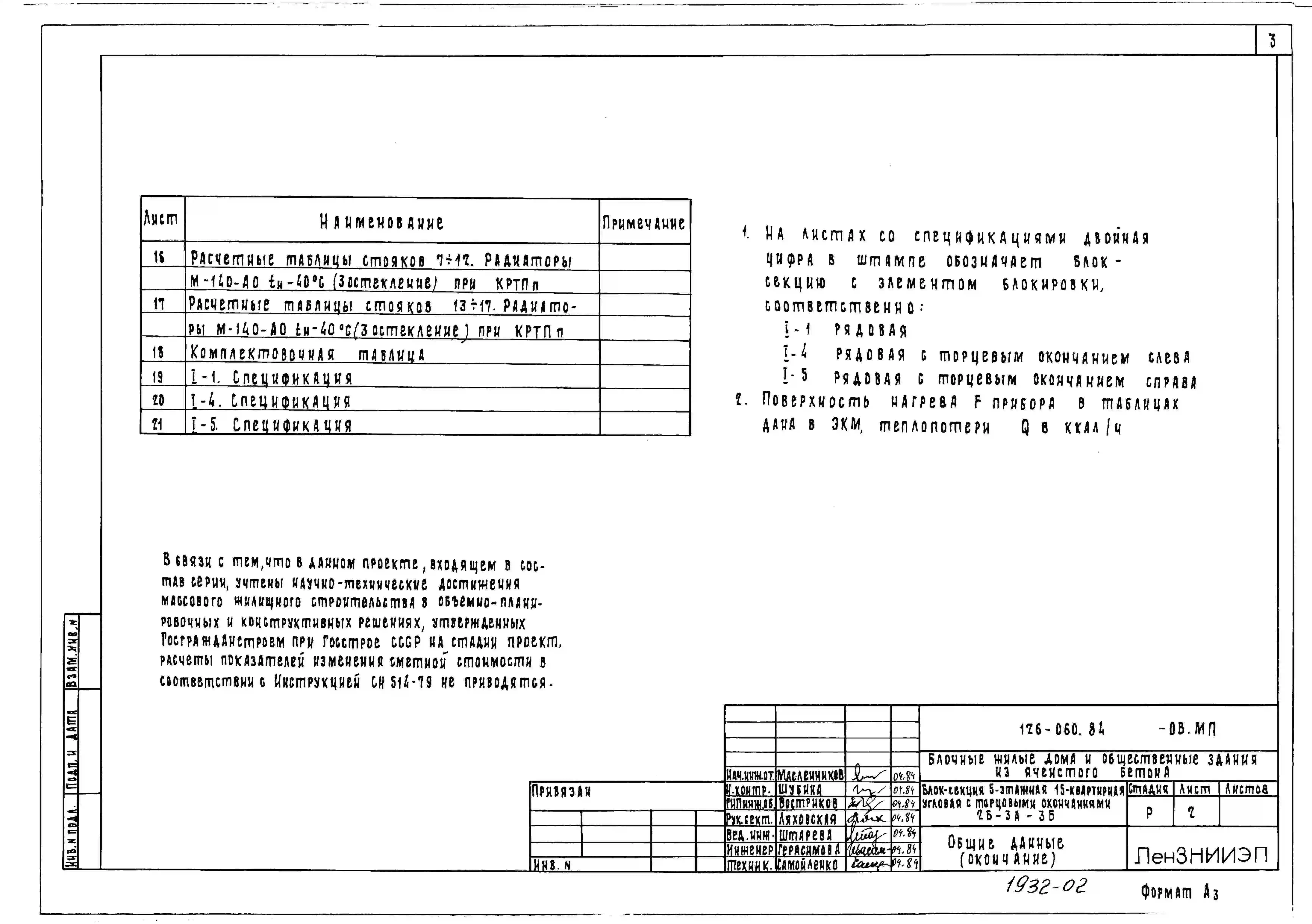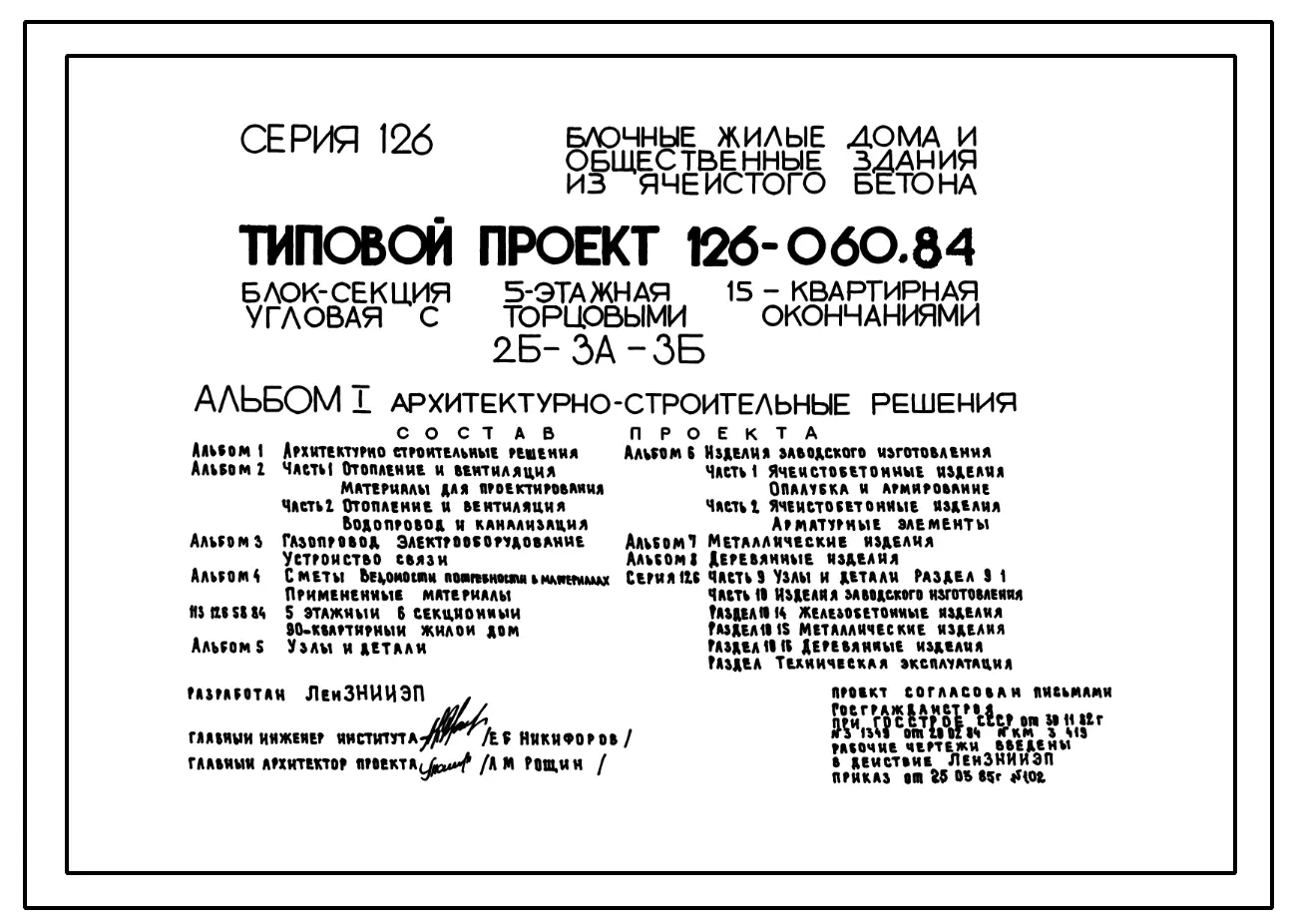 Типовой проект 126-060.84 Пятиэтажная блок-секция угловая с торцевыми окончаниями на 15 квартир. Для строительства в городах и поселках городского типа